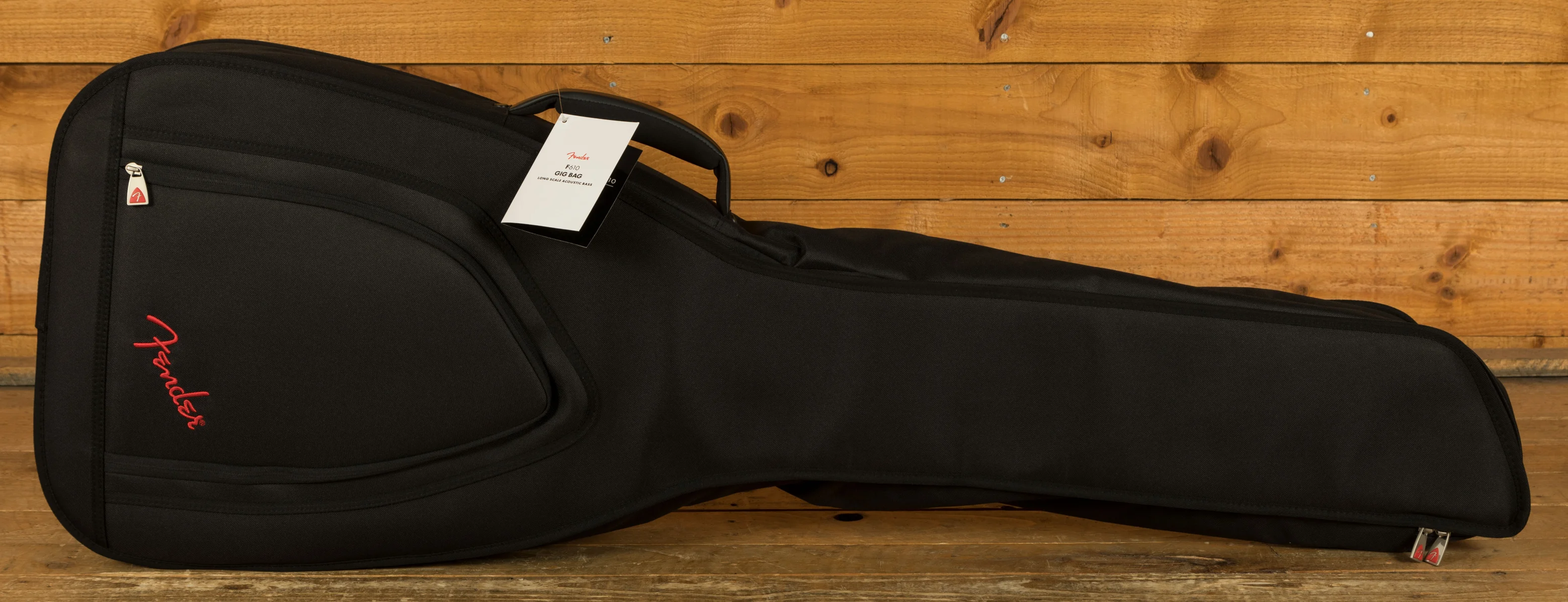 The Kingman Acoustic Bass also comes with a deluxe gig bag for convenient transport and protection. The bag includes padded backpack straps, tough exterior fabric, and multiple storage compartments, making it ideal for gigging musicians or anyone on the move. This instrument is part of Fender's California Series, which emphasises playability, sound quality, and distinctive design.