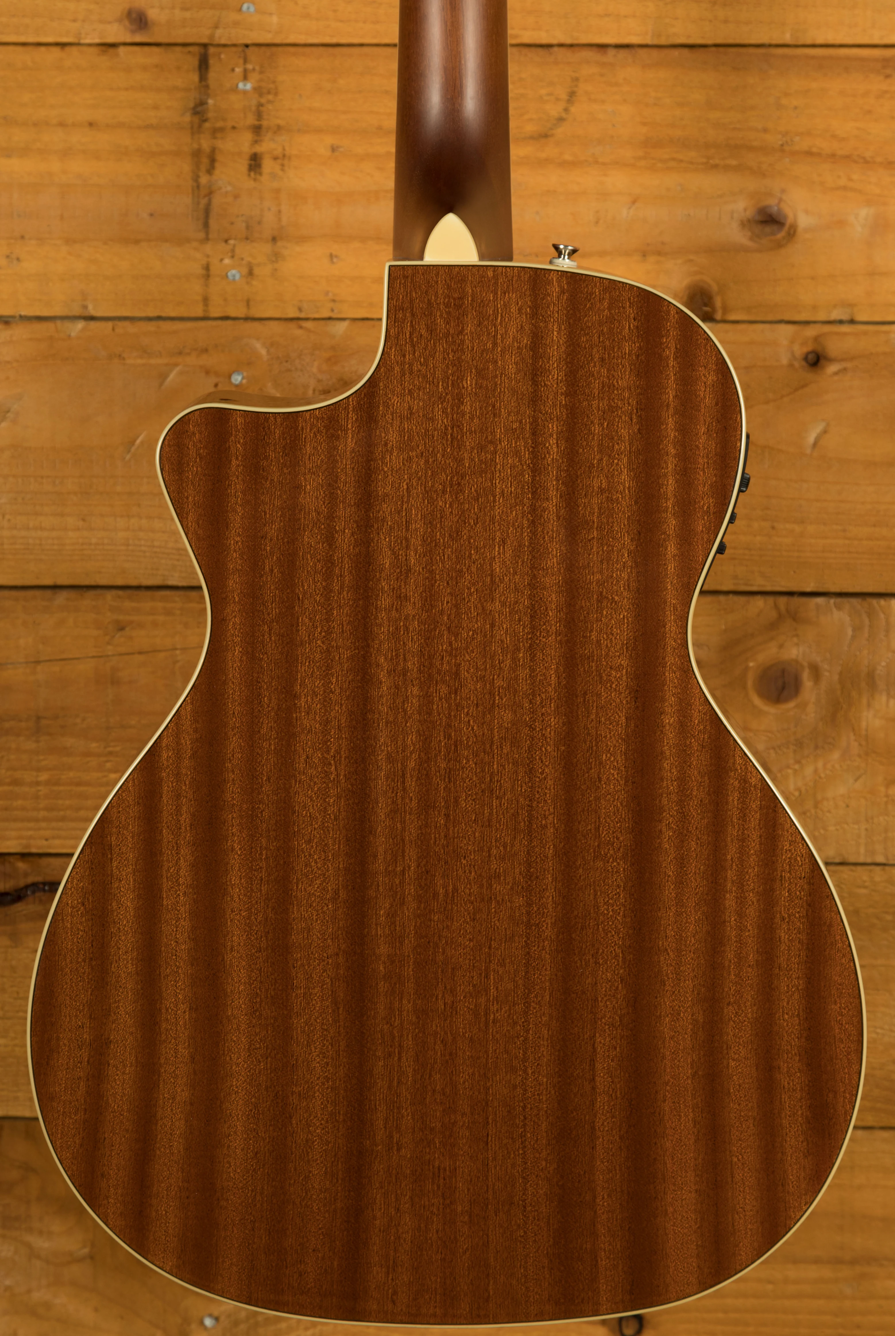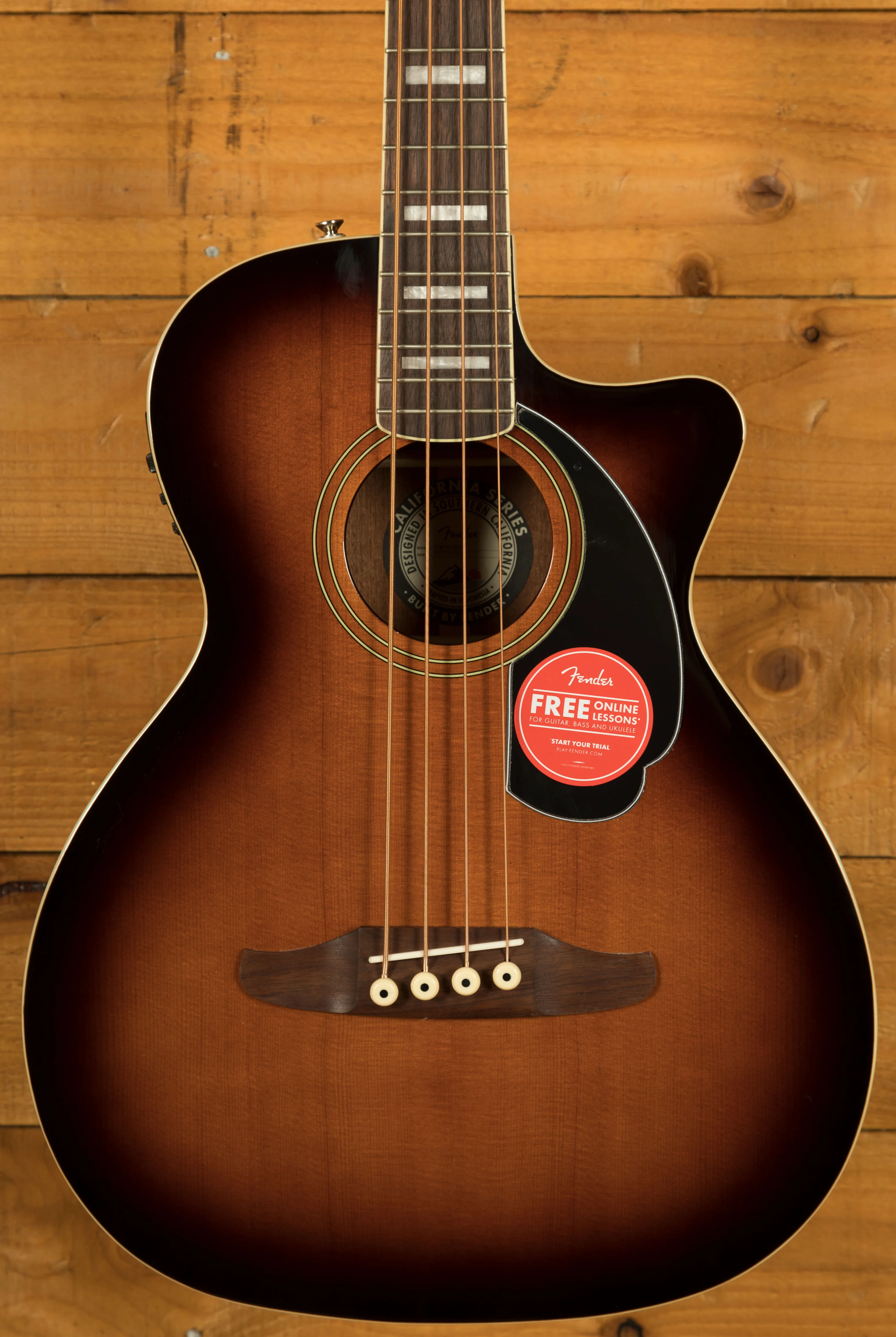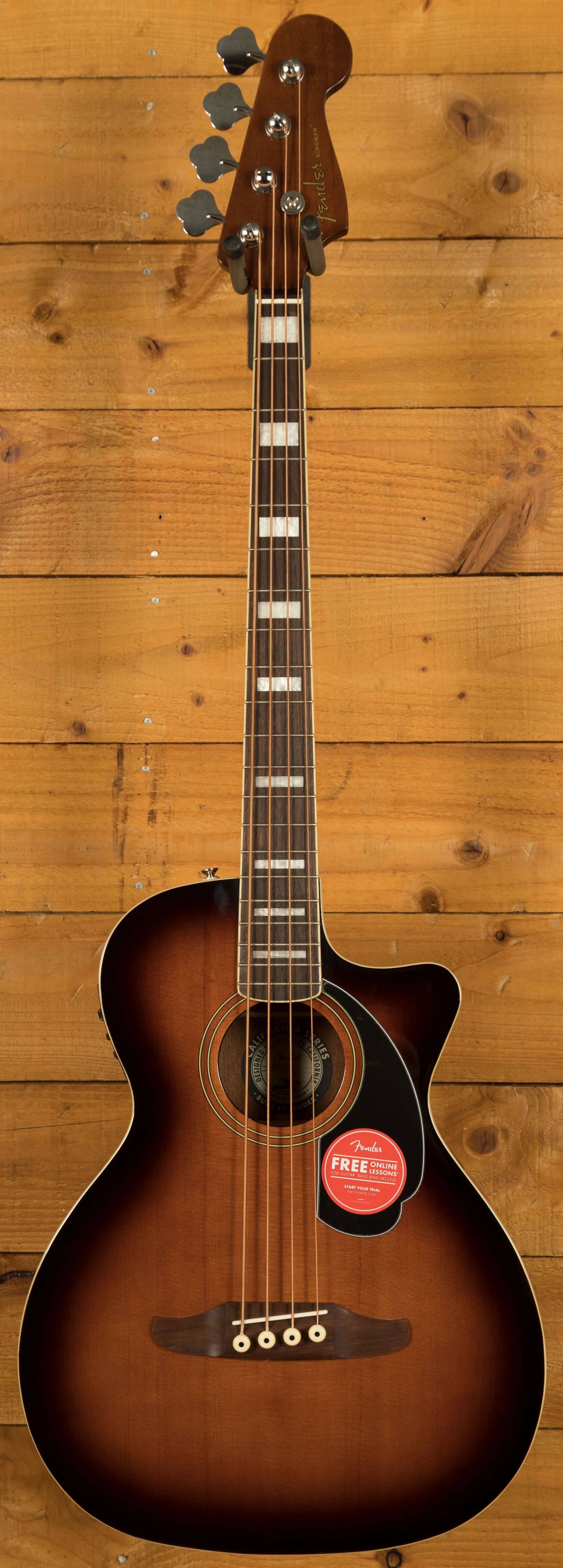 The short 30" scale length and slim "C"-shaped Jazz Bass-style neck offer a smooth, familiar playing experience, especially for electric bass players transitioning to acoustic. The neck is made of durable nato and features a comfortable 1.5" nut width, allowing for fast and precise fretting. Block inlays provide a stylish visual touch, while the classic 4-in-line headstock reinforces the connection to Fender's iconic electric bass design.