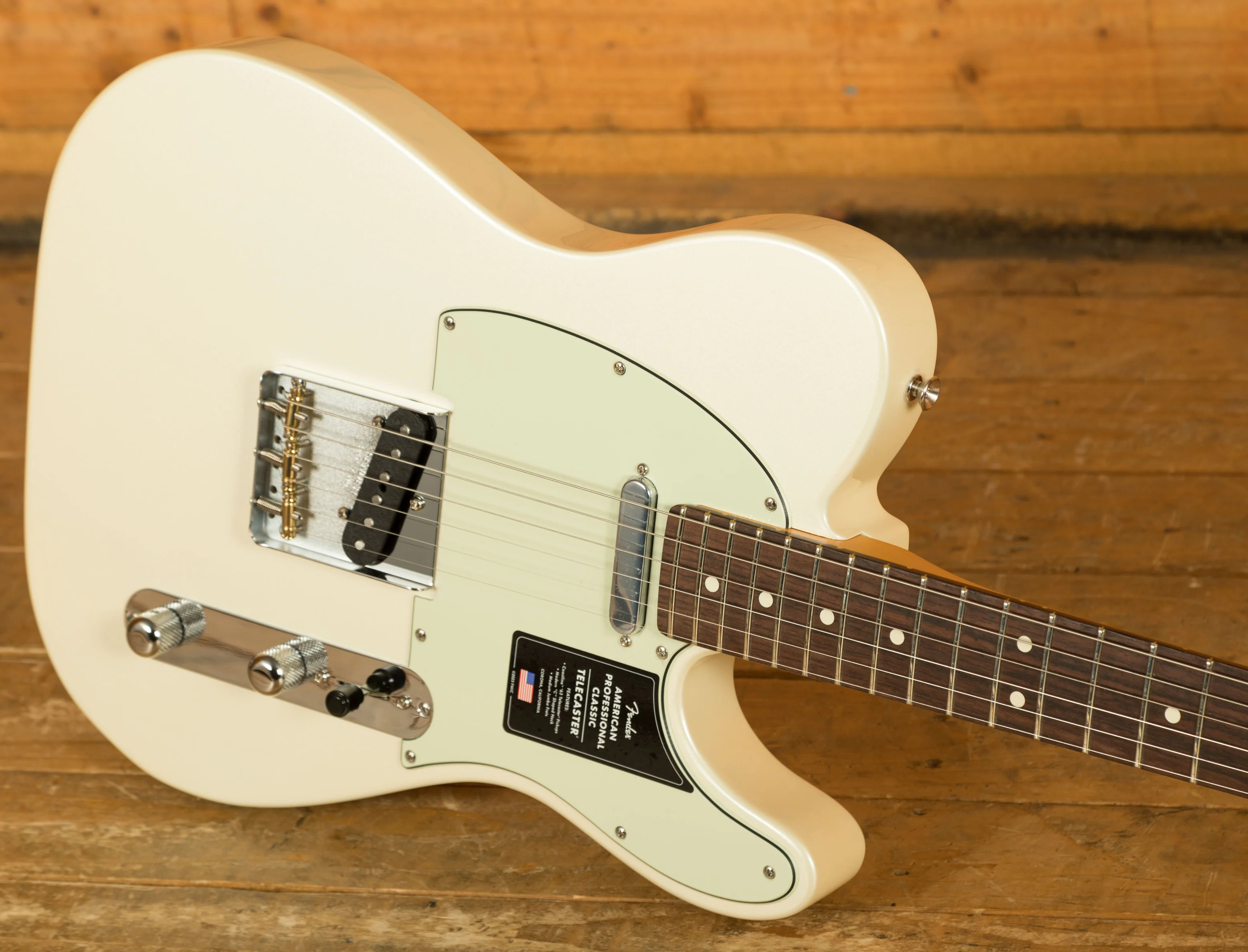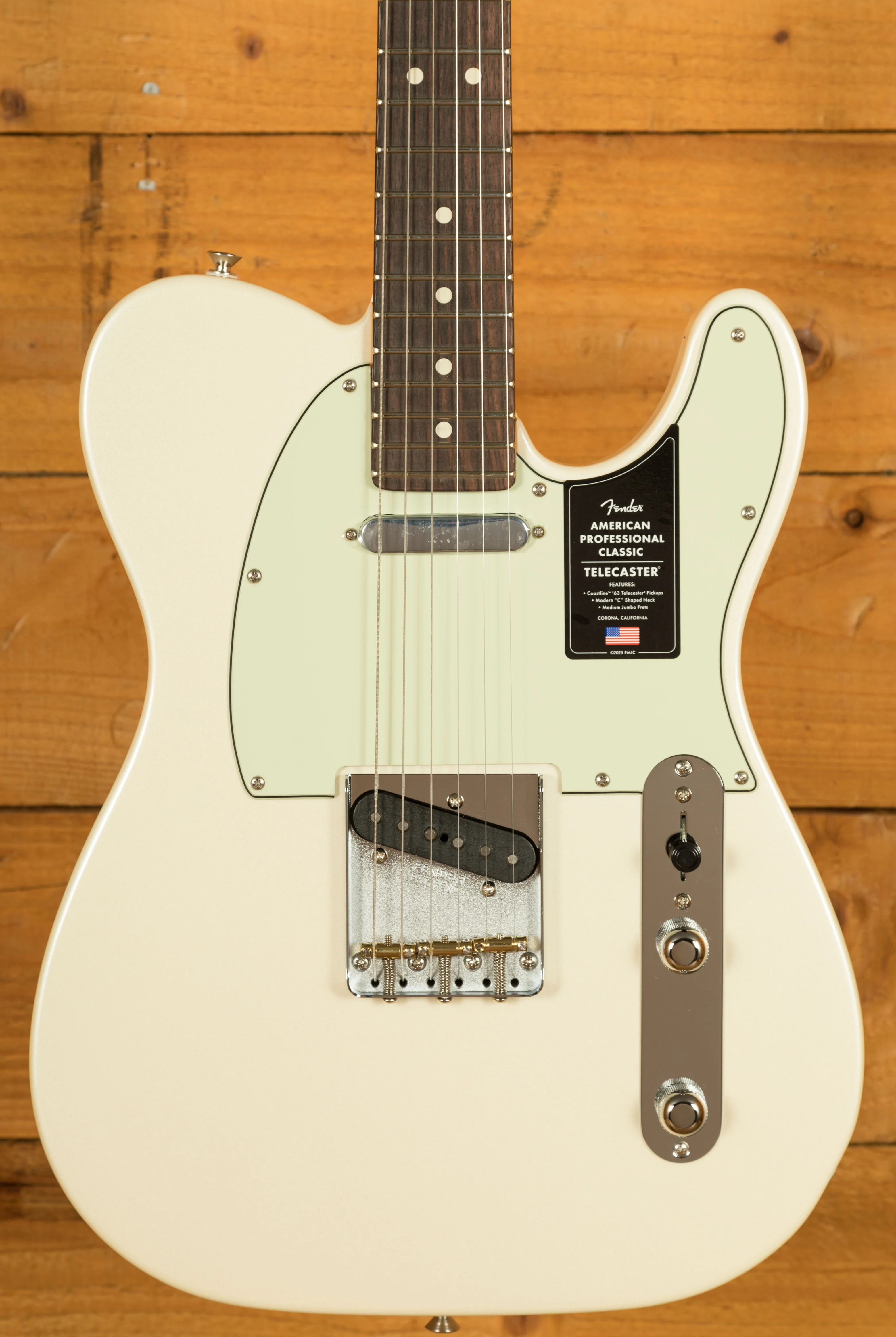 The Fender Limited Edition American Professional Classic Telecaster delivers the feel and tone of a traditional Tele with the precision and reliability expected by modern players. Its alder body provides a balanced tonal foundation, known for its clear highs, strong mids, and full low-end response. The maple neck with a modern "C" shape offers a comfortable, familiar grip suited to a wide range of playing styles, while the satin urethane finish ensures a smooth and fast-playing surface. The rosewood fingerboard with a 9.5" radius and 22 medium jumbo frets allows for effortless bending and precise note articulation.