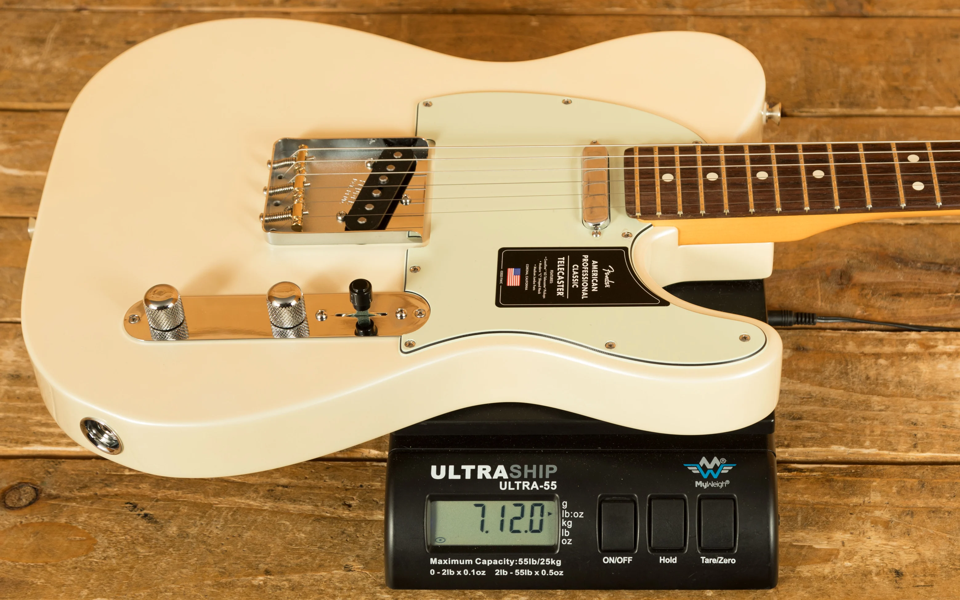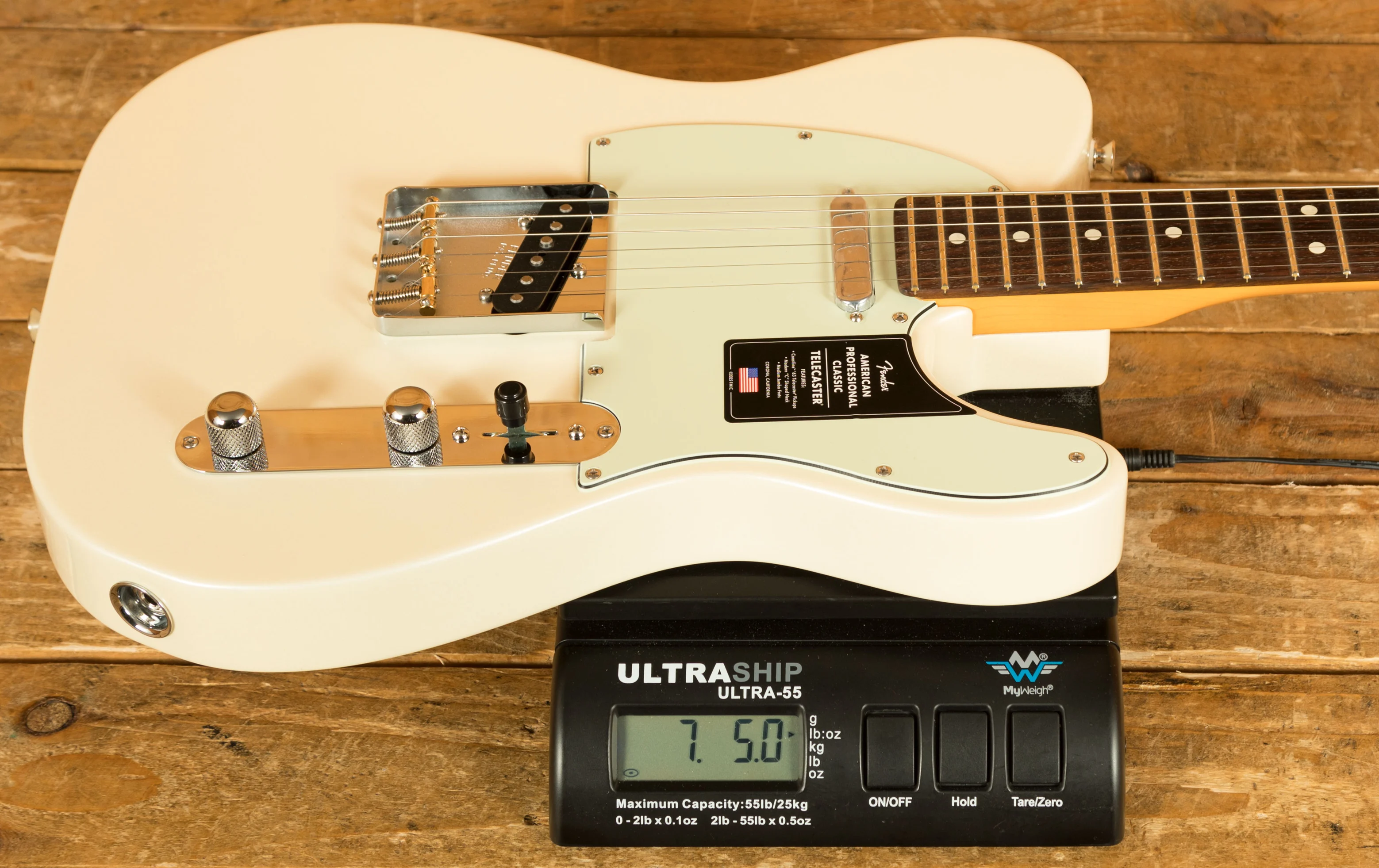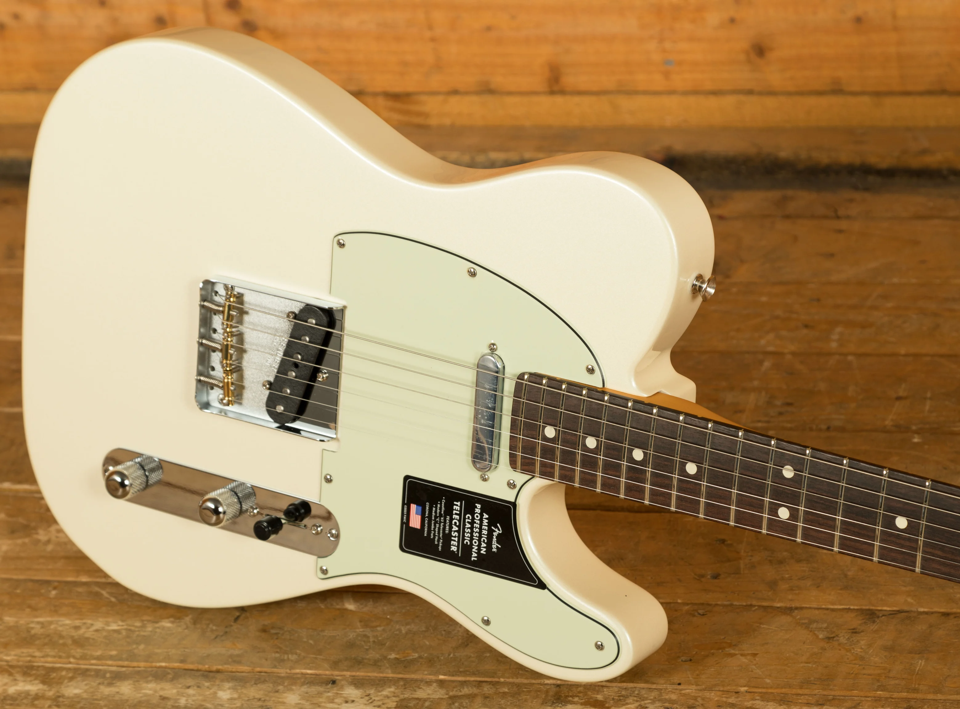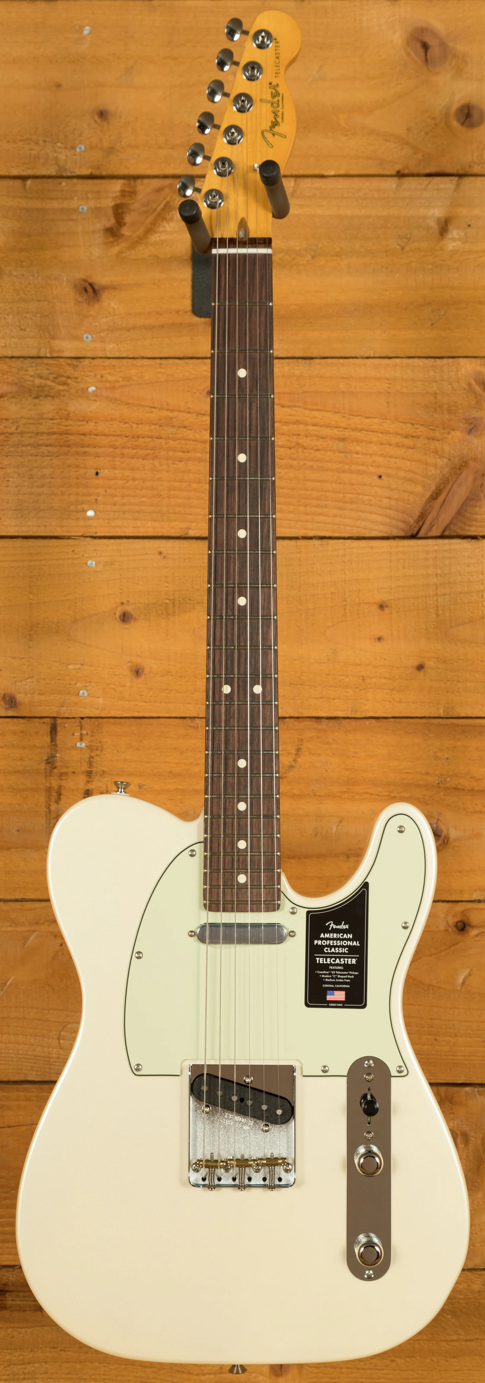 The 3-saddle vintage-style bridge with slotted brass barrel saddles contributes to the instrument's authentic Telecaster resonance and sustain. Combined with the strings-through-body design, it delivers strong note definition and consistent intonation. Whether used in the studio or on stage, the Fender American Professional Classic Telecaster offers a high level of playability, tonal versatility, and build quality, making it a dependable choice for players who want classic Fender character with modern refinements.