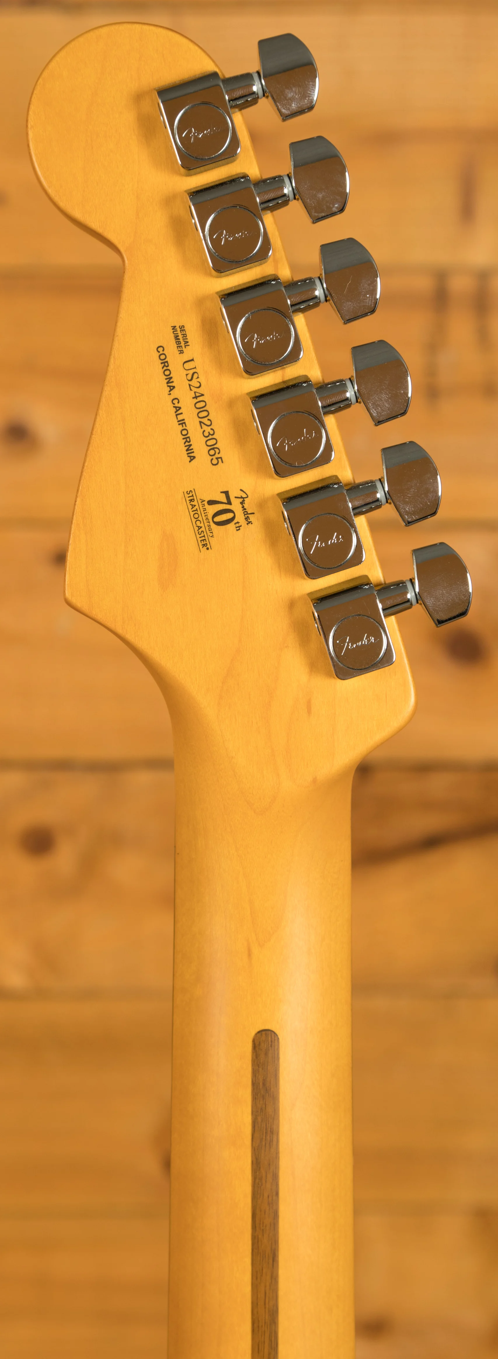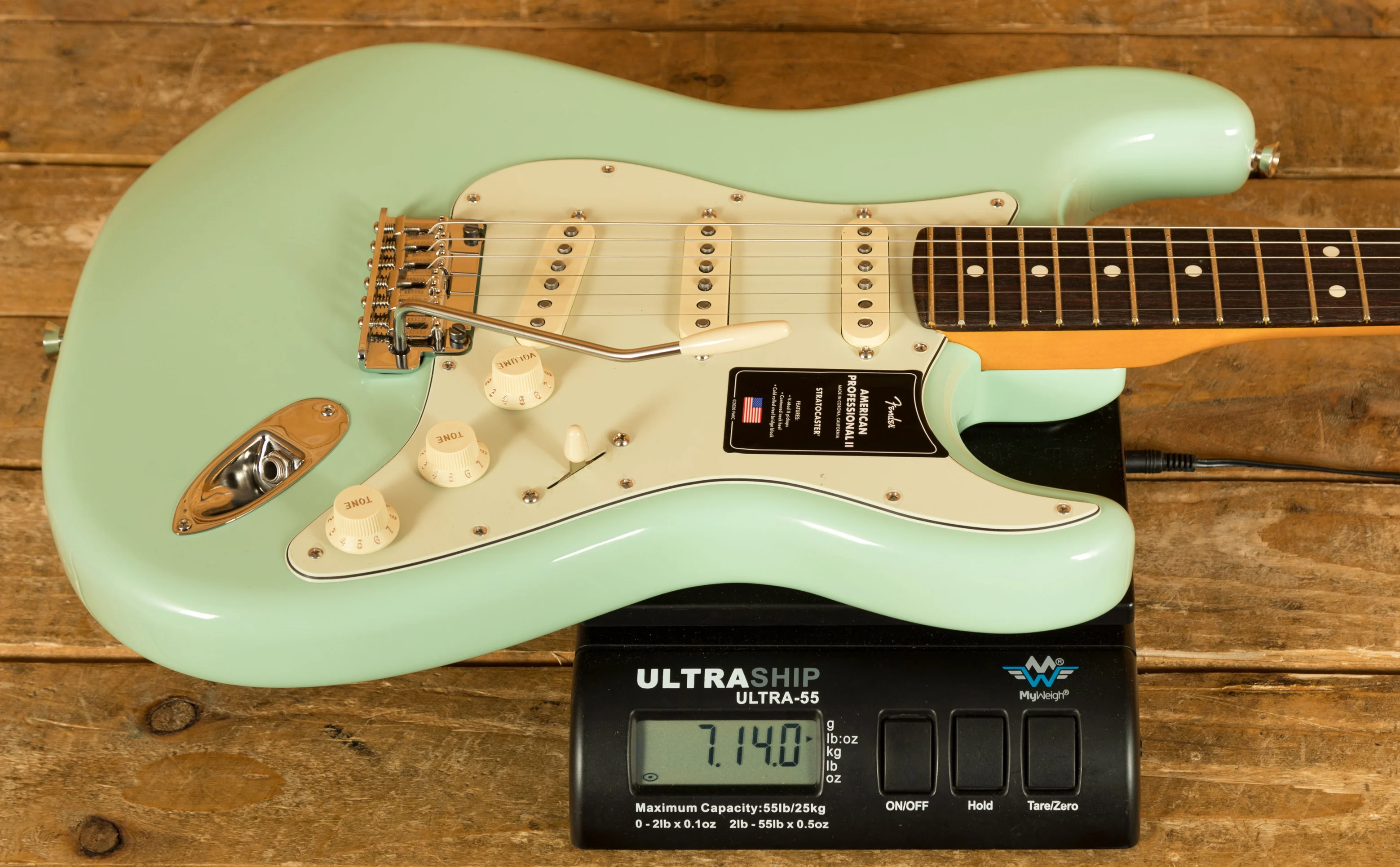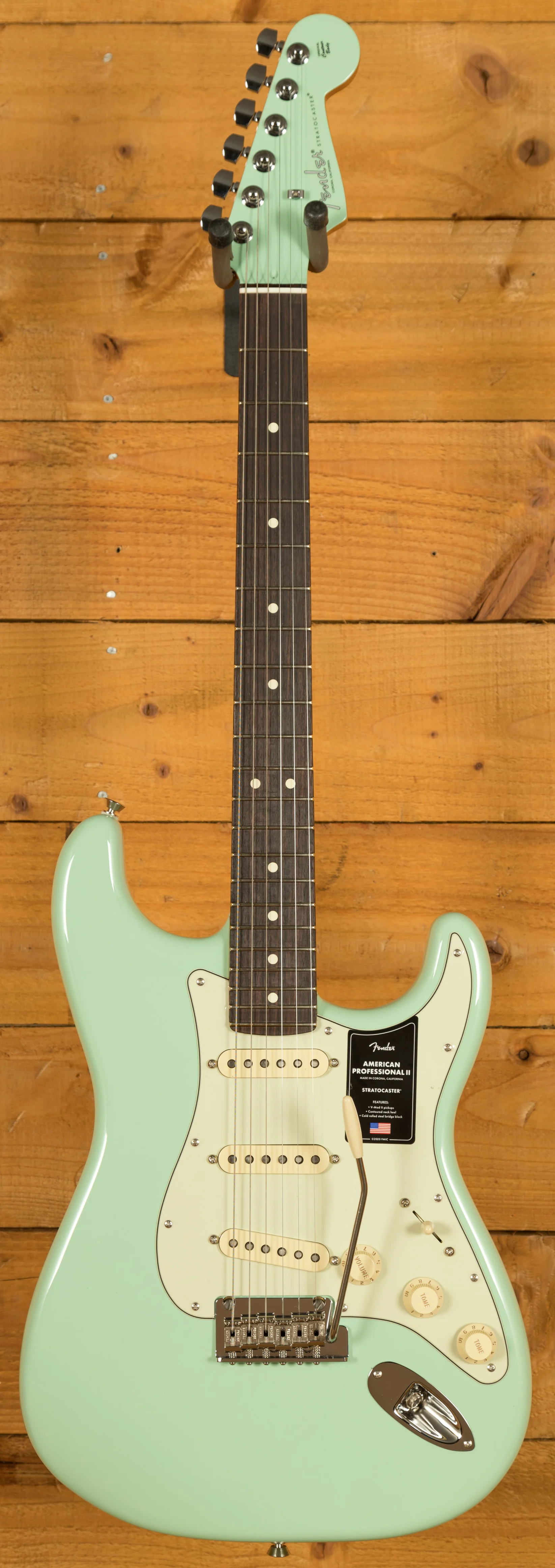 Additional features include a 1.685" bone nut for superior tuning stability and resonance. The guitar comes with a Deluxe Moulded hardshell case, offering excellent protection for transport and storage. The American Professional II Stratocaster is a top-tier instrument built for serious musicians who need reliability, playability, and world-class tone.