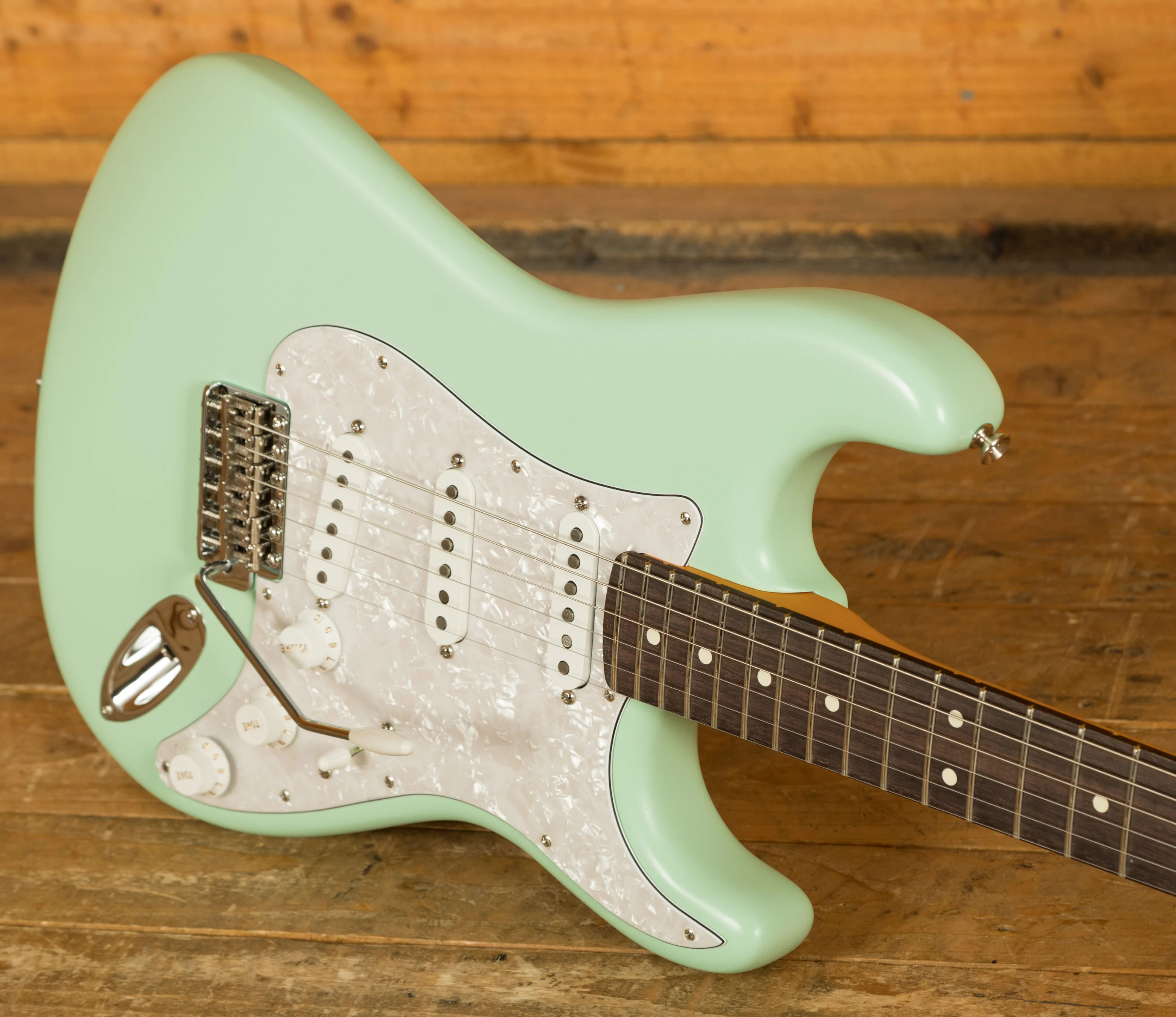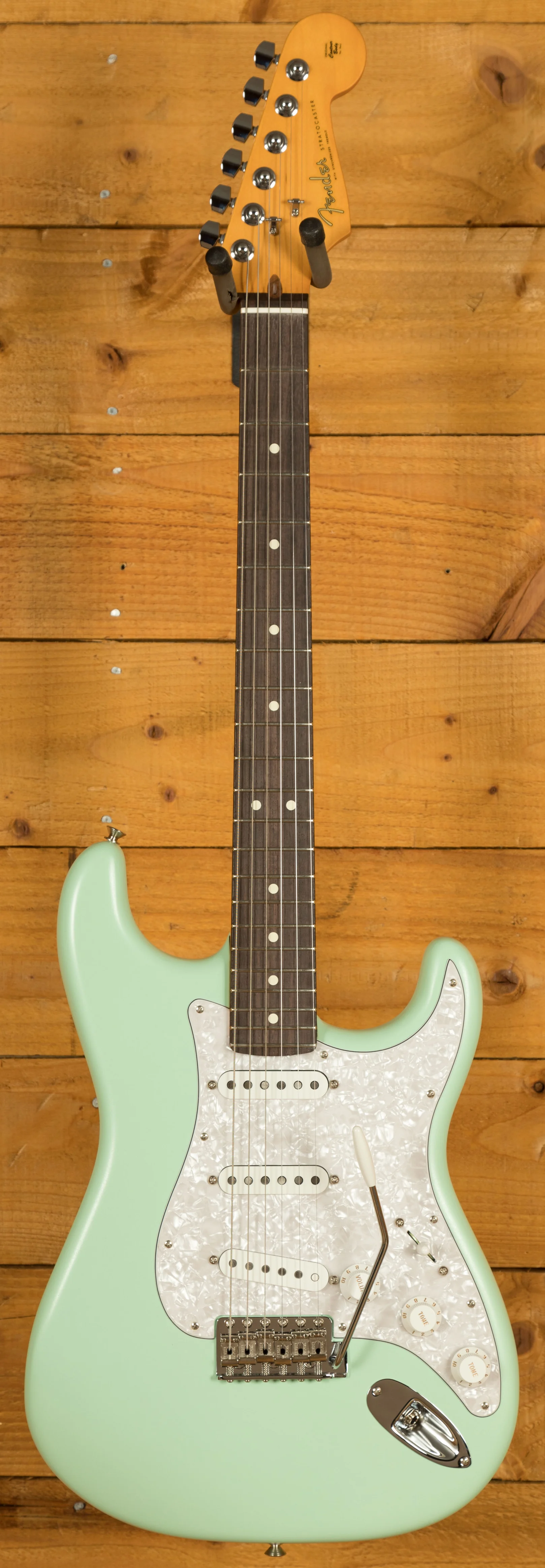 This Limited Edition Cory Wong Stratocaster features an Alder body finished in a super slick Surf Green. Inspired by custom colour ‘60’s Fender’s this guitar is full of vibe and vintage appeal. Paired up with a pearloid pickguard it’s a real looker!