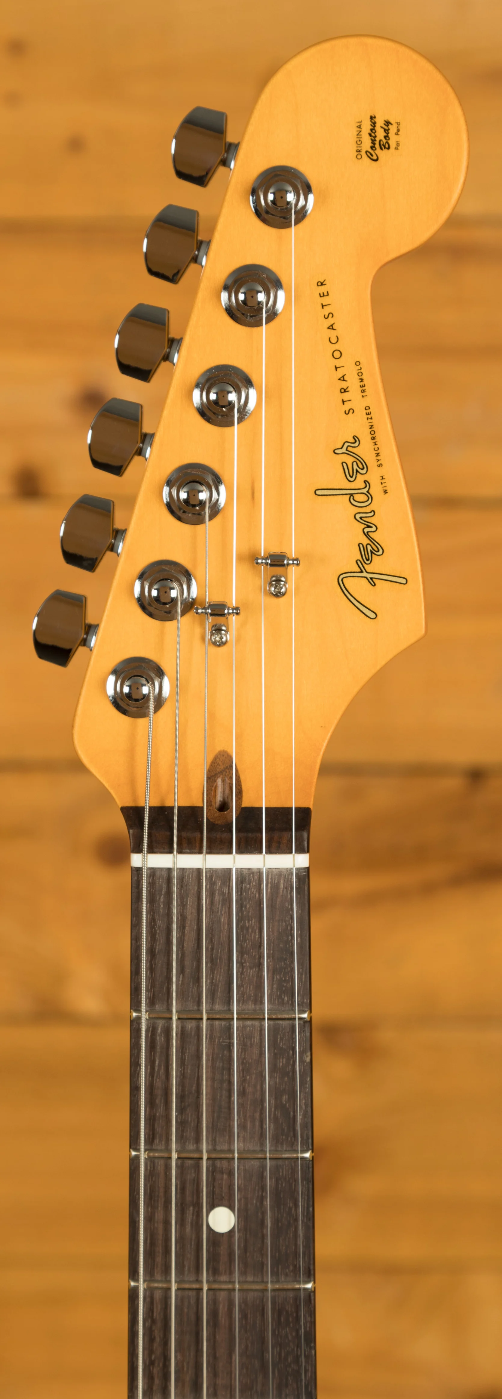 With a bolt on Maple neck this Strat has a super bright and has nice snappy tone. Thanks to the comfortable Modern D profile you can navigate the whole neck with ease. The Rosewood fingerboard is adorned with white dot inlays and features a 10"-14" radius, 22 frets and a 42.86mm nut width