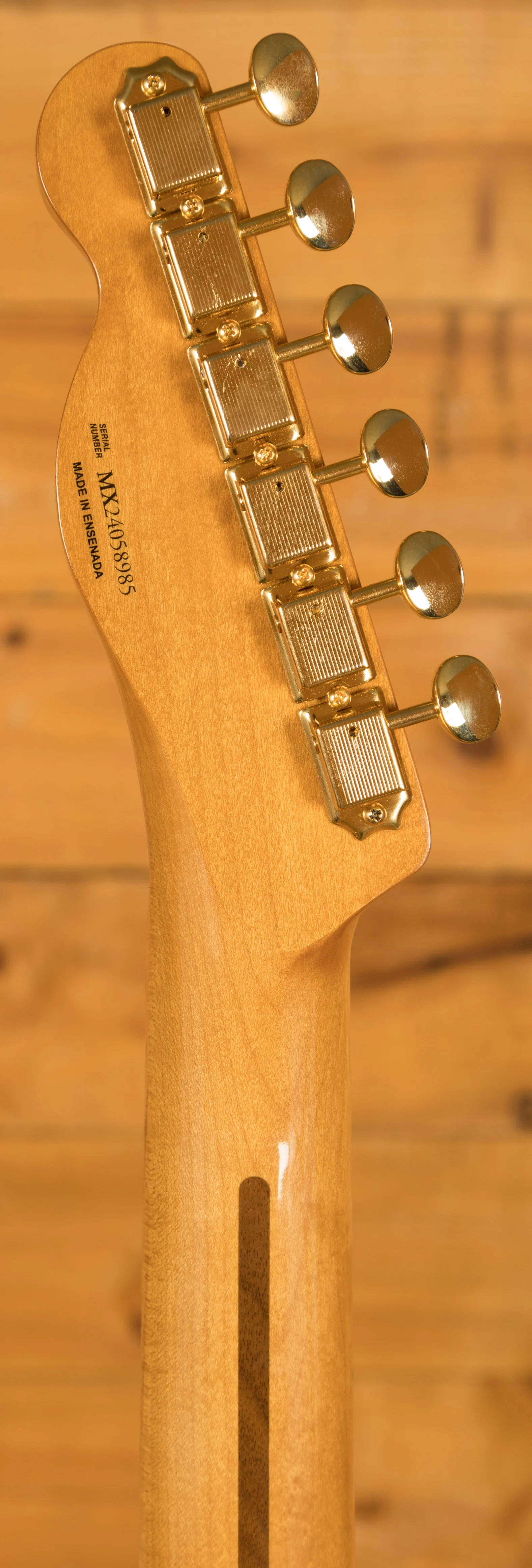Equipped with custom Buck Owens Alnico 3 and Alnico 2 single-coil Tele pickups, this guitar delivers the bright, cutting tone that defined Buck's Bakersfield country sound. Other features include a vintage 3-saddle bridge with barrel brass saddles, and a set of vintage style tuners.