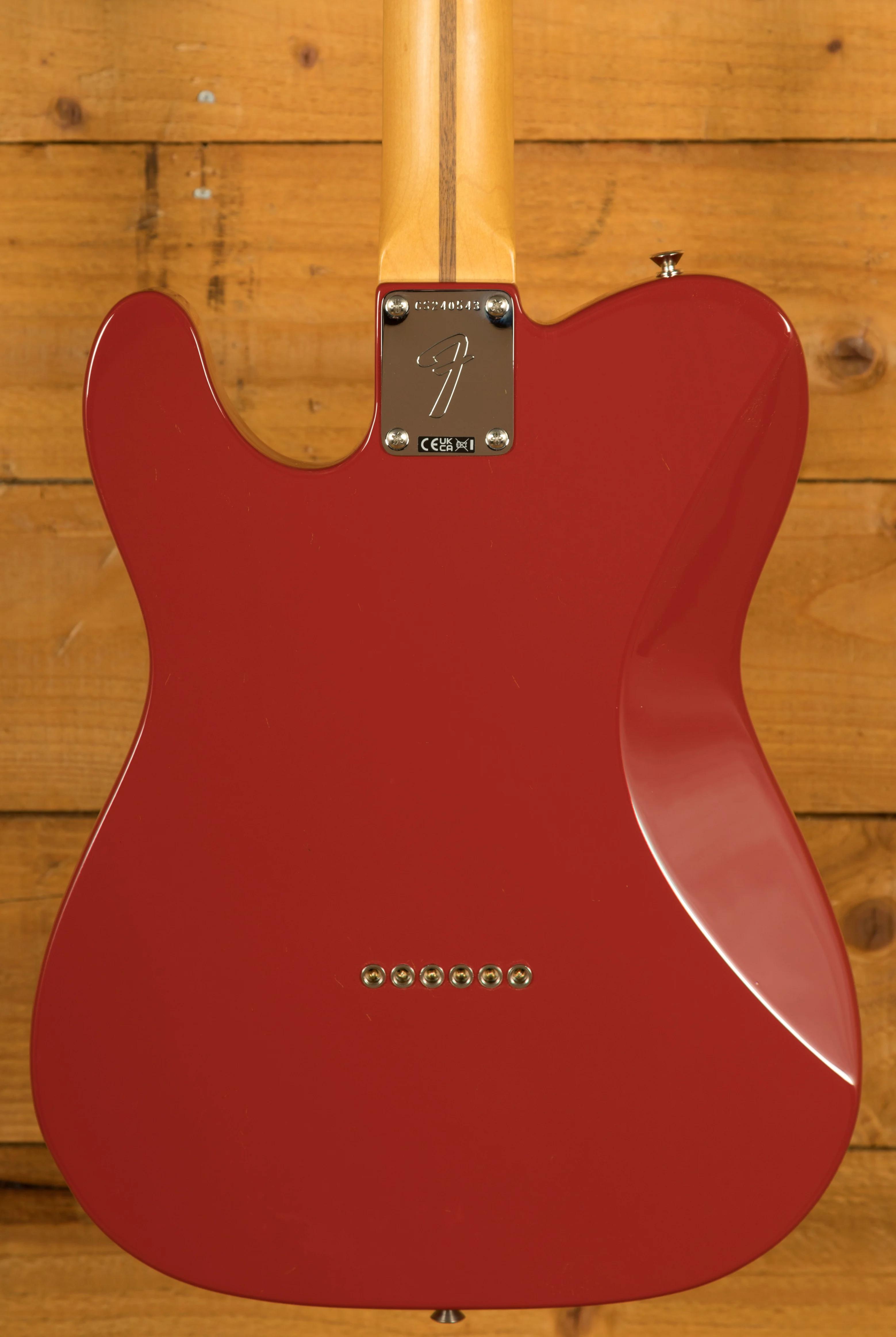 The 25.5" scale maple neck with a custom oval "C" profile offers a comfortable grip, suitable for various playing styles, from hard rock to country. Paired with a 12" radius rosewood fingerboard and medium jumbo frets, it provides modern playability for smooth bending and fast lead work. The white pearloid block inlays add an elegant aesthetic touch to the instrument's functional design.
