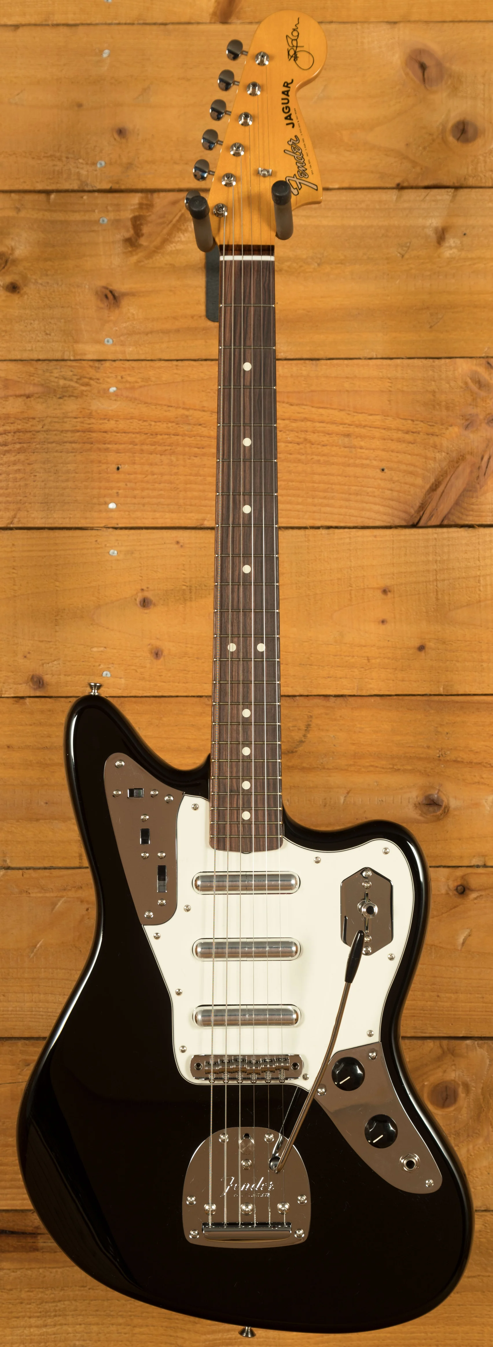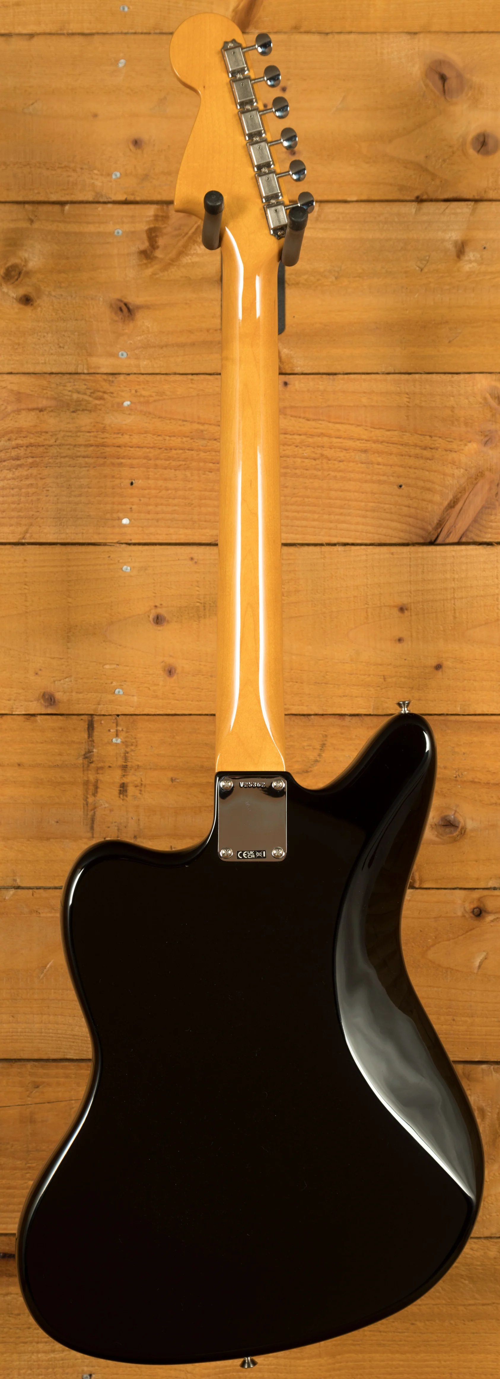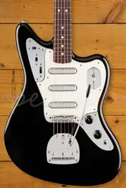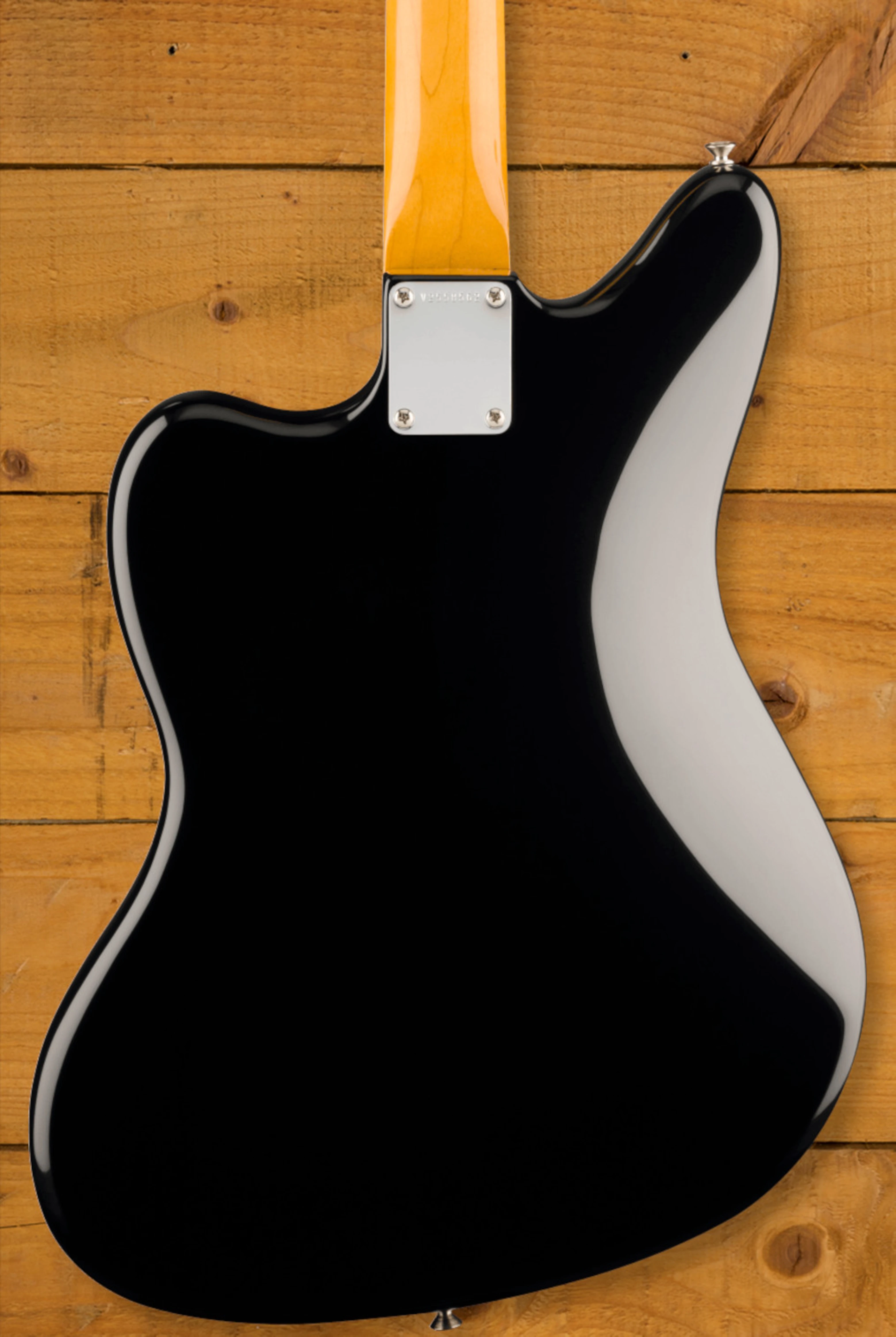 The guitar features an alder body finished in a high-quality gloss nitrocellulose black lacquer. This finish not only enhances the visual appeal but also allows the wood to breathe, contributing to a more resonant and natural tone that improves with age. The custom maple neck profile replicates the feel of Marr's own 1965 Jaguar, providing exceptional playability with a familiar, worn-in feel straight out of the case. The 24" scale length and 9.5" radius rosewood fretboard offer a balanced blend of modern comfort and vintage character, supporting both expressive bends and smooth chord transitions across the 22 vintage-style frets.