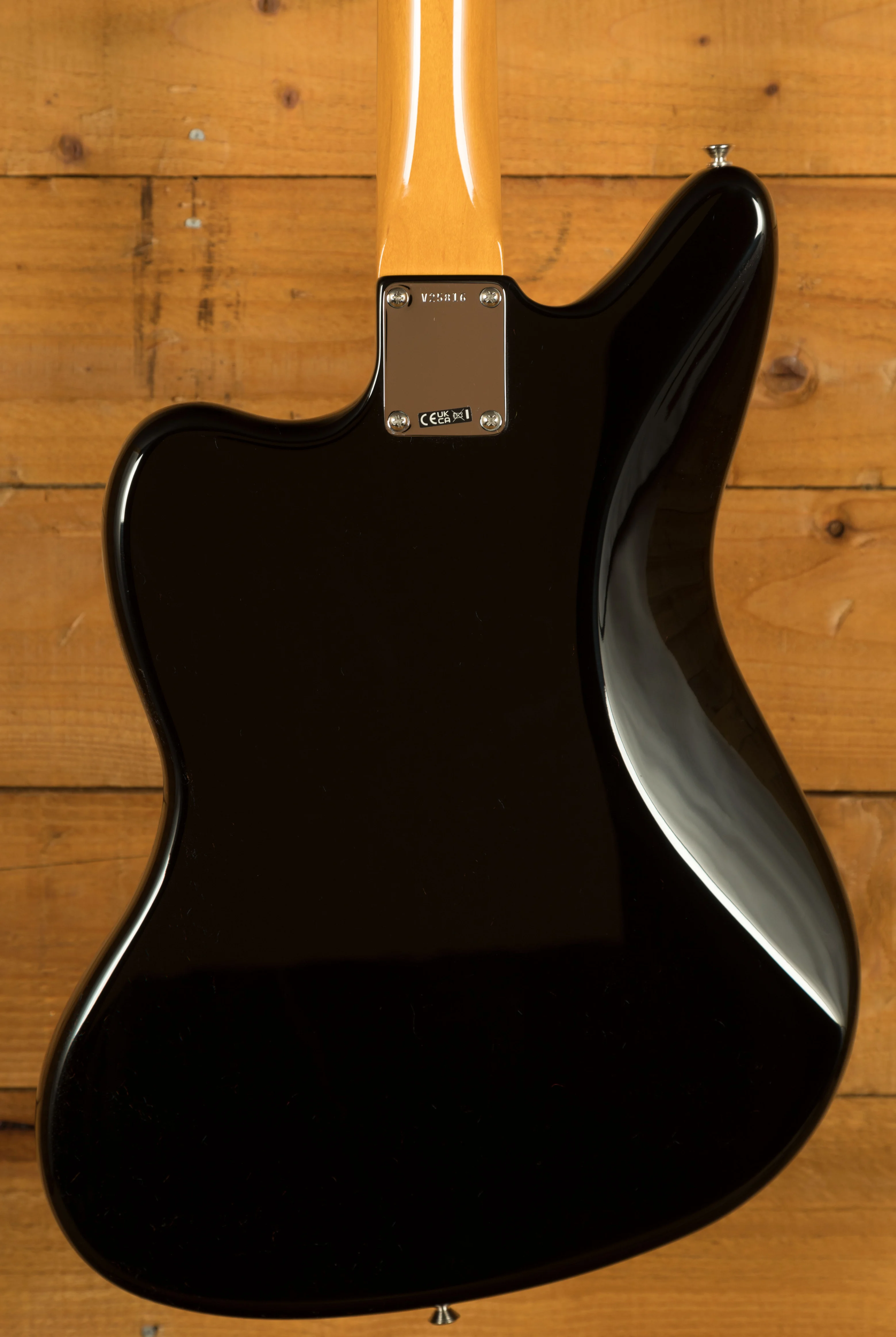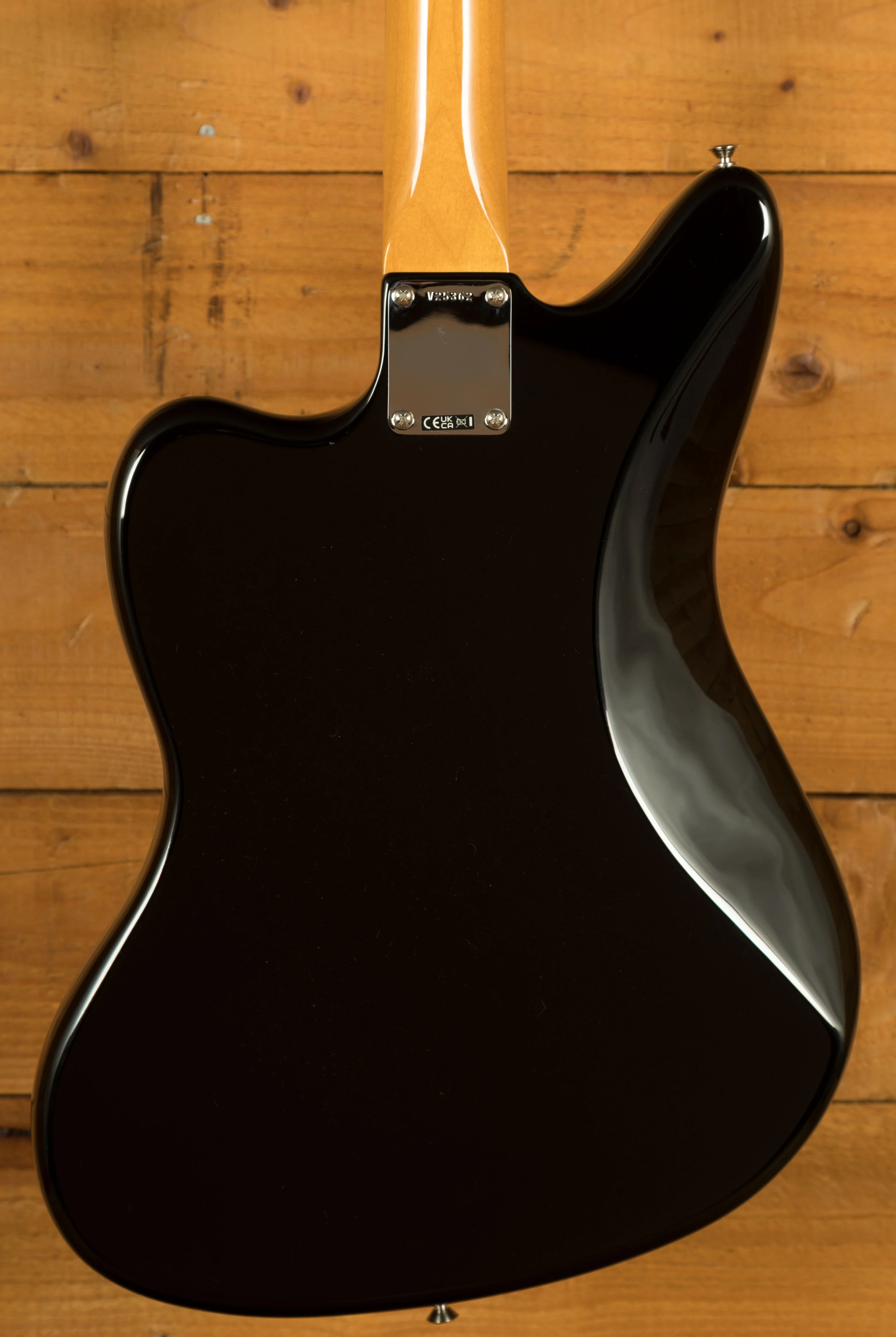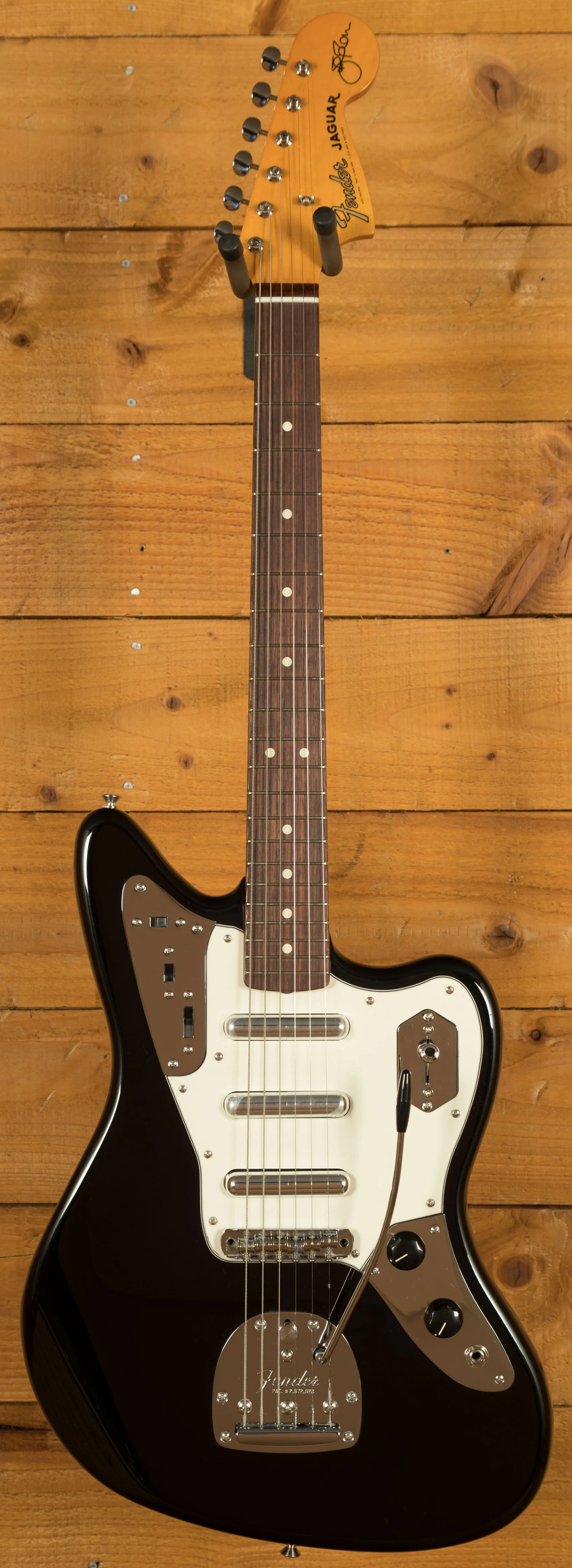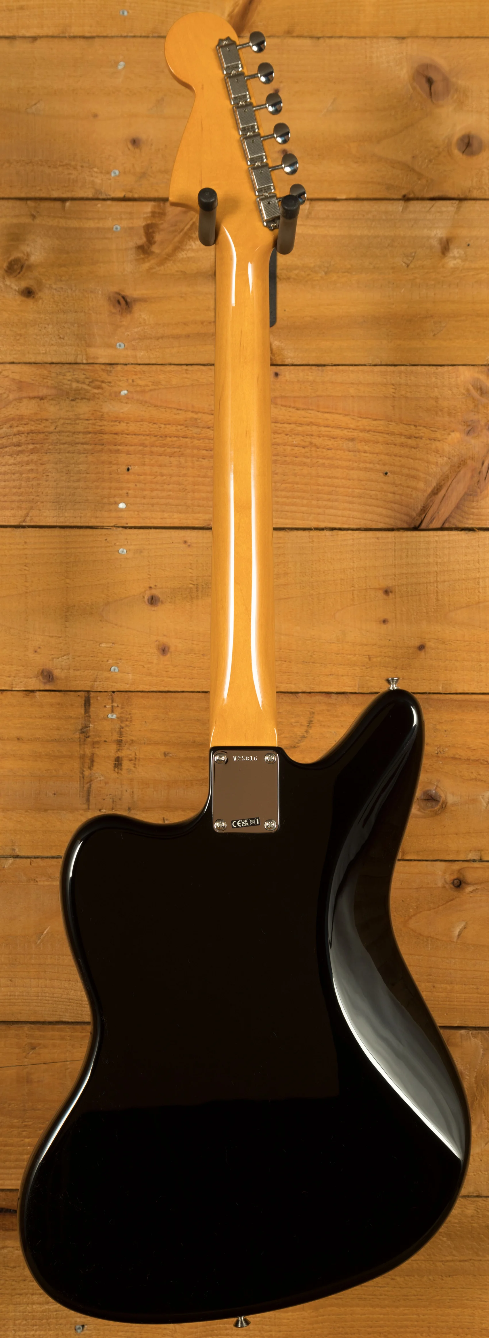 The guitar features an alder body finished in a high-quality gloss nitrocellulose black lacquer. This finish not only enhances the visual appeal but also allows the wood to breathe, contributing to a more resonant and natural tone that improves with age. The custom maple neck profile replicates the feel of Marr's own 1965 Jaguar, providing exceptional playability with a familiar, worn-in feel straight out of the case. The 24" scale length and 9.5" radius rosewood fretboard offer a balanced blend of modern comfort and vintage character, supporting both expressive bends and smooth chord transitions across the 22 vintage-style frets.