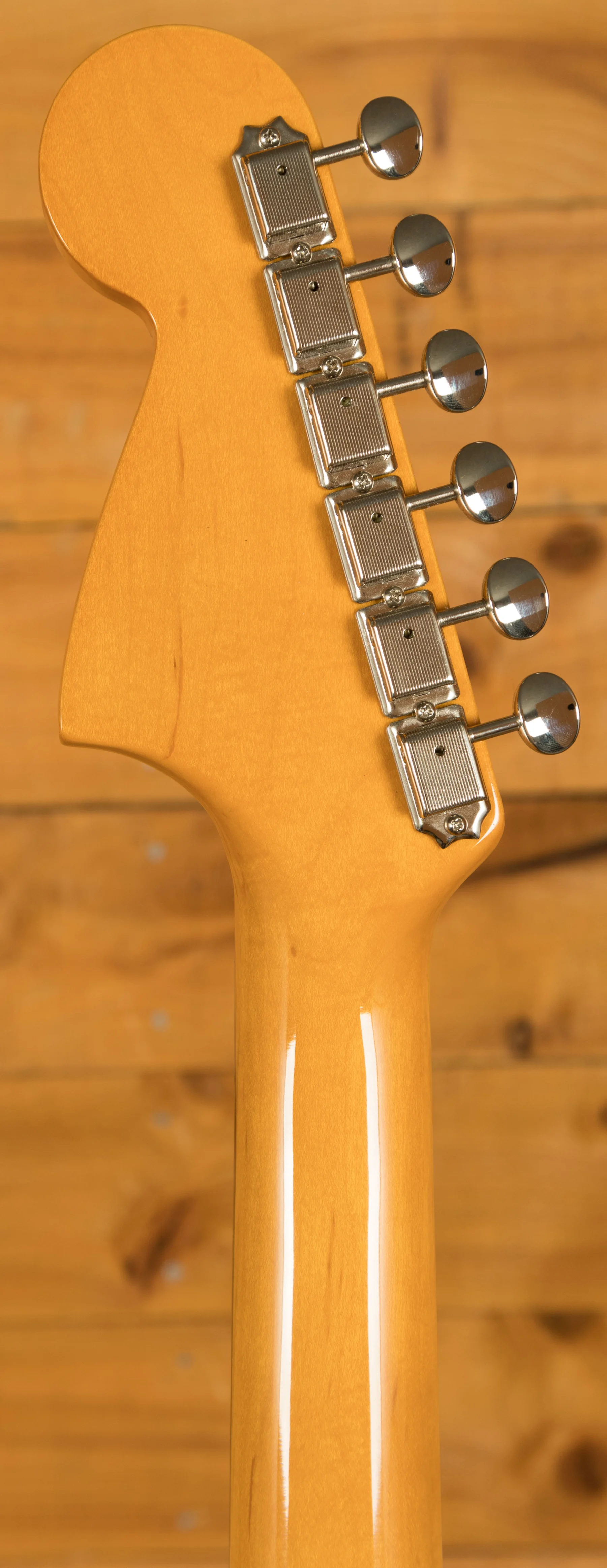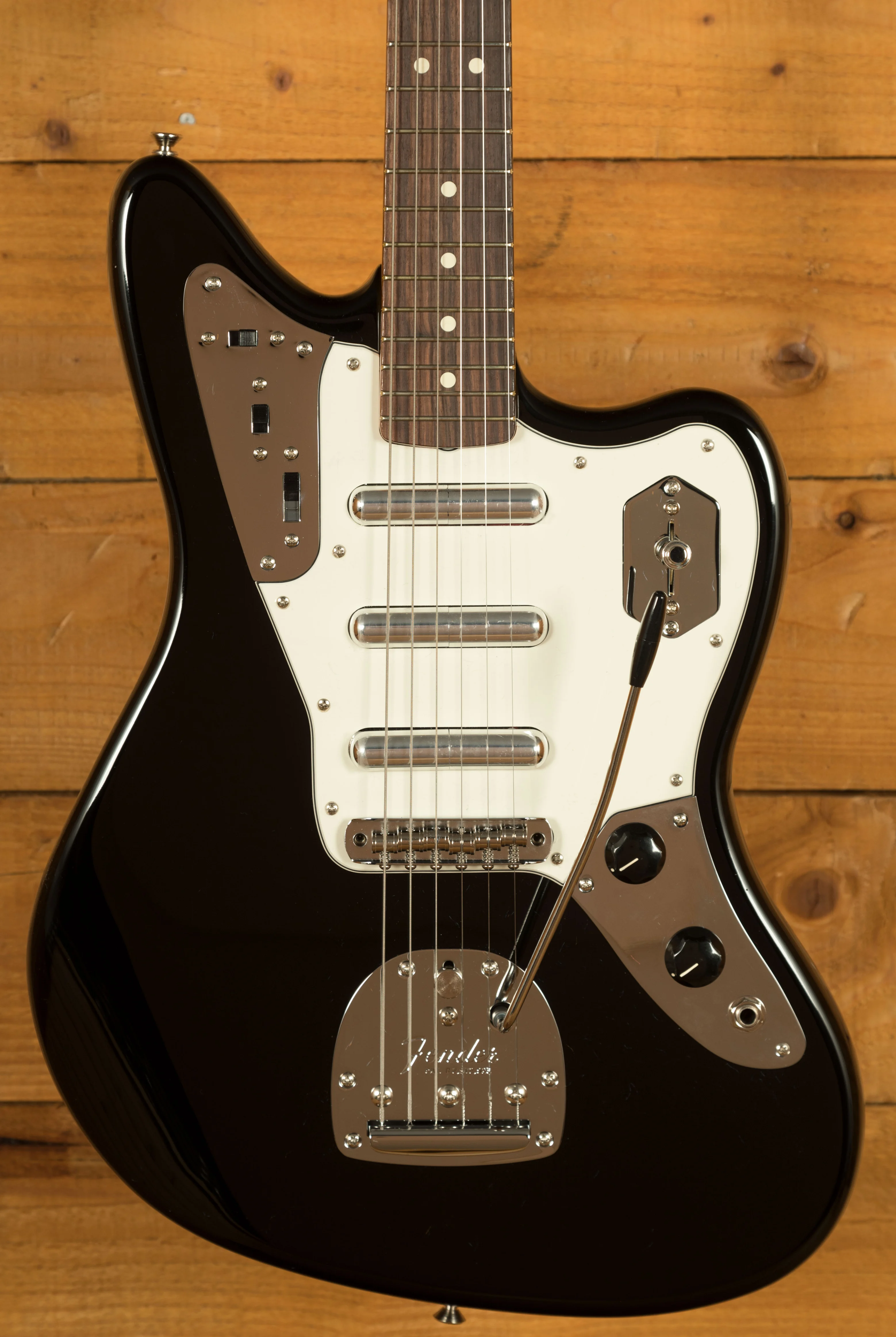Hardware has been carefully selected for stability and reliability. The Jaguar bridge with Mustang saddles ensures accurate intonation and excellent tuning stability, aided by nylon post inserts that reduce unwanted movement. The vintage-style floating tremolo system incorporates a taller tremolo arm and a nylon sleeve insert, delivering smooth and consistent operation while maintaining the traditional Jaguar character.
