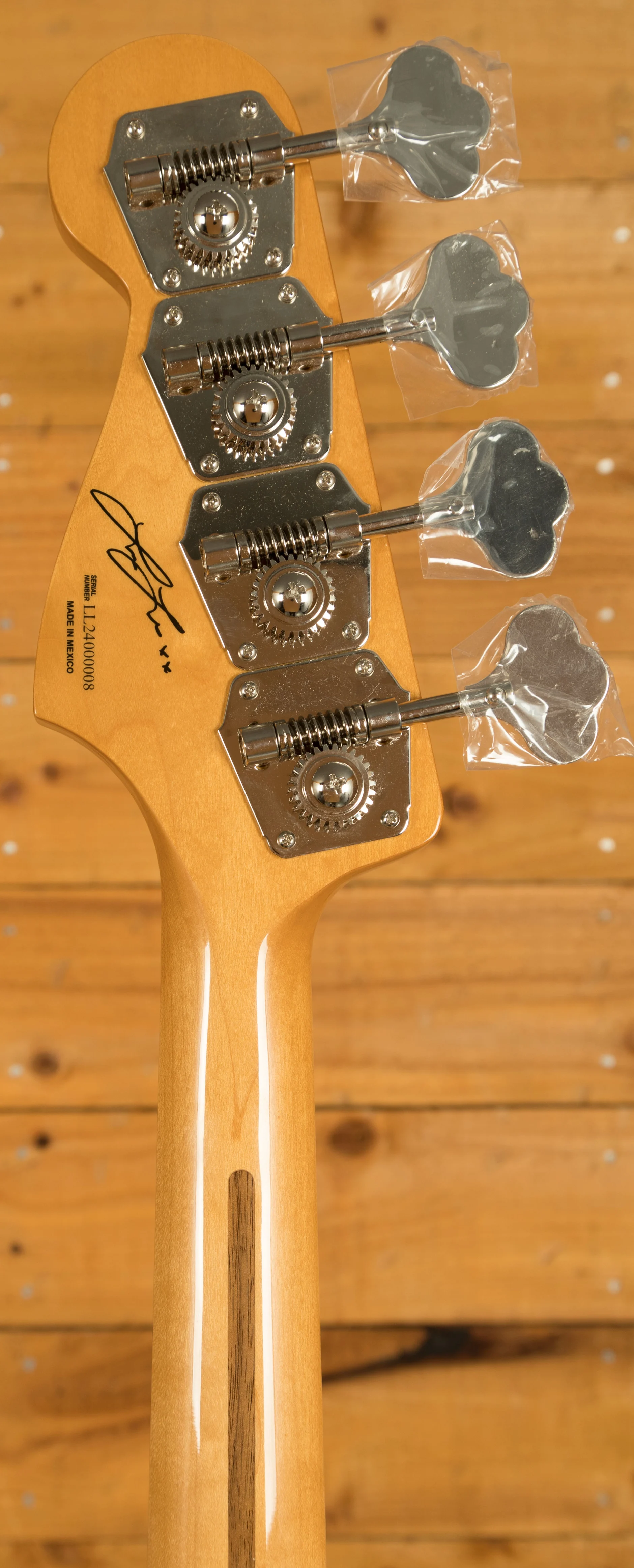 The Laura Lee Jazz Bass begins with a traditional Alder body. It’s a super resonant wood choice and gives this bass great punch and power. Finished in Vintage White, this Jazz Bass fuses classic Fender visuals with modern features and playability.