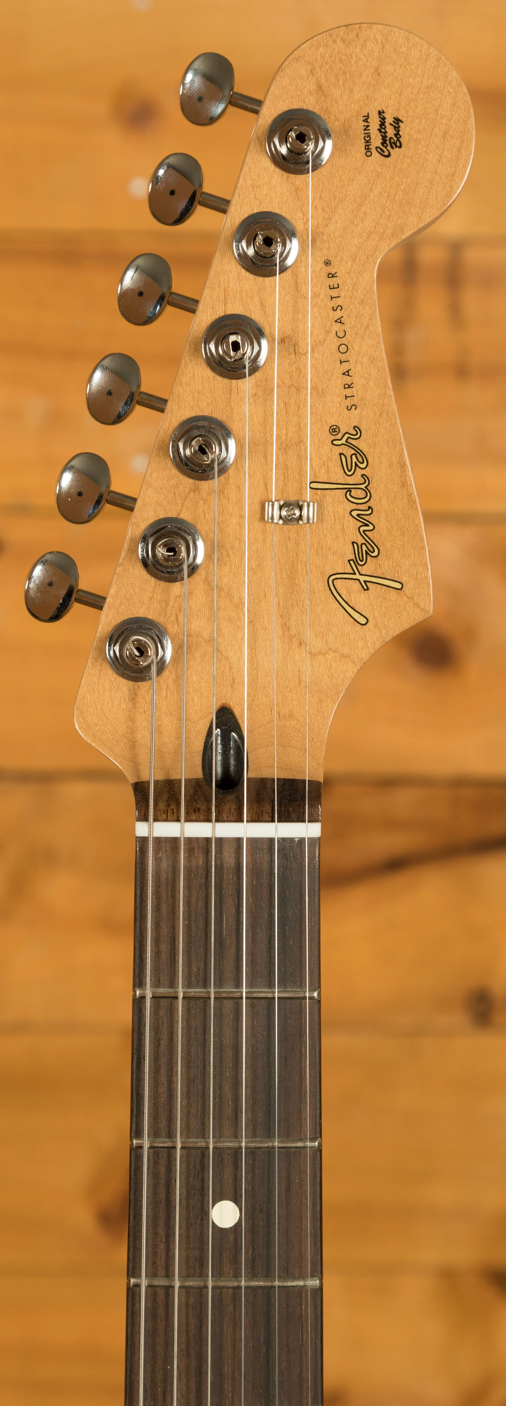 Equipped with Seymour Duncan Hot Chicken Strat pickups, this Strat delivers crystalline highs, tight lows, and expressive mids. The 5-way blade switch unlocks everything from glassy cleans to aggressive lead tones. A 2-point synchronized tremolo with bent steel saddles ensures fluid vibrato and solid tuning stability, while ClassicGear tuners round out the hardware with reliable performance.