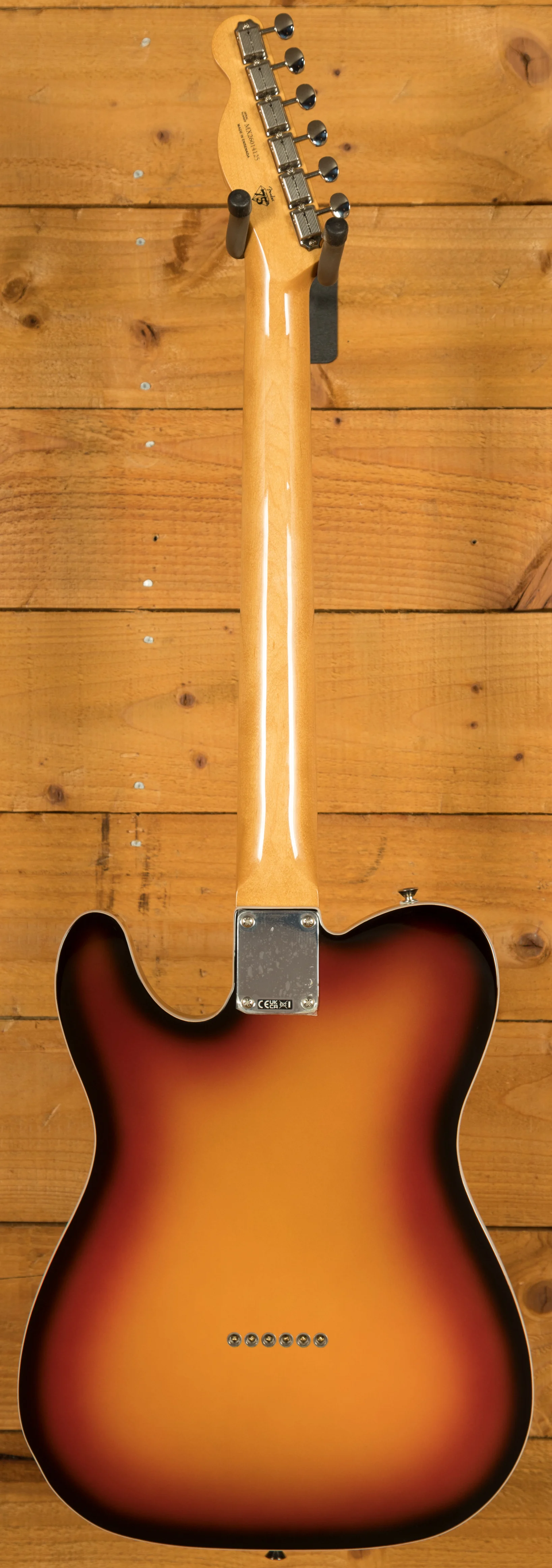 A vintage-style 3-saddle bridge with threaded steel saddles delivers authentic twang, while period-correct tuning machines combine traditional aesthetics with improved stability and accuracy. Altogether, this model delivers timeless looks, feel, and sound, staying true to one of Fender's most iconic eras.