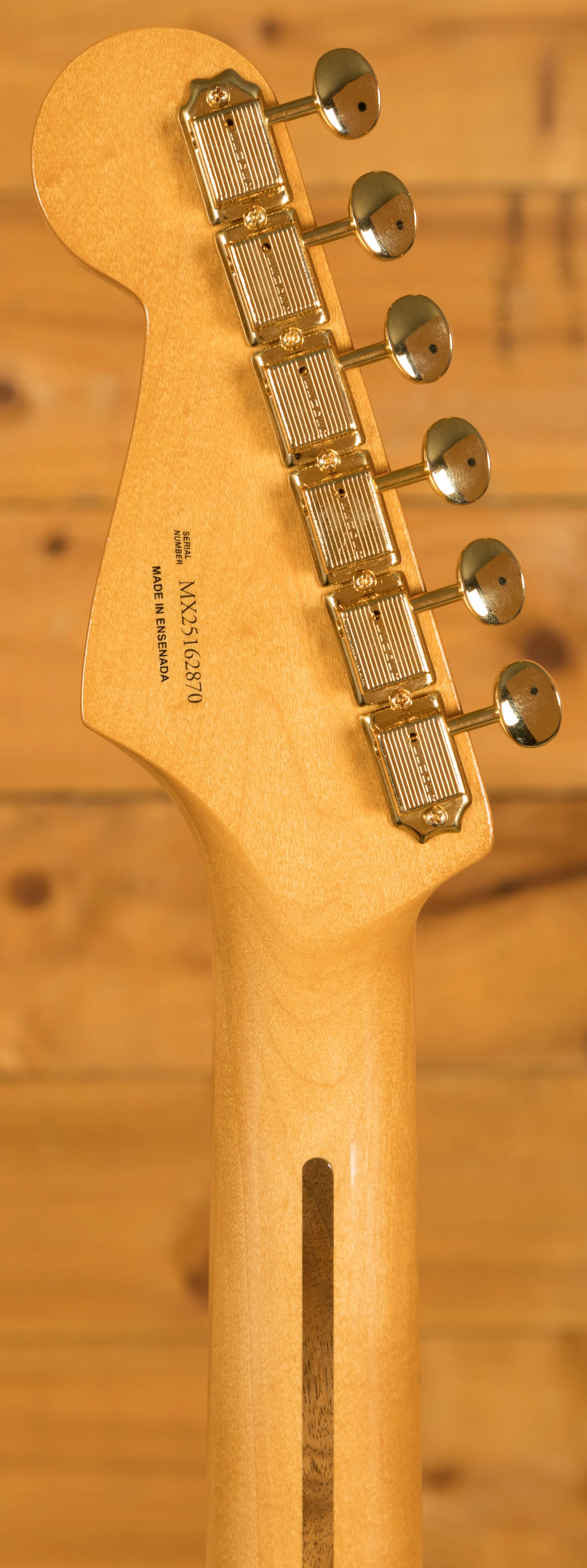 A vintage-style synchronised tremolo with bent steel saddles allows for expressive vibrato and precise adjustability, while period-correct tuning machines combine traditional aesthetics with improved stability and accuracy. Altogether, this model delivers timeless looks, feel, and sound, staying true to one of Fender's most iconic eras.