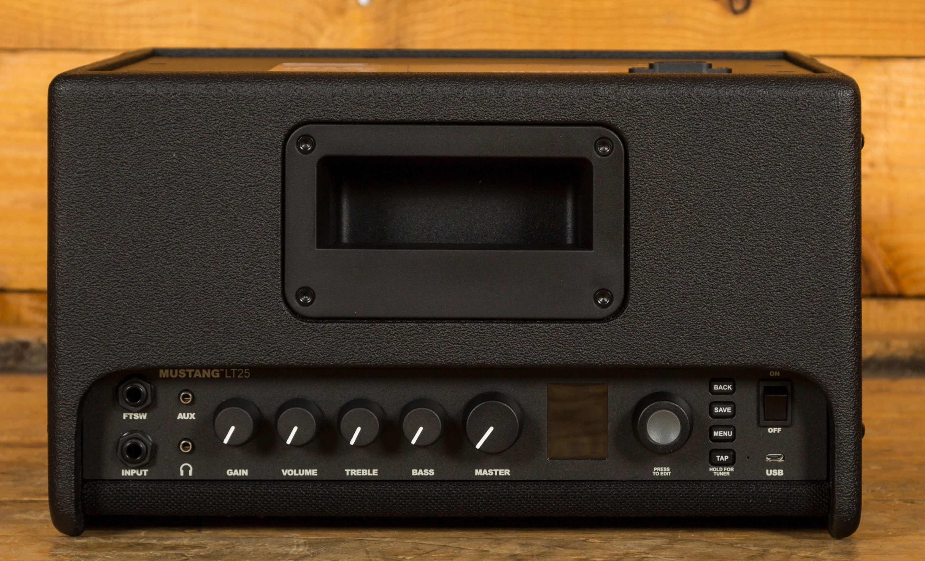 Mustang LT25 incorporates what we've learned over decades of producing the best-sounding guitar amps on the planet. It's ideal for beginners and students, with a super-simple user interface and a collection of 30 presets covering a wide range of music - a "greatest hits" of electric guitar tones. The versatile signal chain with high-quality onboard amp and effects models produces amazing tones, making it an ideal practice amp for home or office.