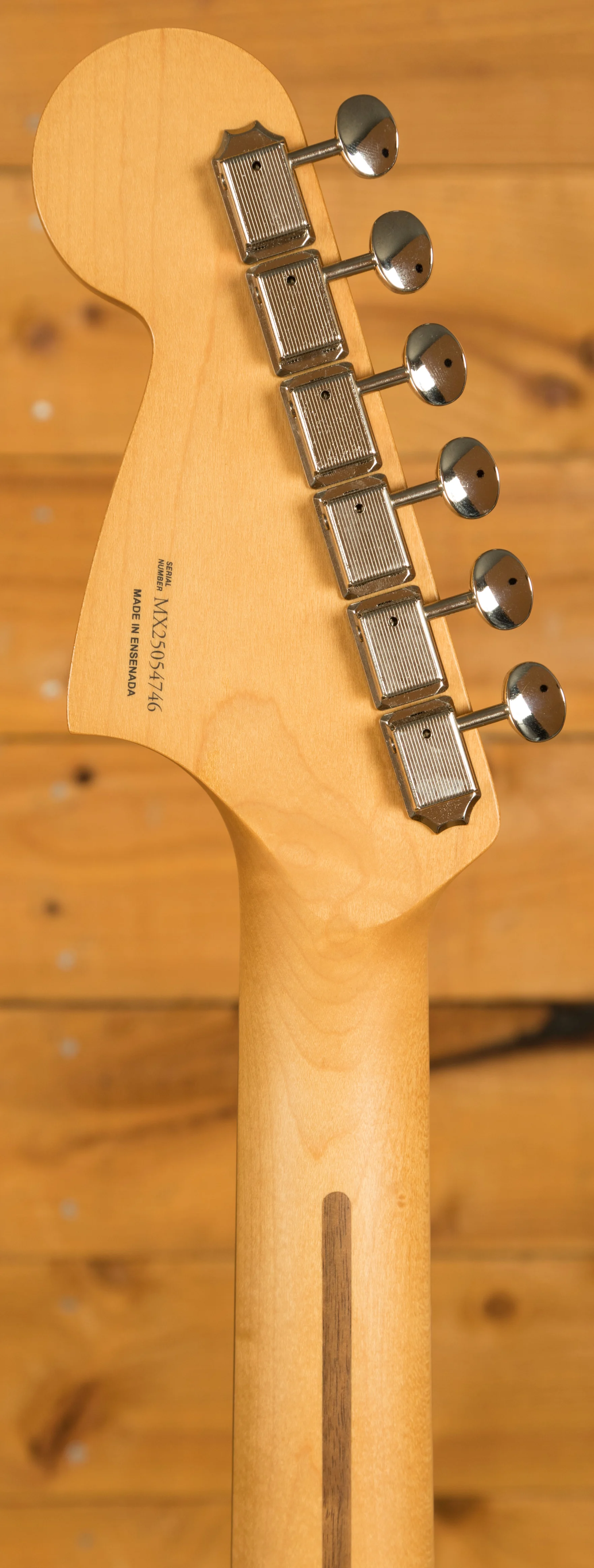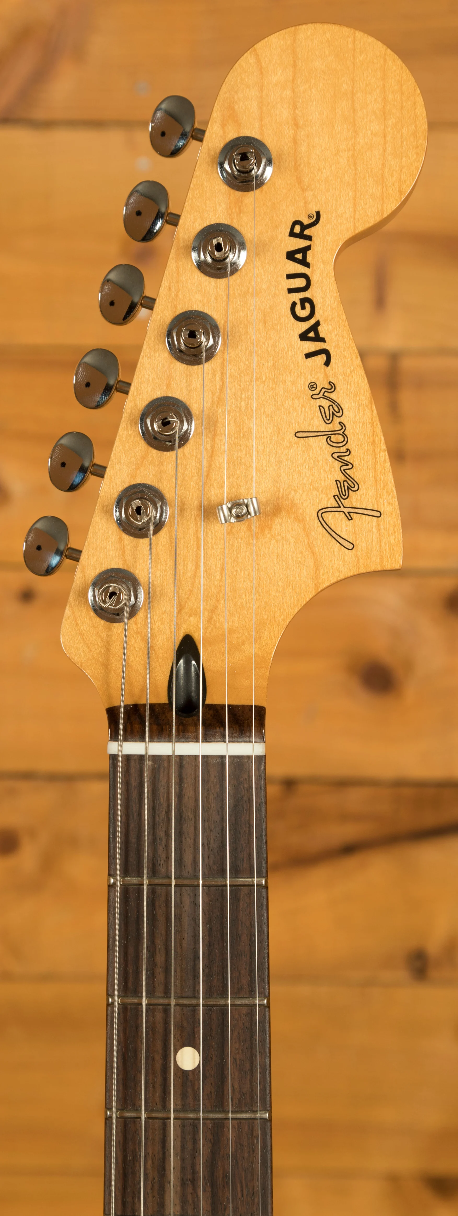 The guitar is equipped with a 6-saddle Jaguar bridge with a Floating Tremolo, upgraded Mustang saddles, and ClassicGear tuners. These features ensure precise tuning stability and flexibility, allowing for endless sonic exploration. The innovative floating tremolo provides smooth and expressive vibrato, while the Mustang saddles ensure strings stay in place for accurate intonation.