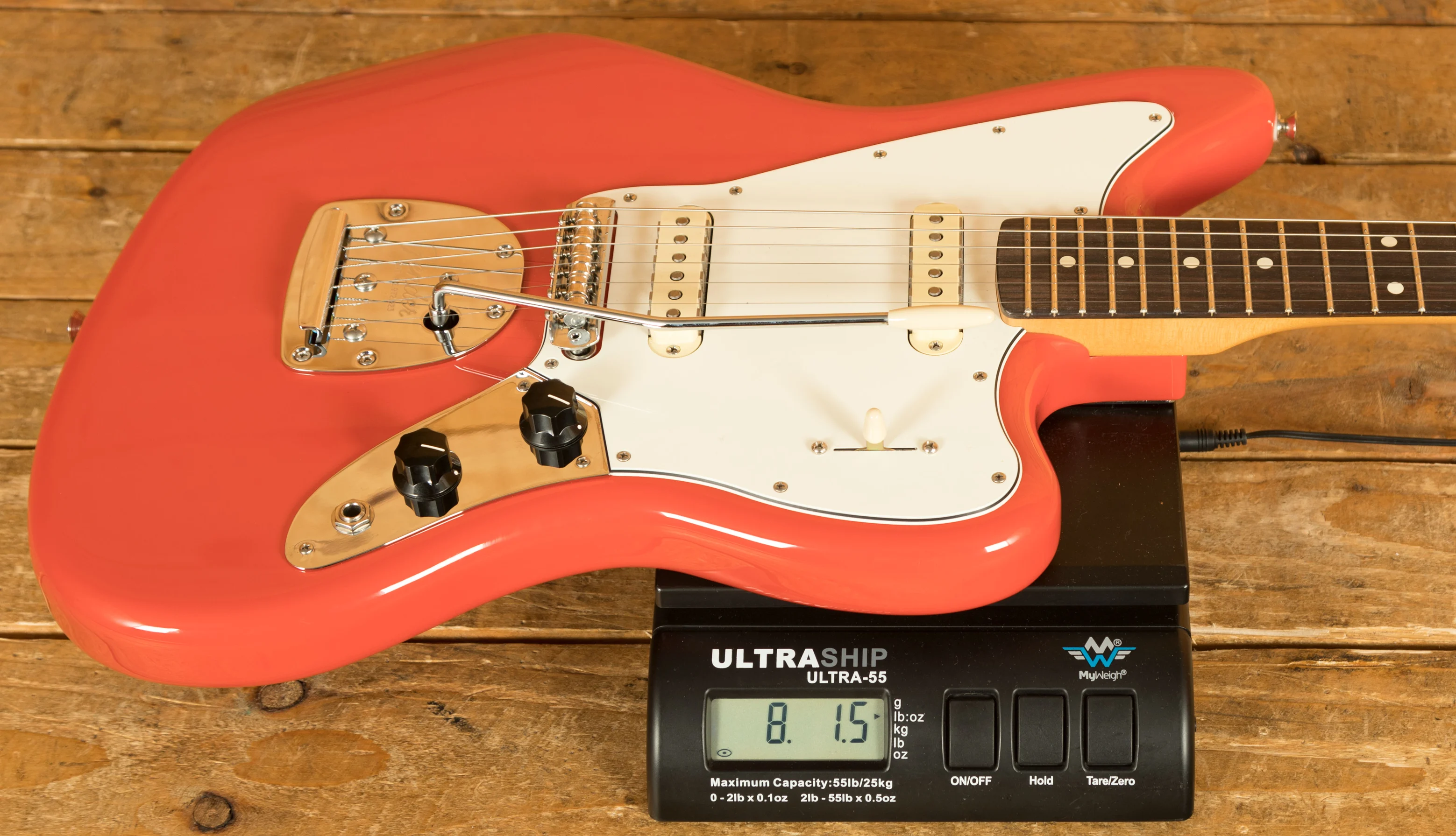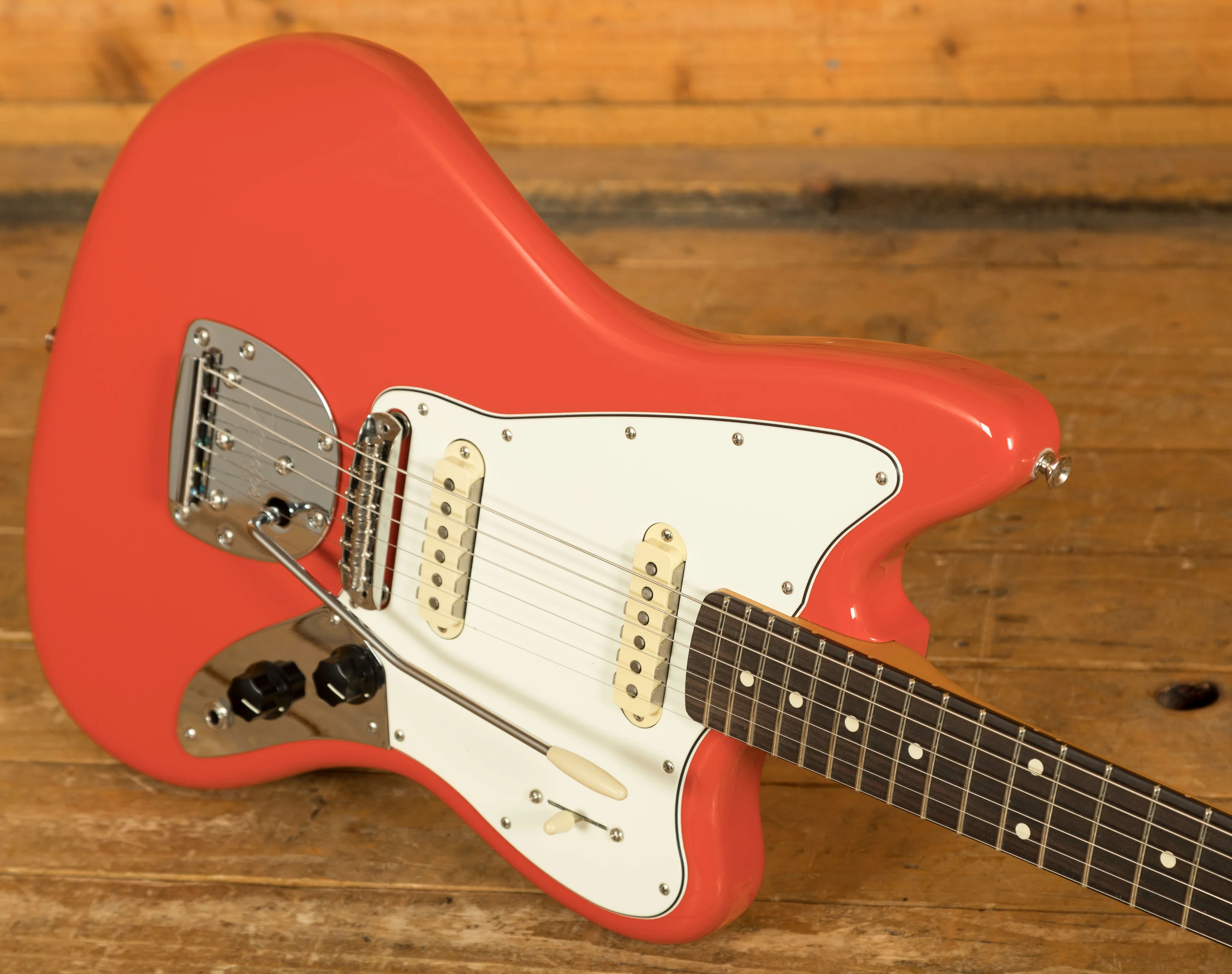 The Player II Jaguar is the perfect combination of classic Fender aesthetics and modern performance, making it an ideal choice for contemporary guitarists. Designed for fast and fluid playability, it features a Modern "C" profile neck with a satin urethane finish on the back, providing a smooth feel. The 9.5" radius slab rosewood fingerboard with rolled edges and 22 medium jumbo frets ensure comfortable and precise playing.