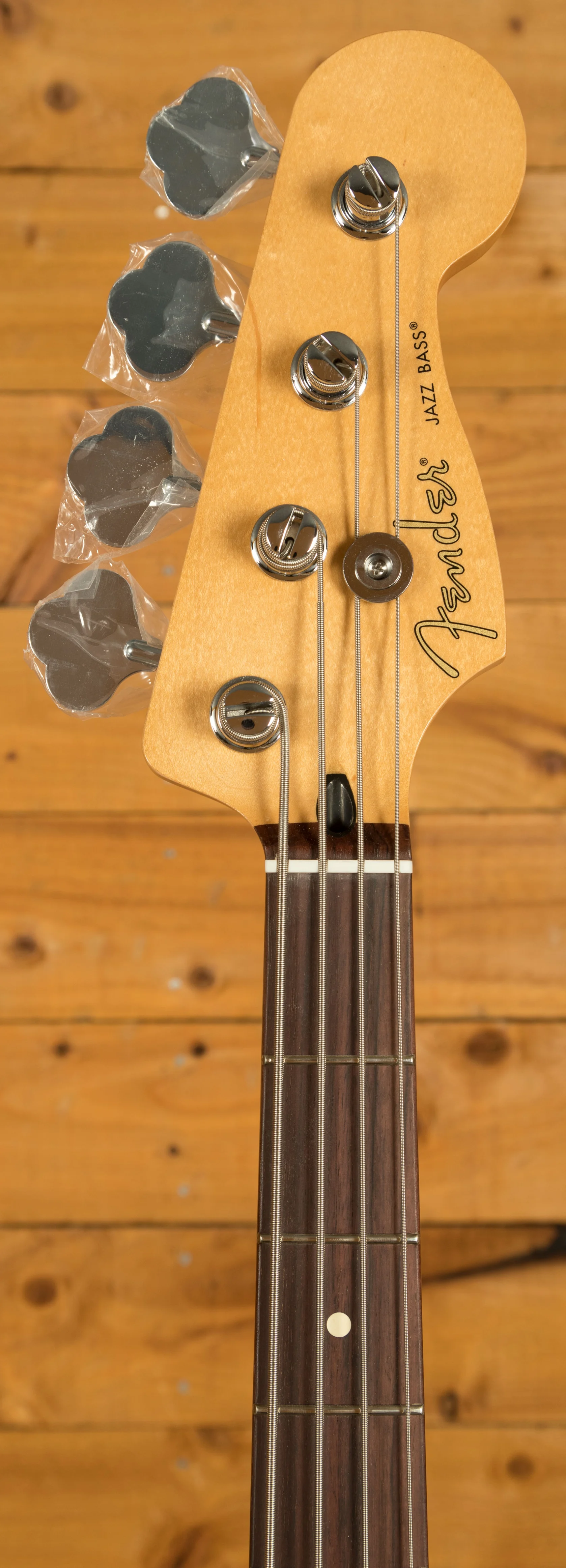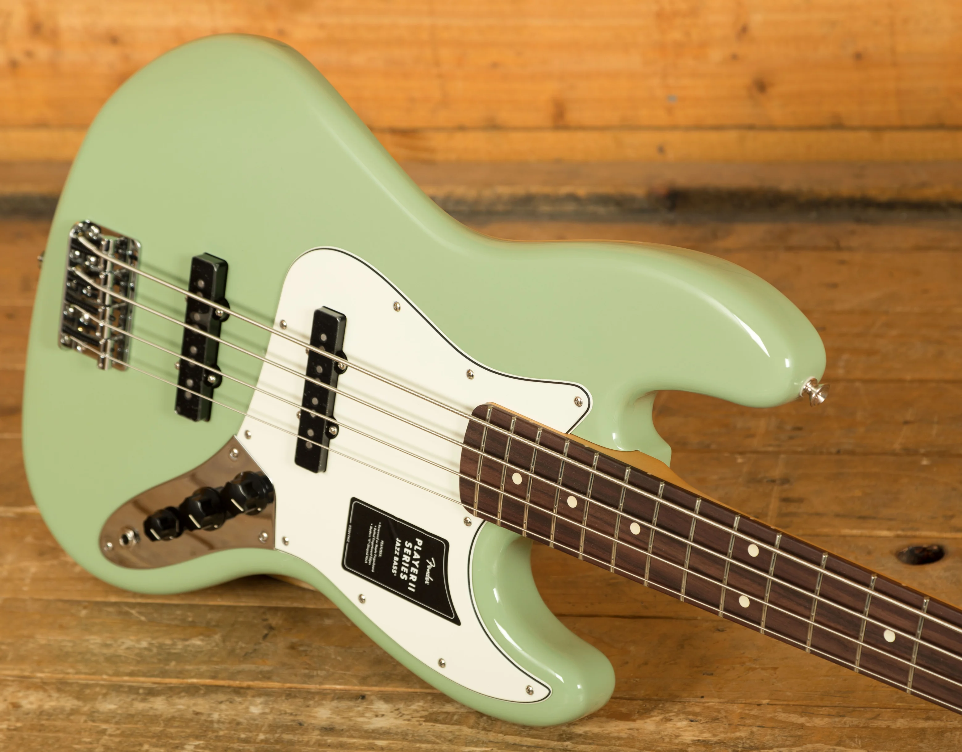 The Player II Jazz Bass maintains the classic Fender look while incorporating features that cater to modern players. The neck is crafted for fast and fluid playability, featuring a Modern "C" profile and a satin urethane finish on the back. The 9.5" radius fingerboard, available in rosewood or maple, has smooth rolled edges and 20 medium jumbo frets for a comfortable, inviting feel. The alder body is available in both traditional and unique, archival Fender finishes, ensuring you find a look that suits your style.