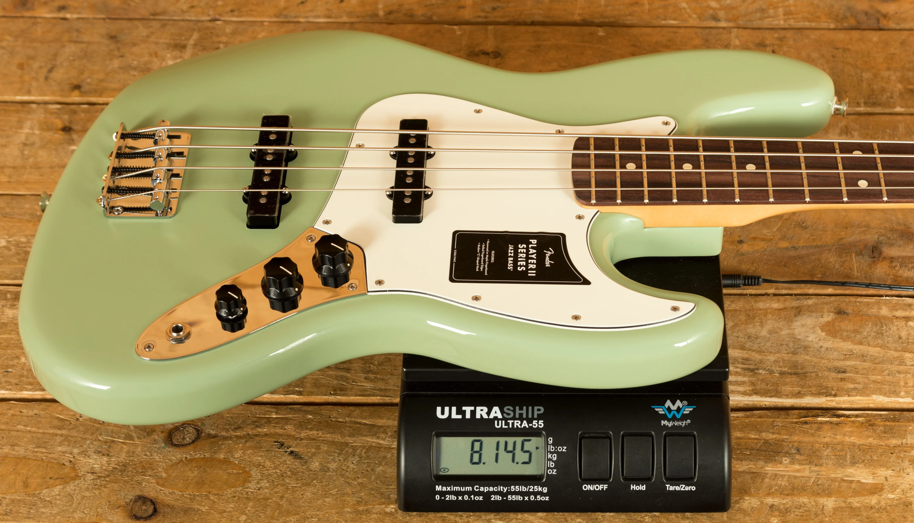 The contoured alder body of the Player II Jazz Bass lays the foundation for authentic Fender tone, renowned for its quality and sound. The Modern "C" neck profile provides a supremely comfortable playing experience, ideal for various playing styles, while the 9.5" radius fingerboard and rolled edges offer fast fretting and easy playability.