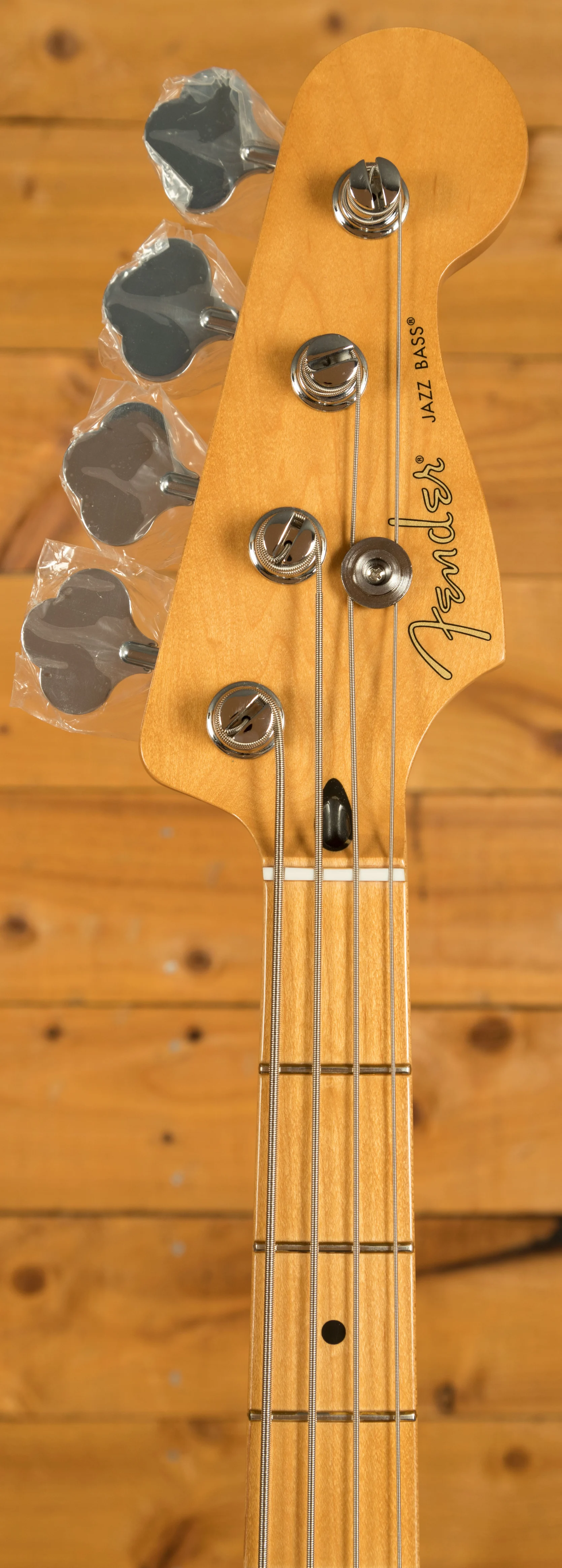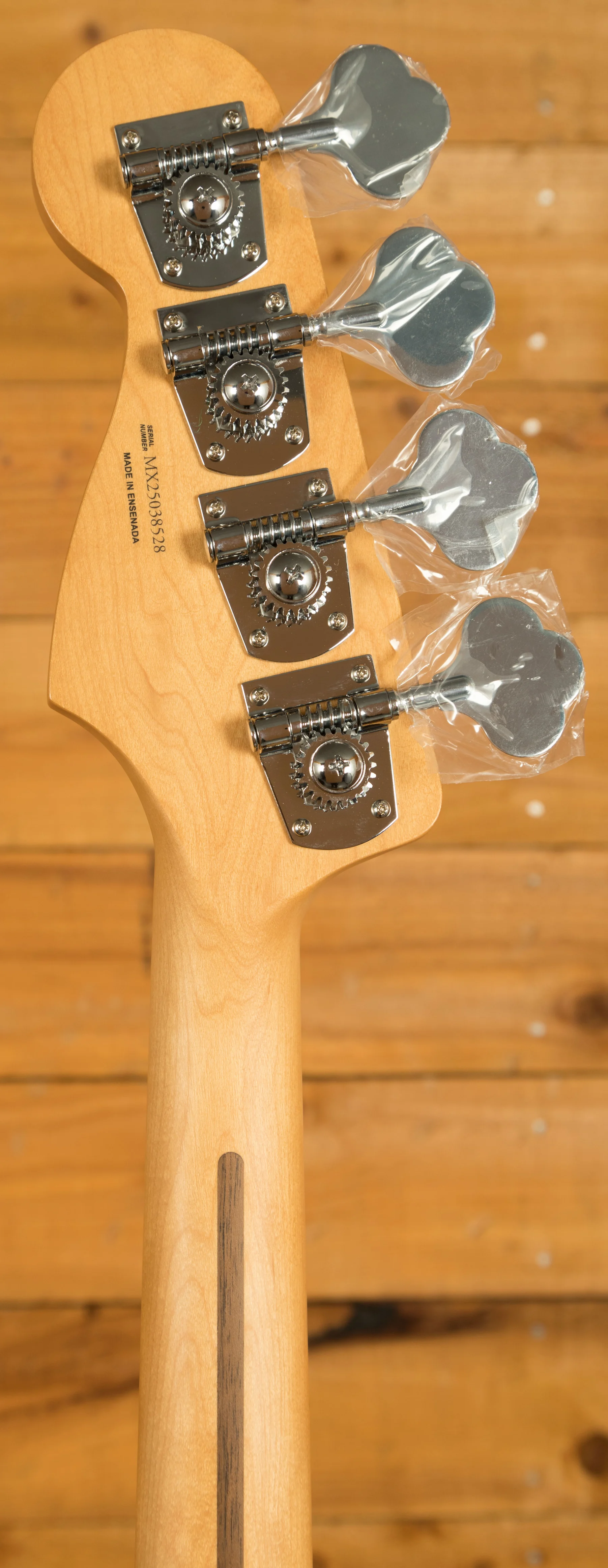 The Player II Jazz Bass maintains the classic Fender look while incorporating features that cater to modern players. The neck is crafted for fast and fluid playability, featuring a Modern "C" profile and a satin urethane finish on the back. The 9.5" radius fingerboard, available in rosewood or maple, has smooth rolled edges and 20 medium jumbo frets for a comfortable, inviting feel. The alder body is available in both traditional and unique, archival Fender finishes, ensuring you find a look that suits your style.