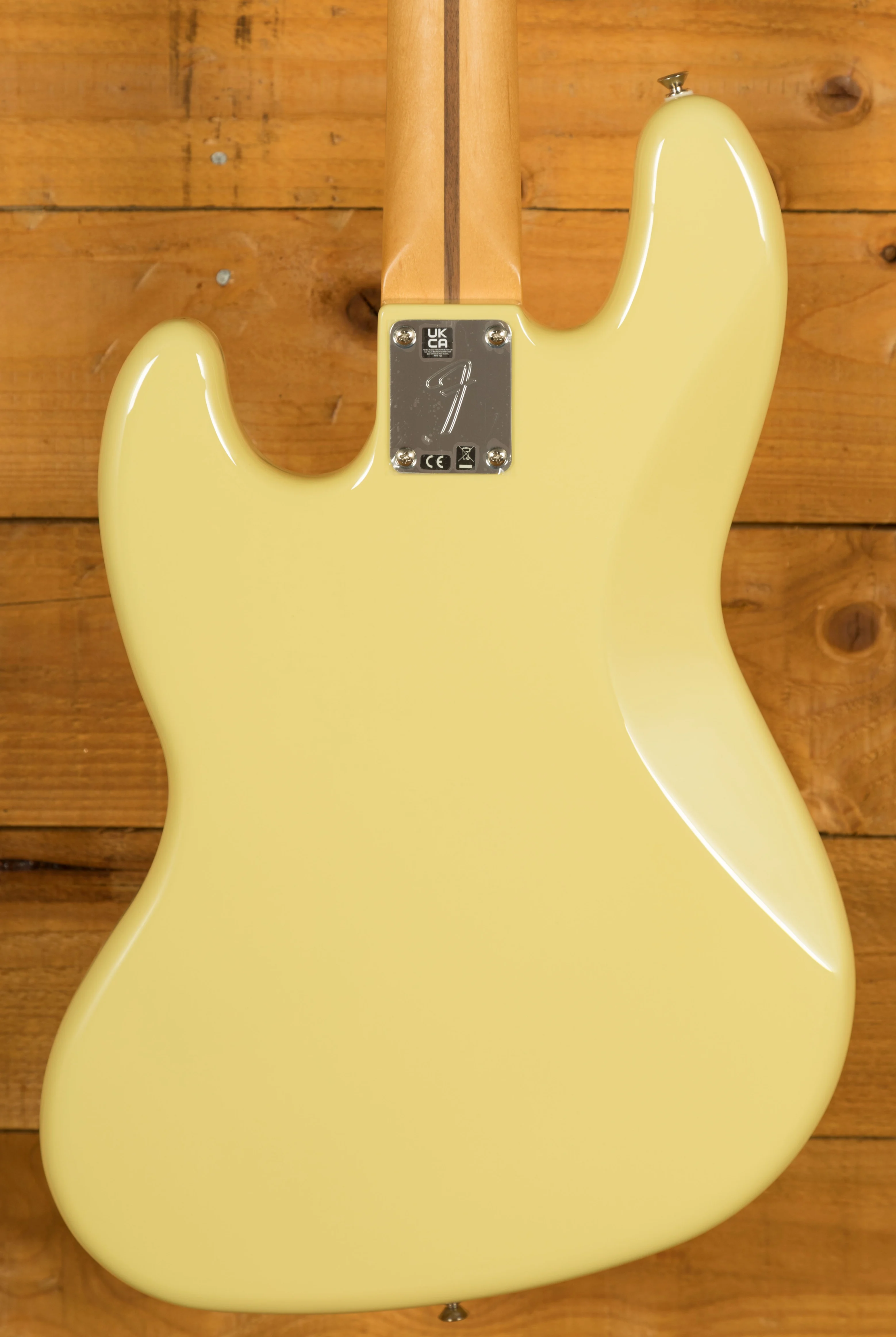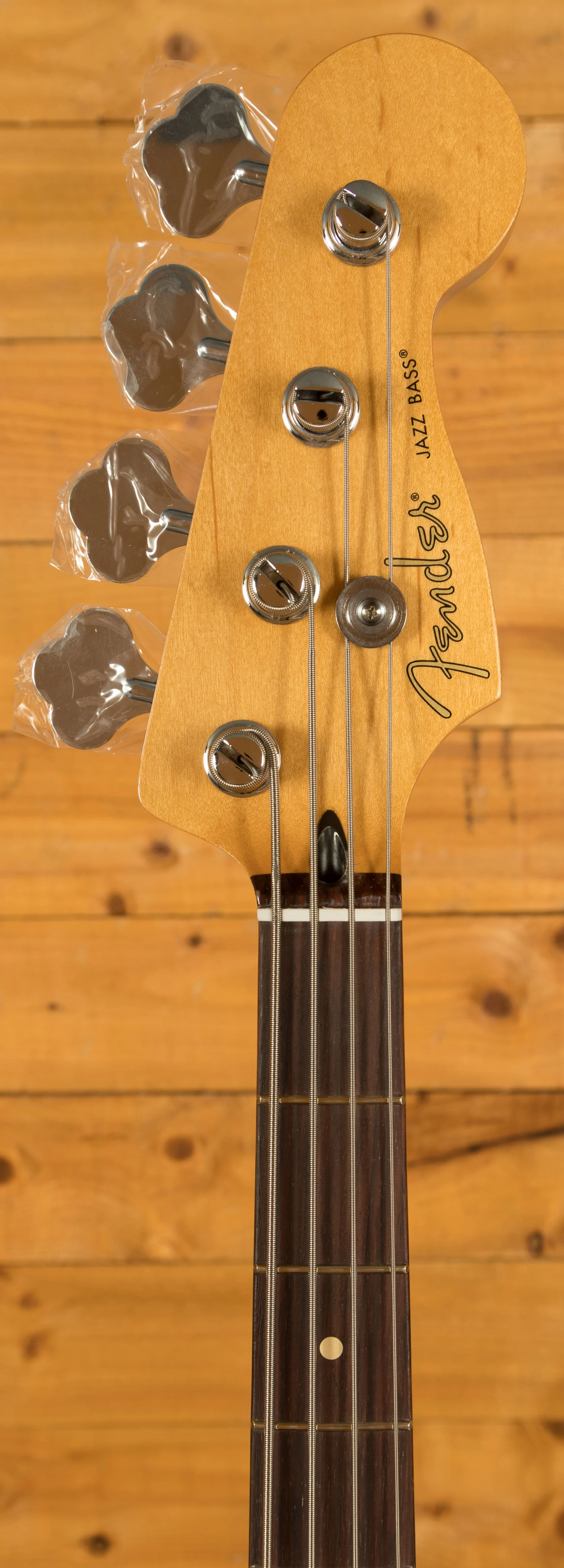 The Player II Jazz Bass maintains the classic Fender look while incorporating features that cater to modern players. The neck is crafted for fast and fluid playability, featuring a Modern "C" profile and a satin urethane finish on the back. The 9.5" radius fingerboard, available in rosewood or maple, has smooth rolled edges and 20 medium jumbo frets for a comfortable, inviting feel. The alder body is available in both traditional and unique, archival Fender finishes, ensuring you find a look that suits your style.