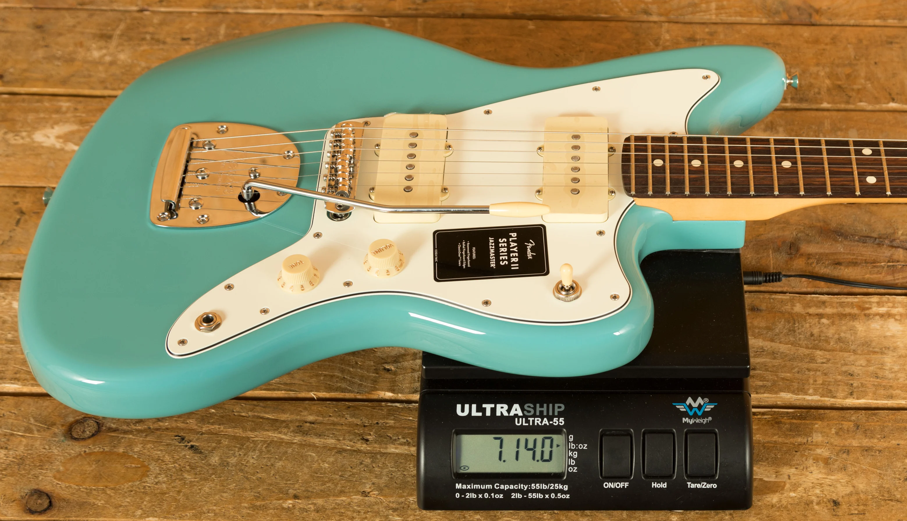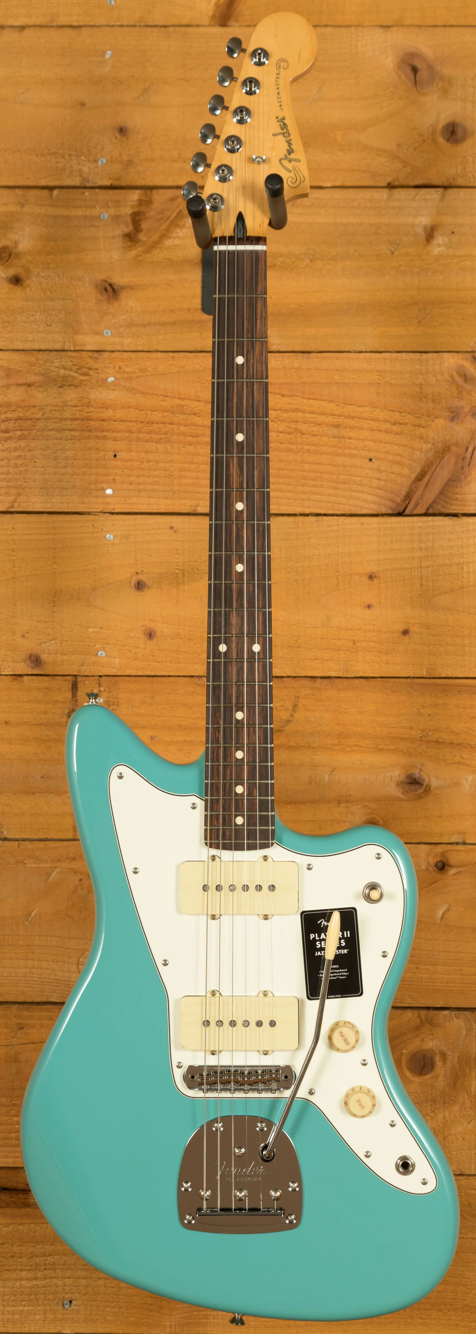 The Player II Jazzmaster combines timeless Fender aesthetics with modern enhancements designed for today's musicians. The neck features a Modern "C" profile and a silky satin urethane finish, offering fast and fluid playability. The 9.5" radius slab rosewood fingerboard with smooth rolled edges and 22 medium jumbo frets provides comfortable and effortless playing. The classic alder body comes in both traditional Fender finishes and unique, archival colors.