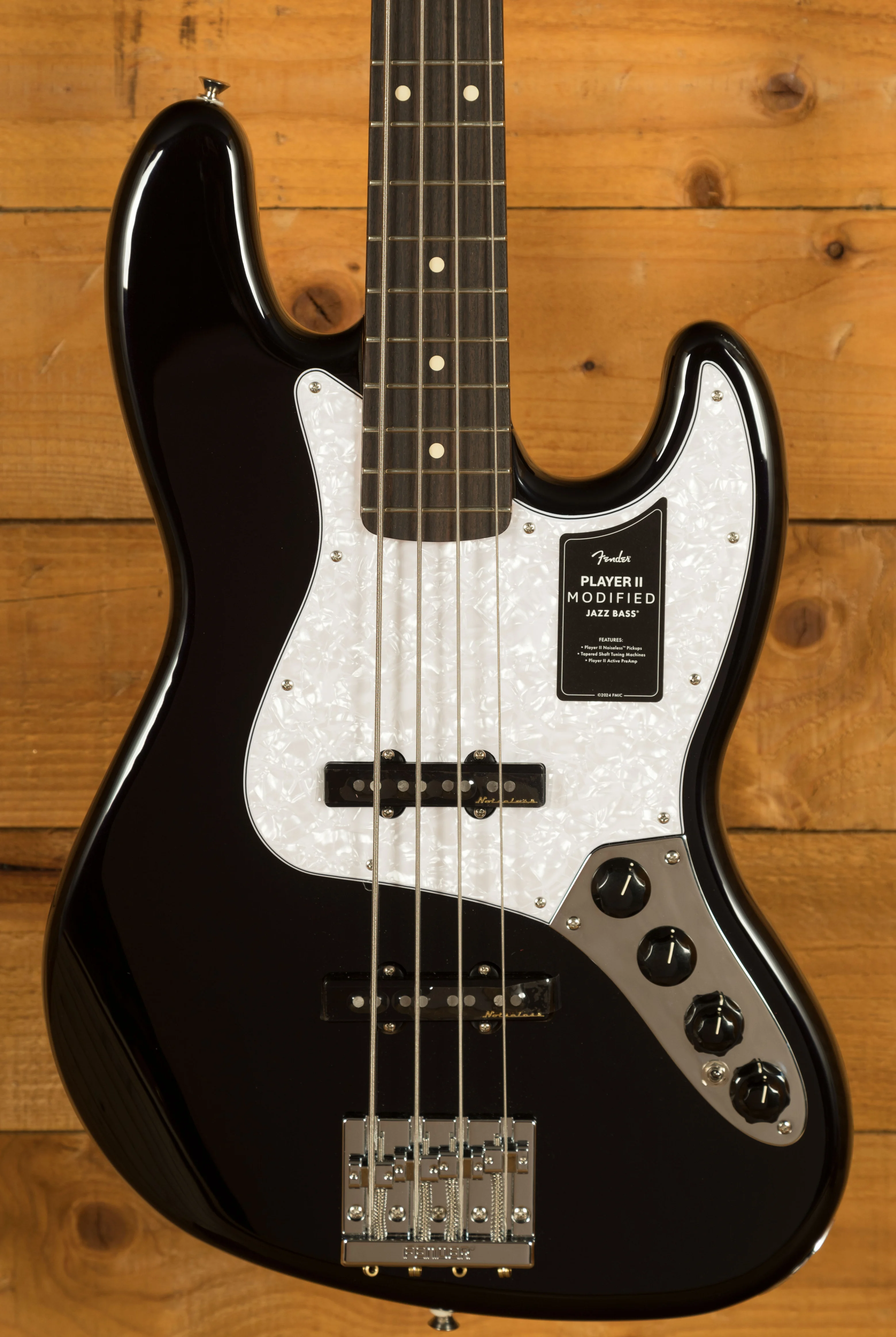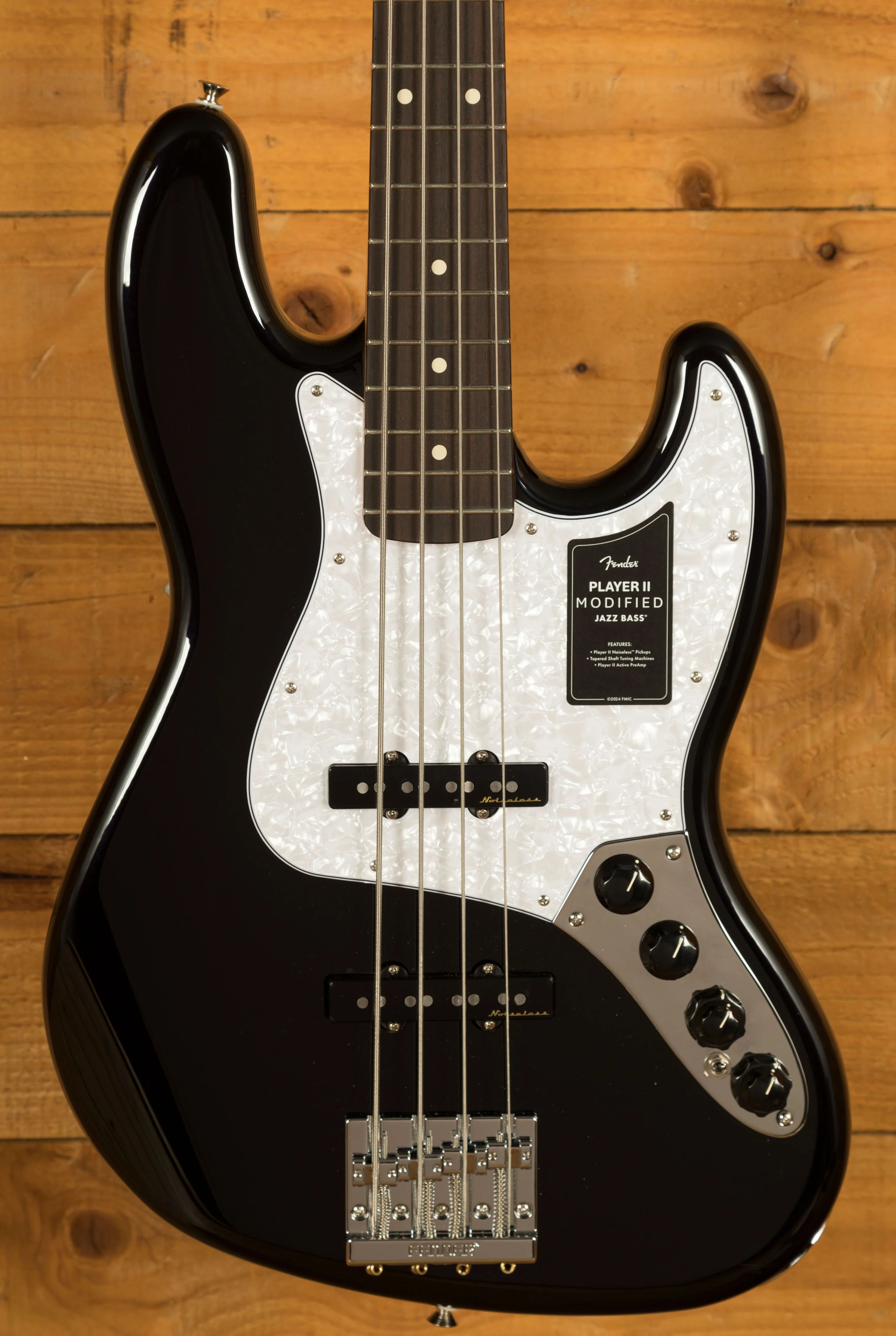 The Player II Modified Active Jazz Bass is designed for players who require a reliable and versatile instrument. The combination of the comfortable neck, noiseless pickups, and flexible preamp system makes it suitable for a wide range of musical applications. The robust hardware, including the HiMass bridge and tapered-shaft tuners, ensures that the bass remains stable and reliable, even during demanding performances.