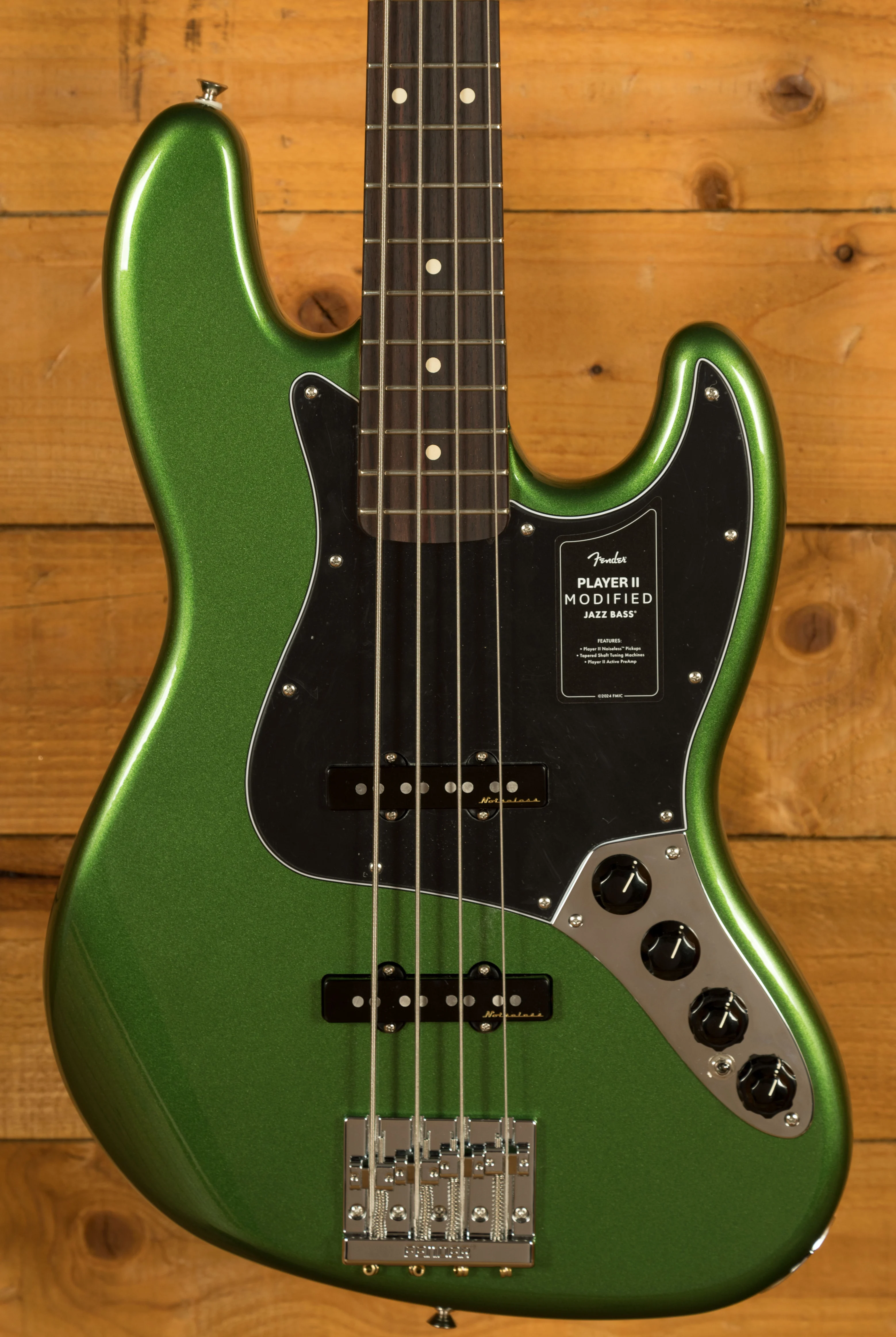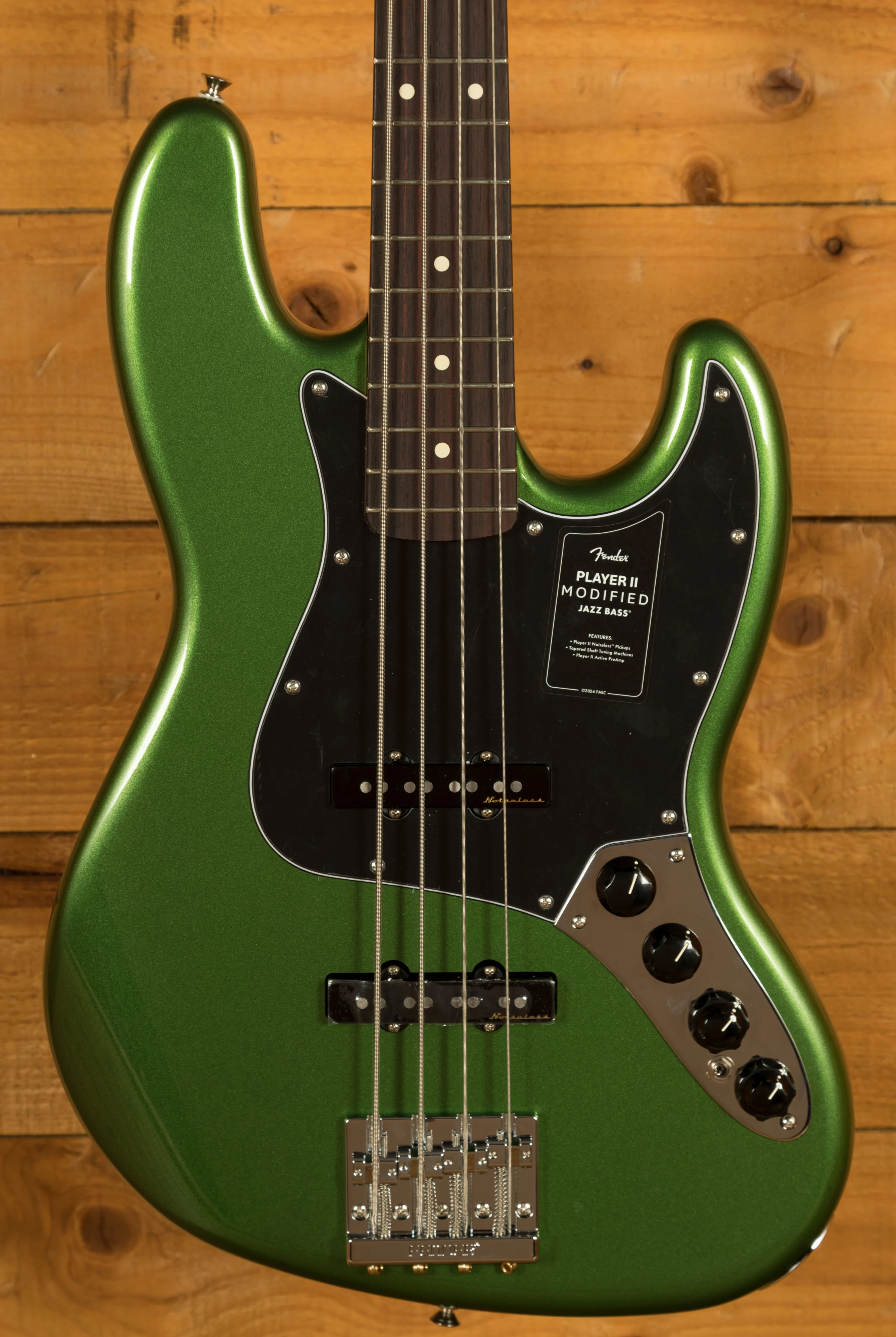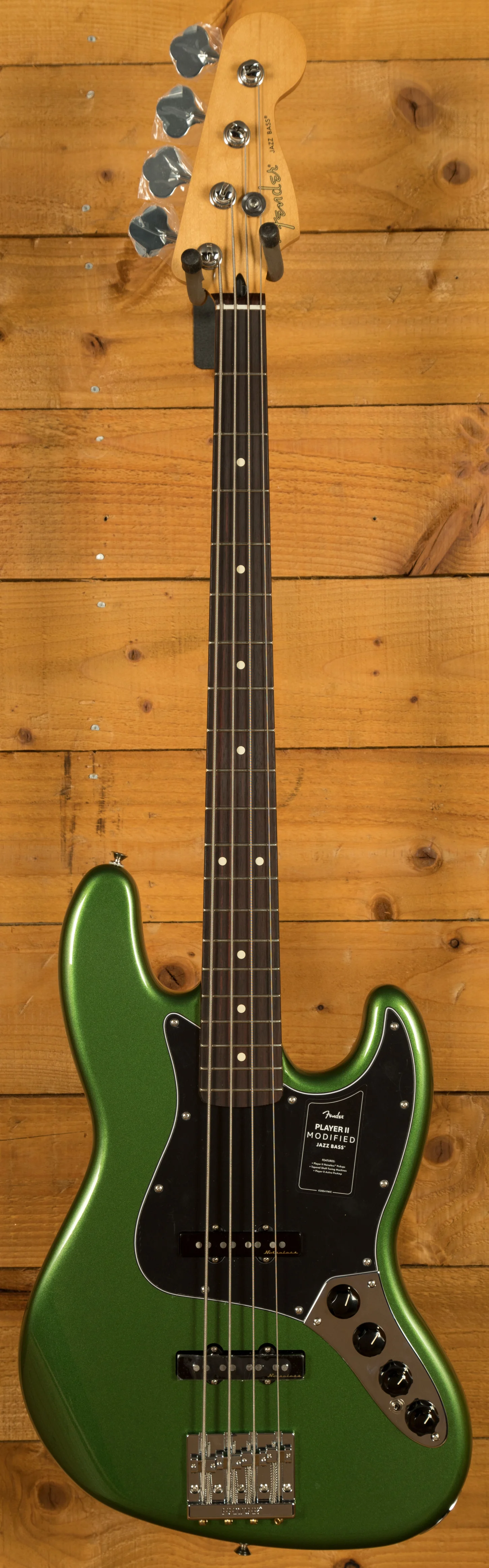 The Player II Modified Active Jazz Bass is designed for players who require a reliable and versatile instrument. The combination of the comfortable neck, noiseless pickups, and flexible preamp system makes it suitable for a wide range of musical applications. The robust hardware, including the HiMass bridge and tapered-shaft tuners, ensures that the bass remains stable and reliable, even during demanding performances.