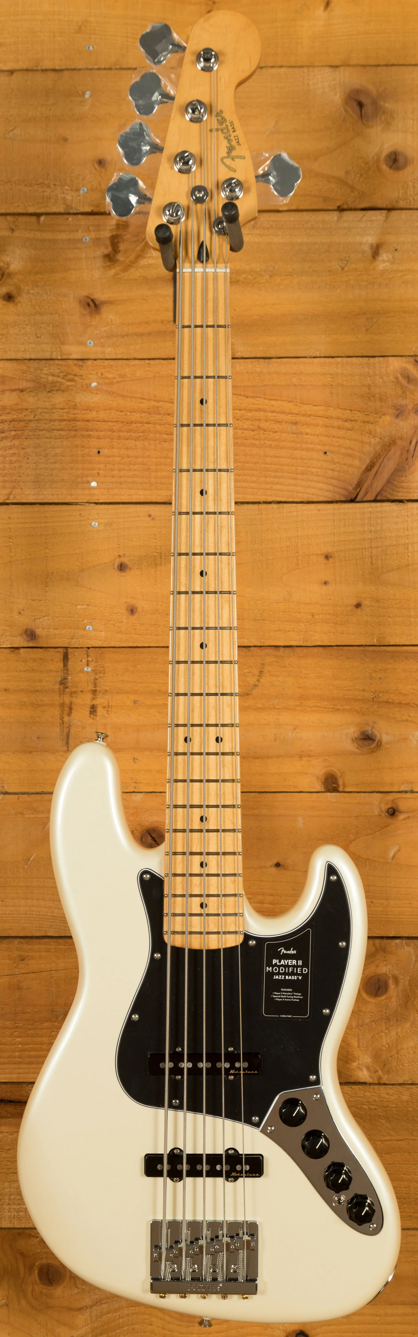 The Fender Player II Modified Active Jazz Bass V is designed for the modern bassist seeking a reliable and versatile instrument. This bass features a comfortable Modern "C" neck profile, finished with a satin urethane coating, allowing for smooth and efficient playability. The 9.5-inch radius maple fingerboard includes rolled edges and 20 medium jumbo frets, contributing to a comfortable playing experience.