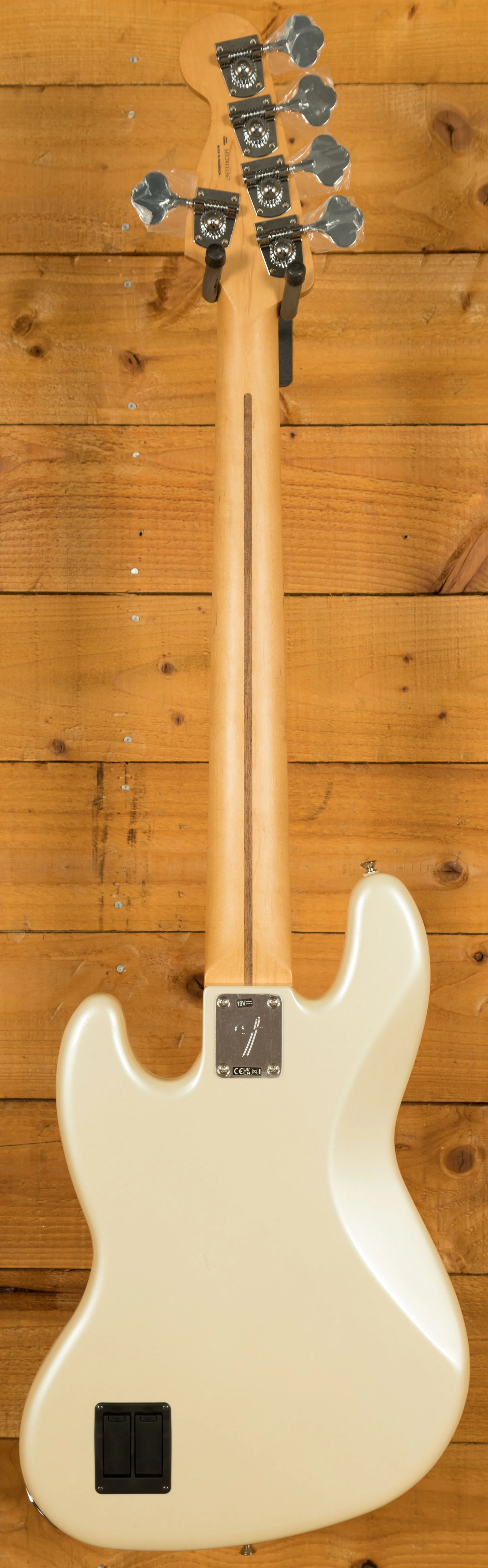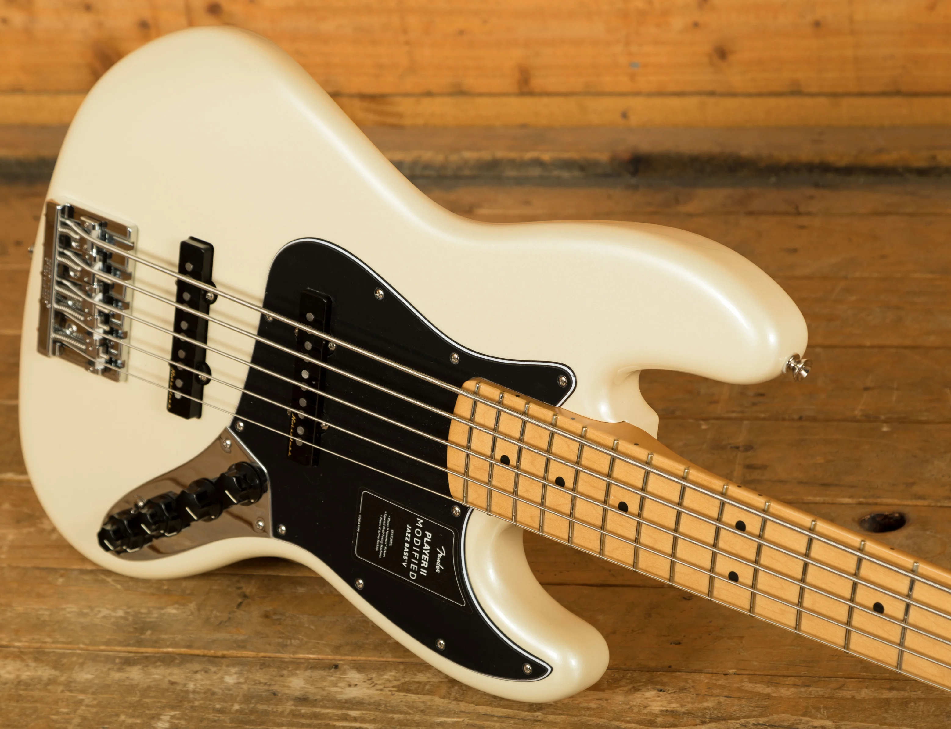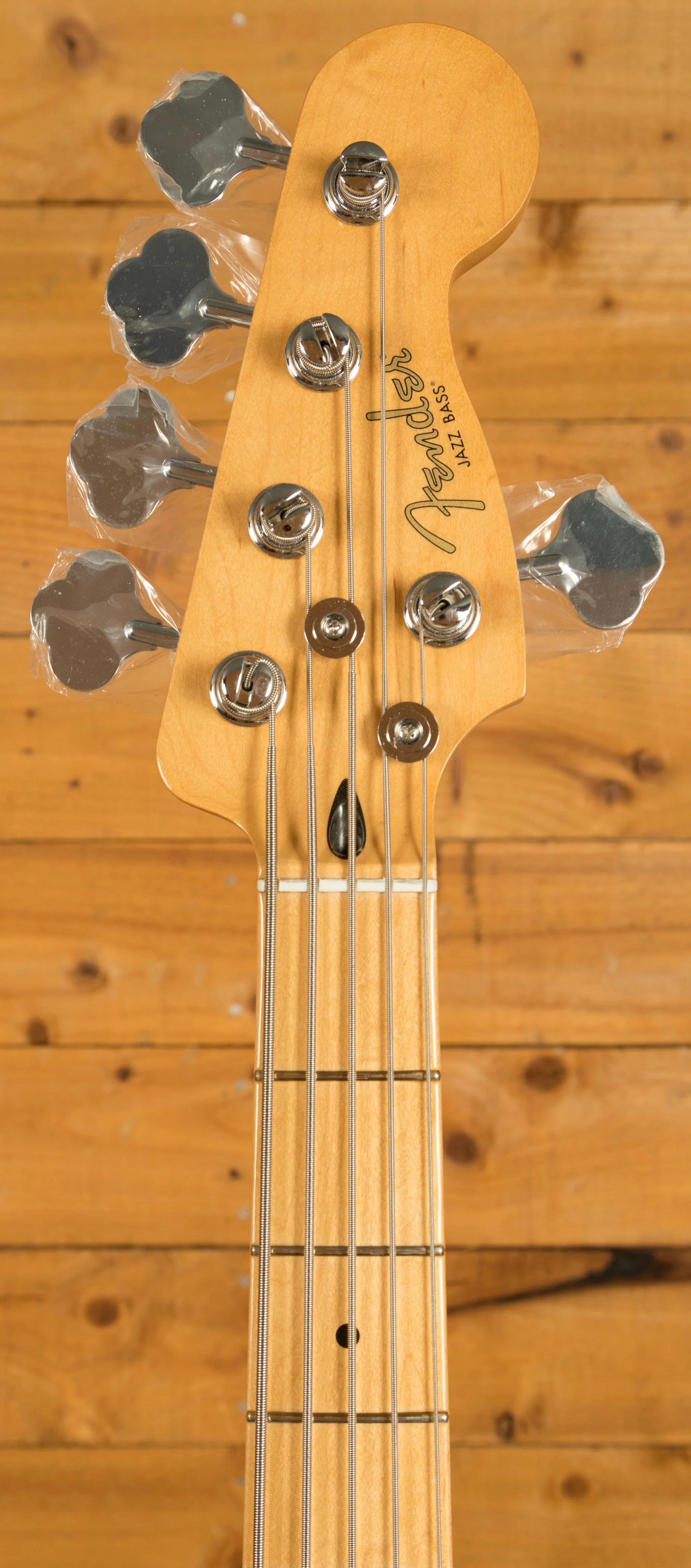 The body, constructed from alder, delivers the classic Fender tonal characteristics. The instrument is equipped with Player II noiseless pickups, designed to produce the traditional Jazz Bass growl while minimising unwanted noise. These pickups are paired with a newly designed active preamp, operating at 18 volts, which features a passive tone control and a 3-band EQ. The EQ allows for precise tonal adjustments, with a refined mid-Q and centre frequency.