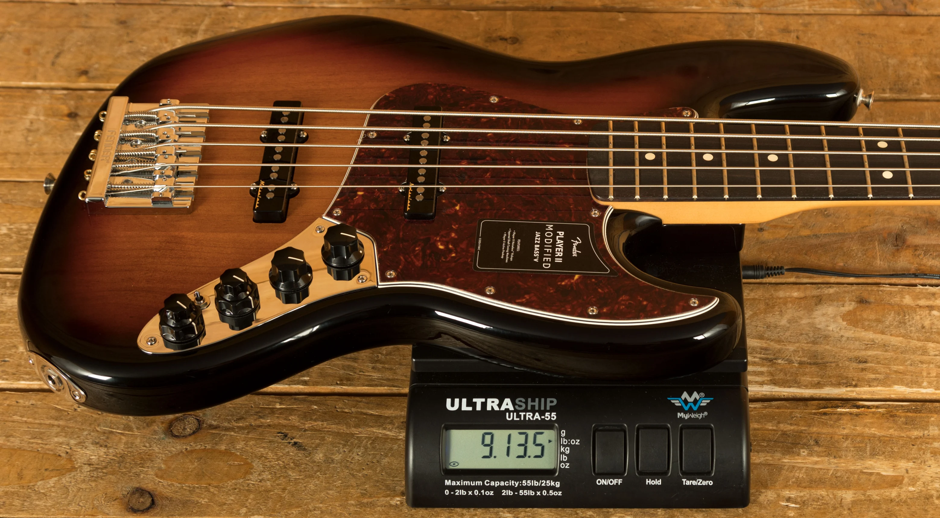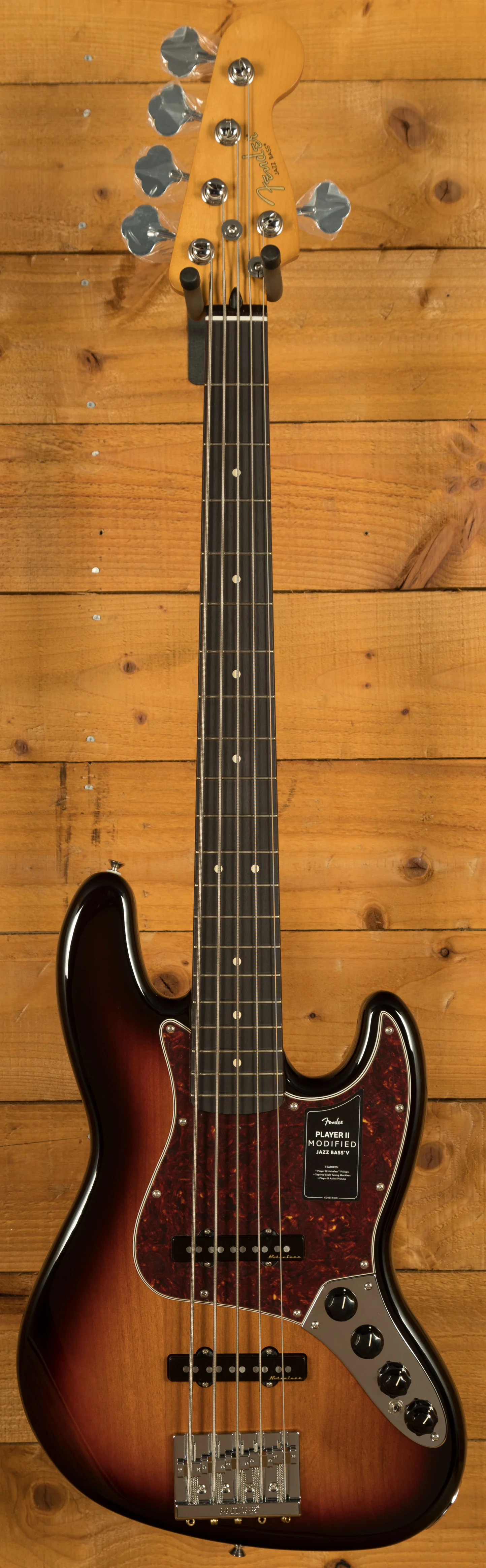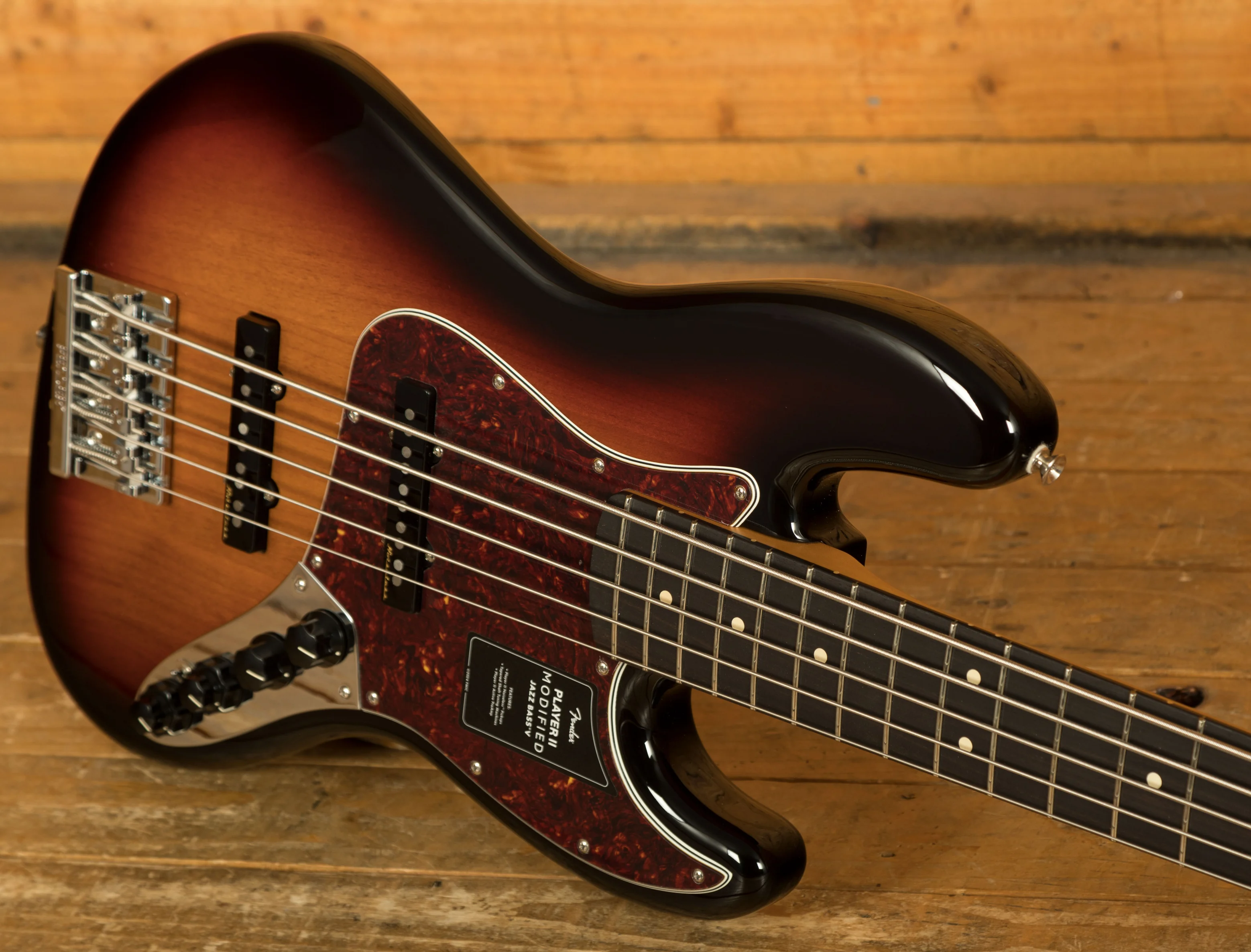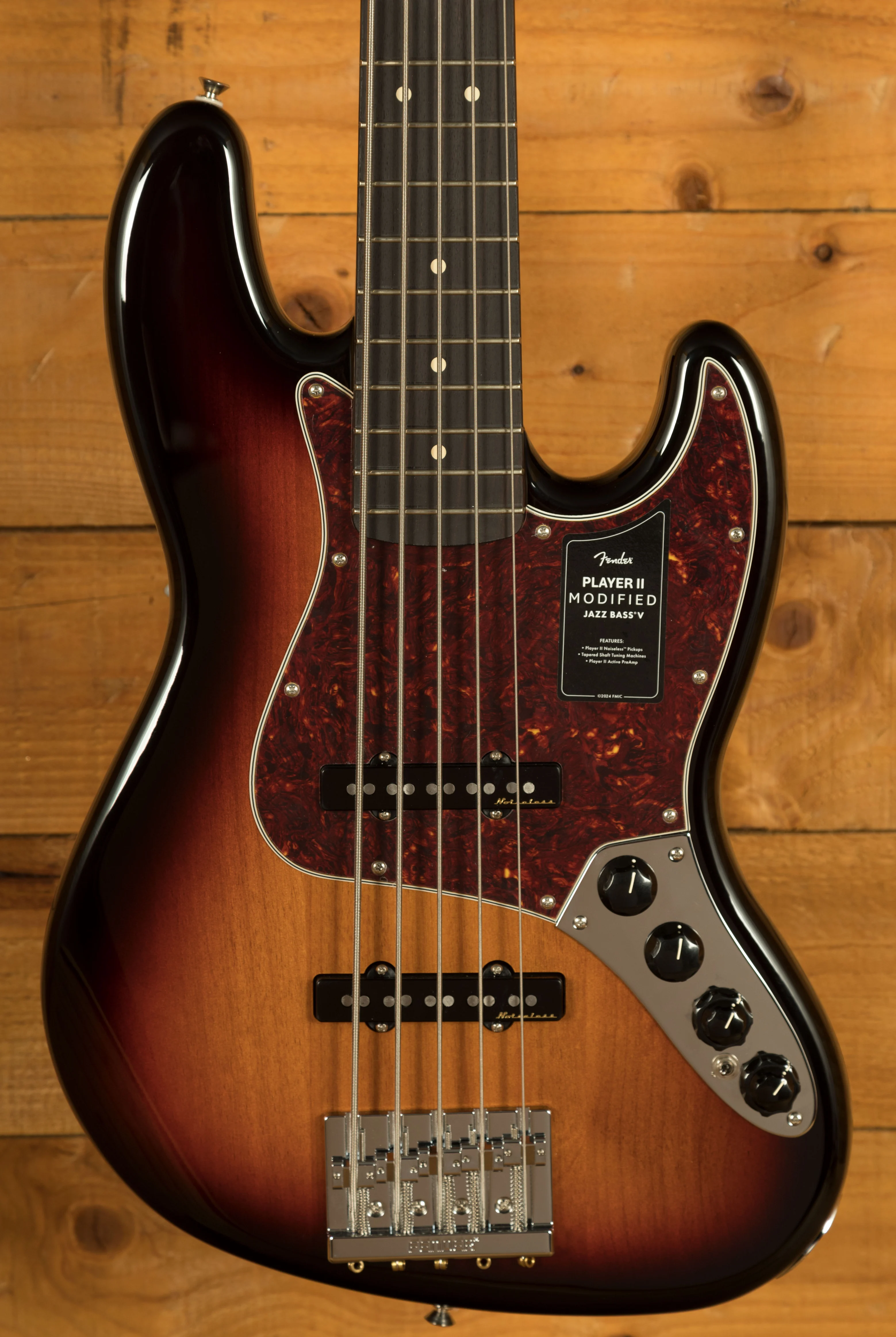 The Fender Player II Modified Active Jazz Bass V is designed for the modern bassist seeking a reliable and versatile instrument. This bass features a comfortable Modern "C" neck profile, finished with a satin urethane coating, allowing for smooth and efficient playability. The 9.5-inch radius rosewood fingerboard includes rolled edges and 20 medium jumbo frets, contributing to a comfortable playing experience.
