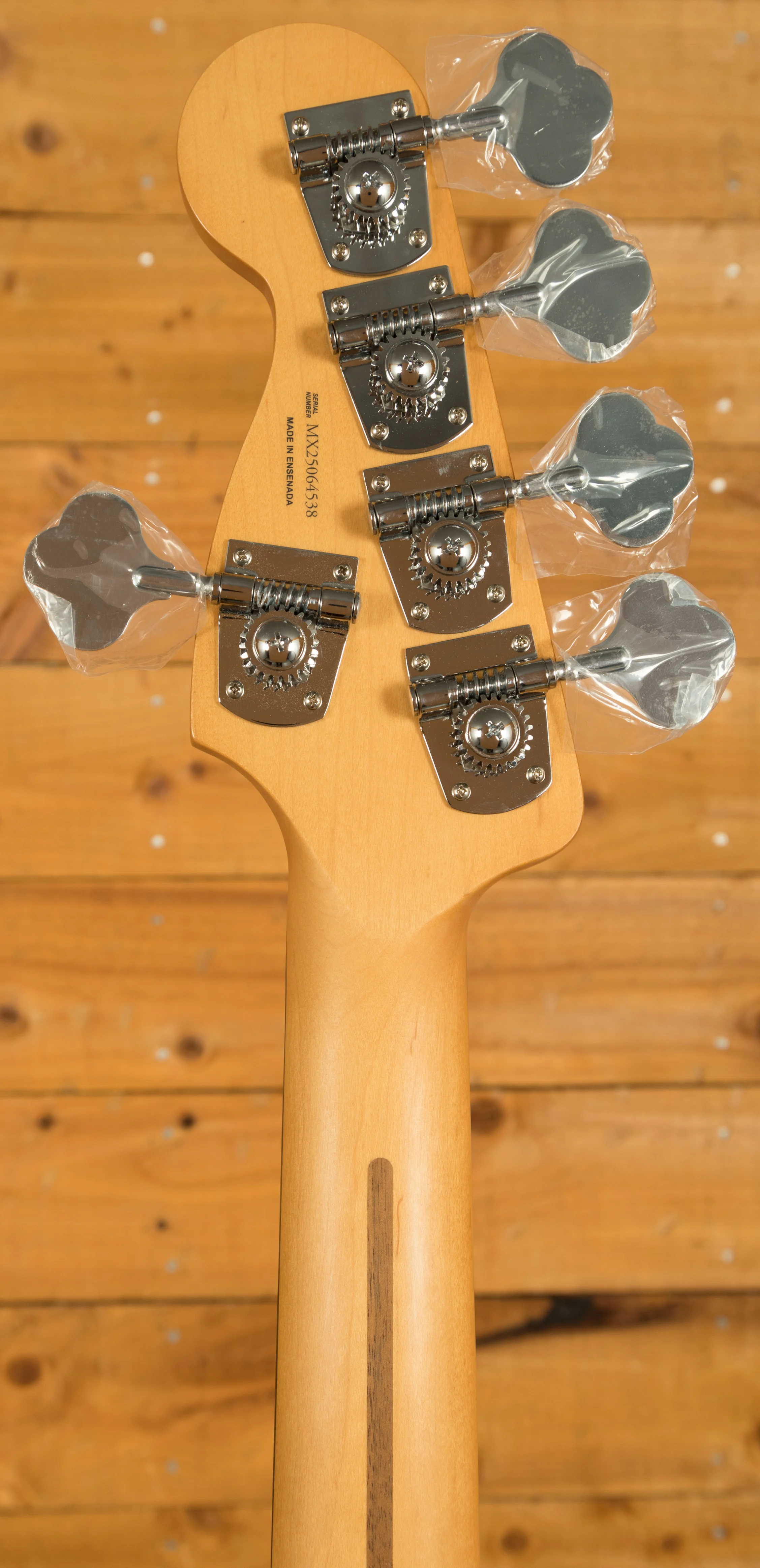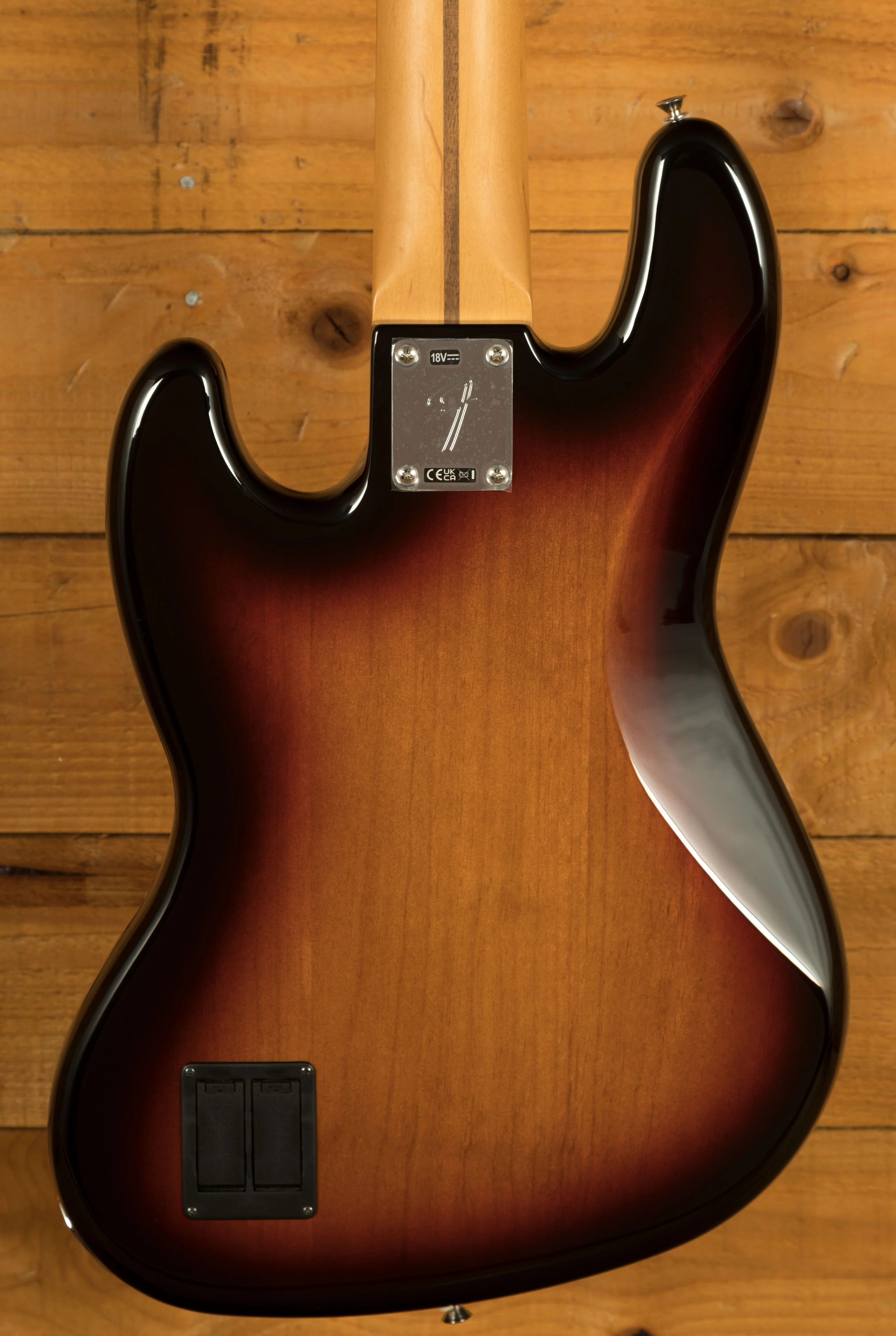 The body, constructed from alder, delivers the classic Fender tonal characteristics. The instrument is equipped with Player II noiseless pickups, designed to produce the traditional Jazz Bass growl while minimising unwanted noise. These pickups are paired with a newly designed active preamp, operating at 18 volts, which features a passive tone control and a 3-band EQ. The EQ allows for precise tonal adjustments, with a refined mid-Q and centre frequency.