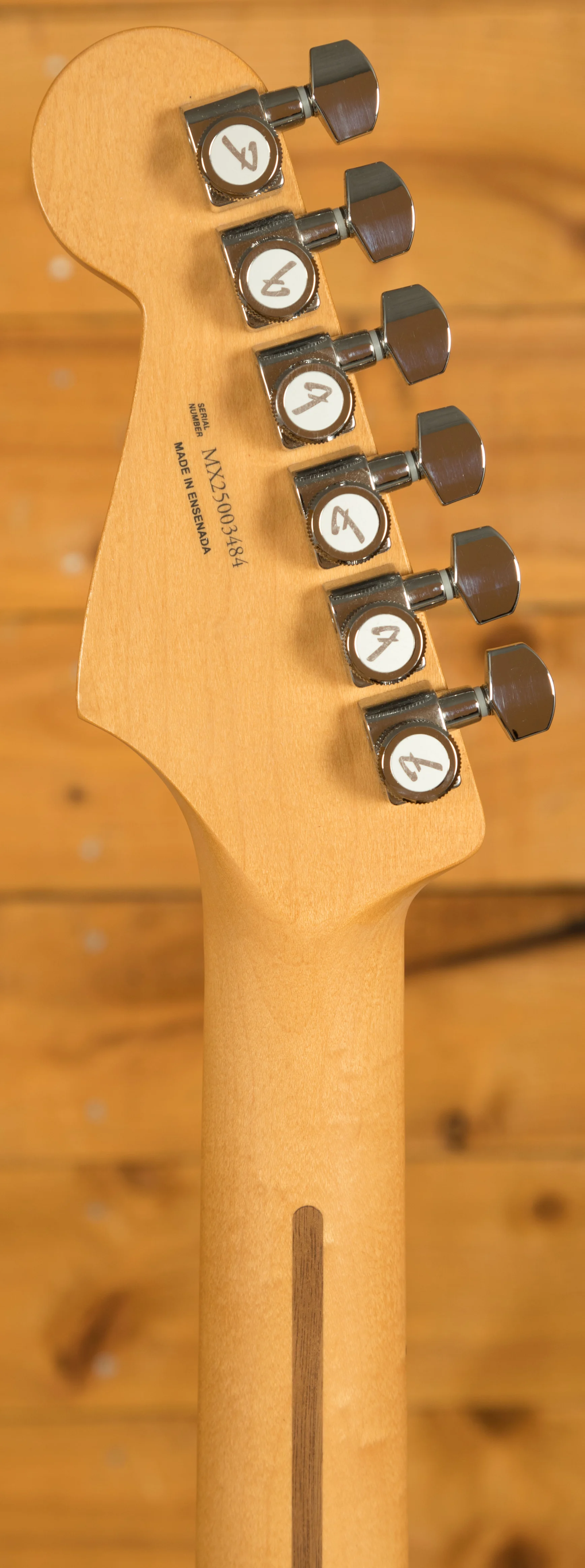 The body of the guitar is made of alder, a wood known for its balanced tonal characteristics. It is available in various finishes. The Player II Modified Humbucker in the bridge position is designed to deliver a high output signal with clear articulation. The neck and middle positions feature noiseless pickups, which aim to produce the classic Stratocaster tone while minimising unwanted noise. A push-pull switch on the second tone control allows the player to split the humbucker, providing single-coil tones for added tonal variety. A treble bleed circuit is incorporated to maintain high-end frequencies when the volume is reduced.