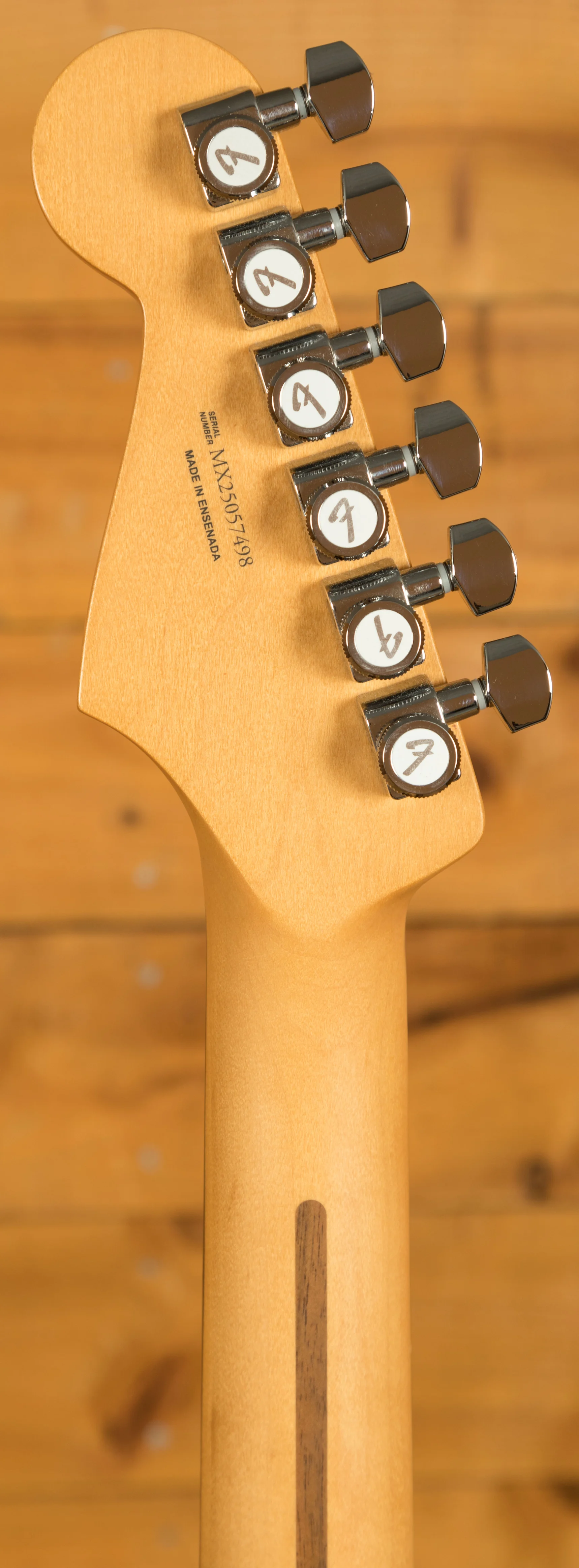 The Fender Player II Modified Stratocaster is designed for the modern guitarist seeking a blend of classic Stratocaster tone and contemporary playability. This guitar features a Modern "C" neck profile with a 9.5-inch radius rosewood fingerboard and rolled edges for enhanced comfort. The satin urethane finish on the neck's back facilitates smooth and fast playing. The 22 medium jumbo frets contribute to comfortable bending and accurate intonation.