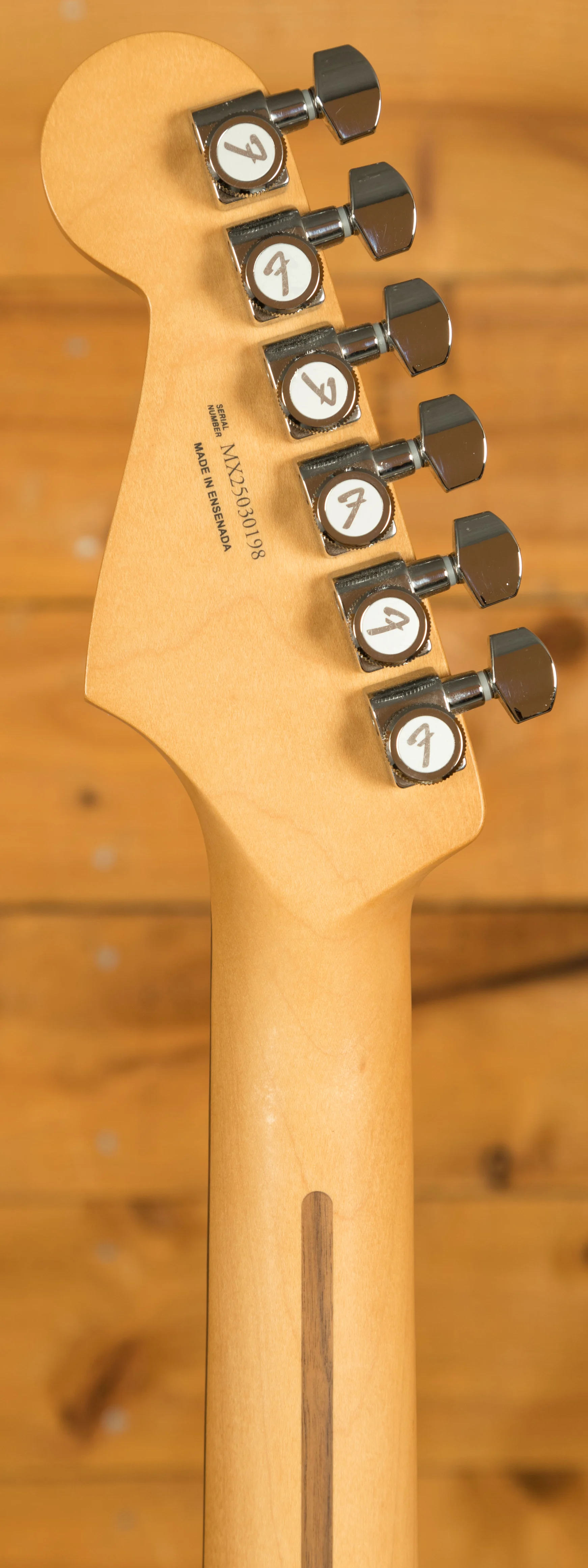 The Fender Player II Modified Stratocaster is designed for the modern guitarist seeking a blend of classic Stratocaster tone and contemporary playability. This guitar features a Modern "C" neck profile with a 9.5-inch radius rosewood fingerboard and rolled edges for enhanced comfort. The satin urethane finish on the neck's back facilitates smooth and fast playing. The 22 medium jumbo frets contribute to comfortable bending and accurate intonation.
