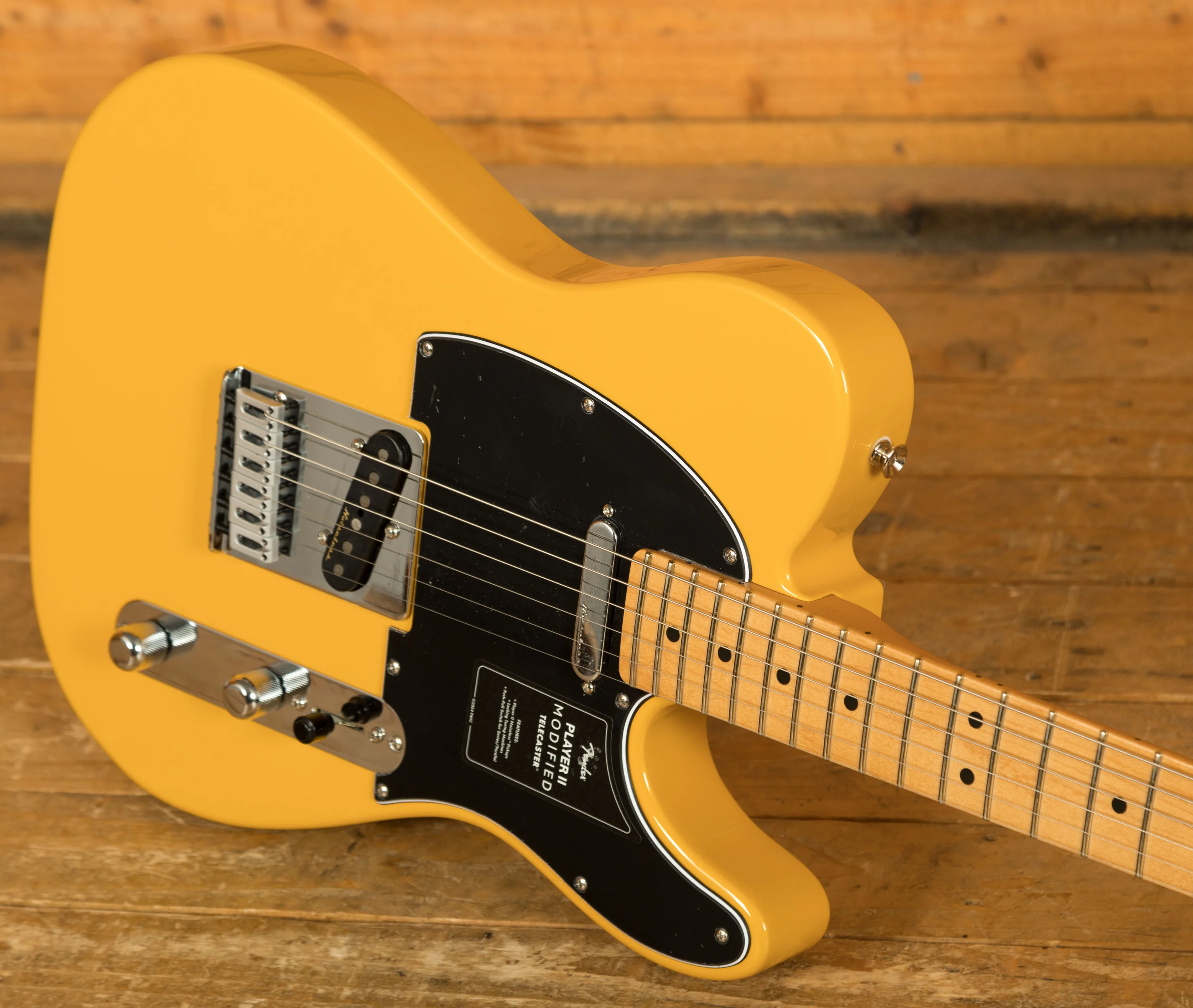 The Fender Player II Modified Telecaster is a modern take on a classic guitar design, engineered to meet the needs of contemporary players. This instrument focusses on practical upgrades that enhance playability and tonal versatility. The neck features a Modern "C" profile, designed for comfortable and efficient playing, and is finished with a satin urethane coating for a smooth feel. The 9.5-inch radius maple fingerboard includes 22 medium jumbo frets and rolled edges, contributing to a comfortable playing experience.