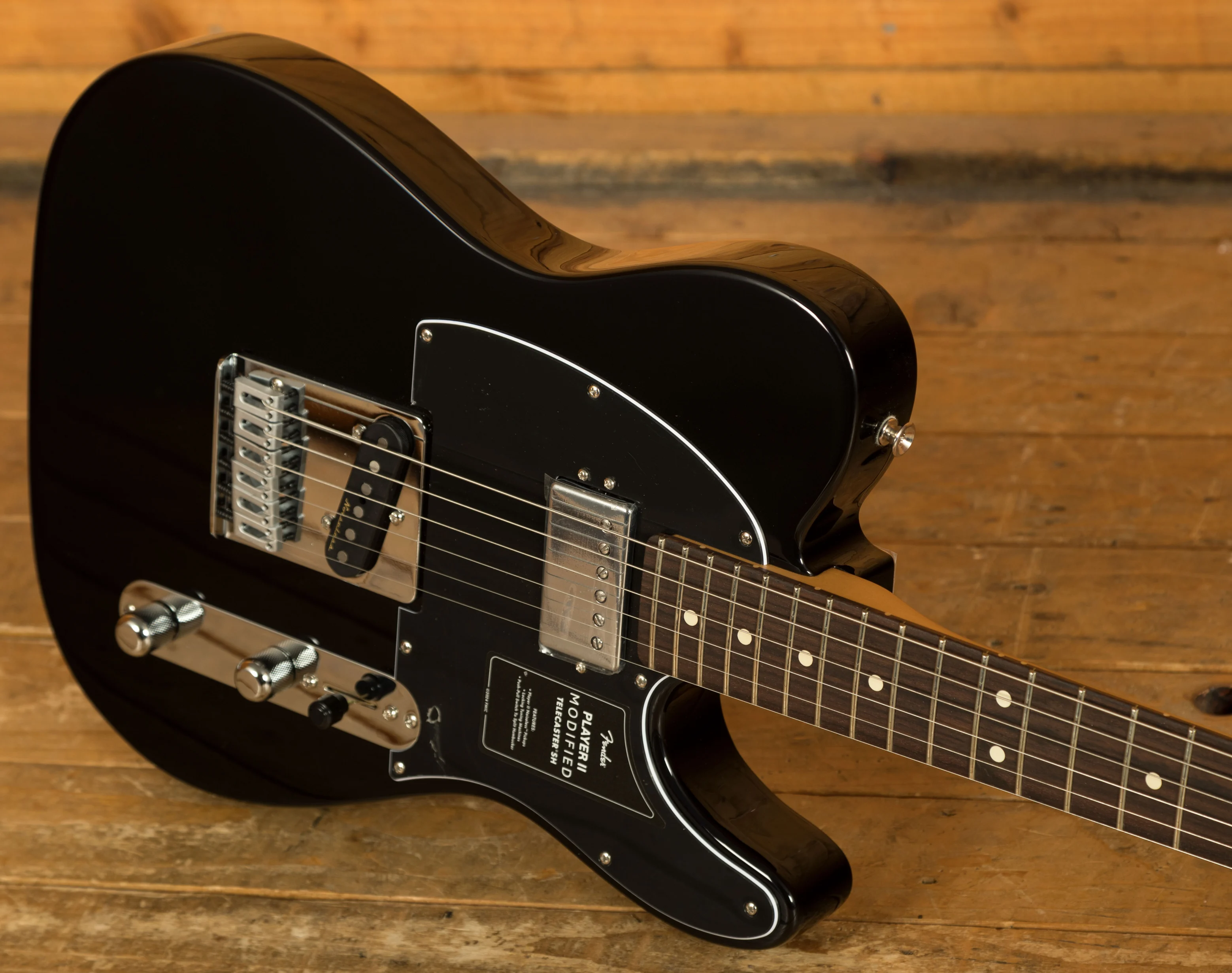 The bridge plate is designed with cutaways on the sides, allowing for greater freedom of movement, especially useful for hybrid picking techniques. This Telecaster is designed to maintain tuning stability during demanding playing styles, from steel bends to rock leads. The combination of these features makes the Player II Modified Telecaster SH a reliable and adaptable instrument for various musical genres.