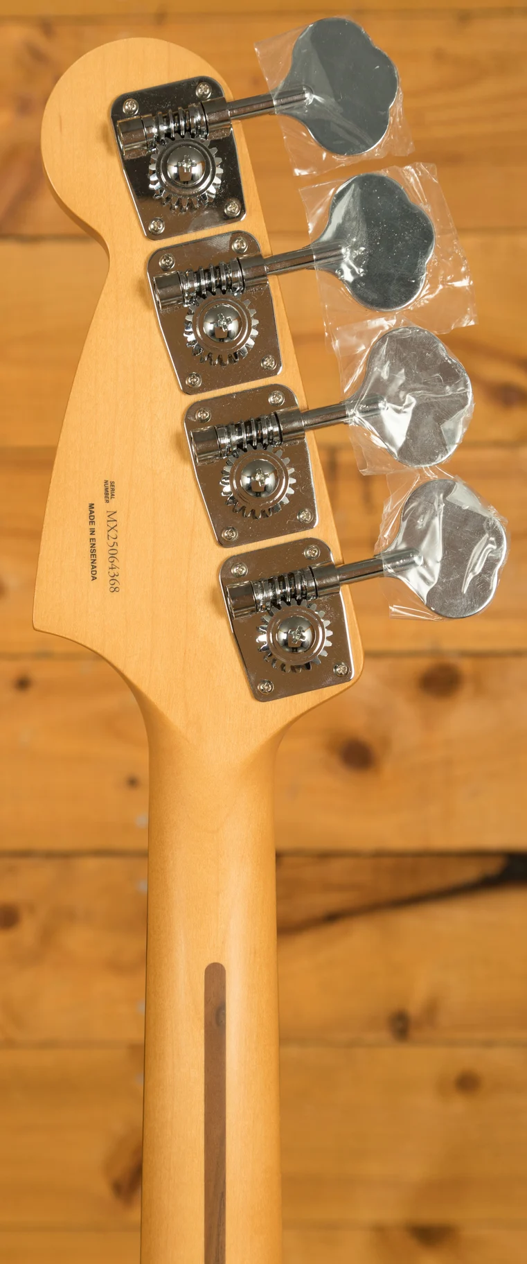 Equipped with Player Series Alnico V Split-Coil P bass and Single-Coil J bass pickups, this bass offers a wide range of sounds from sweet highs to growling mids and deep lows. The 3-way toggle switch allows easy access to these tonal variations, while the adjustable 4-saddle bridge and single-groove steel saddles ensure precise tuning stability. The open-gear tuners combine vintage aesthetics with modern performance for reliable tuning.