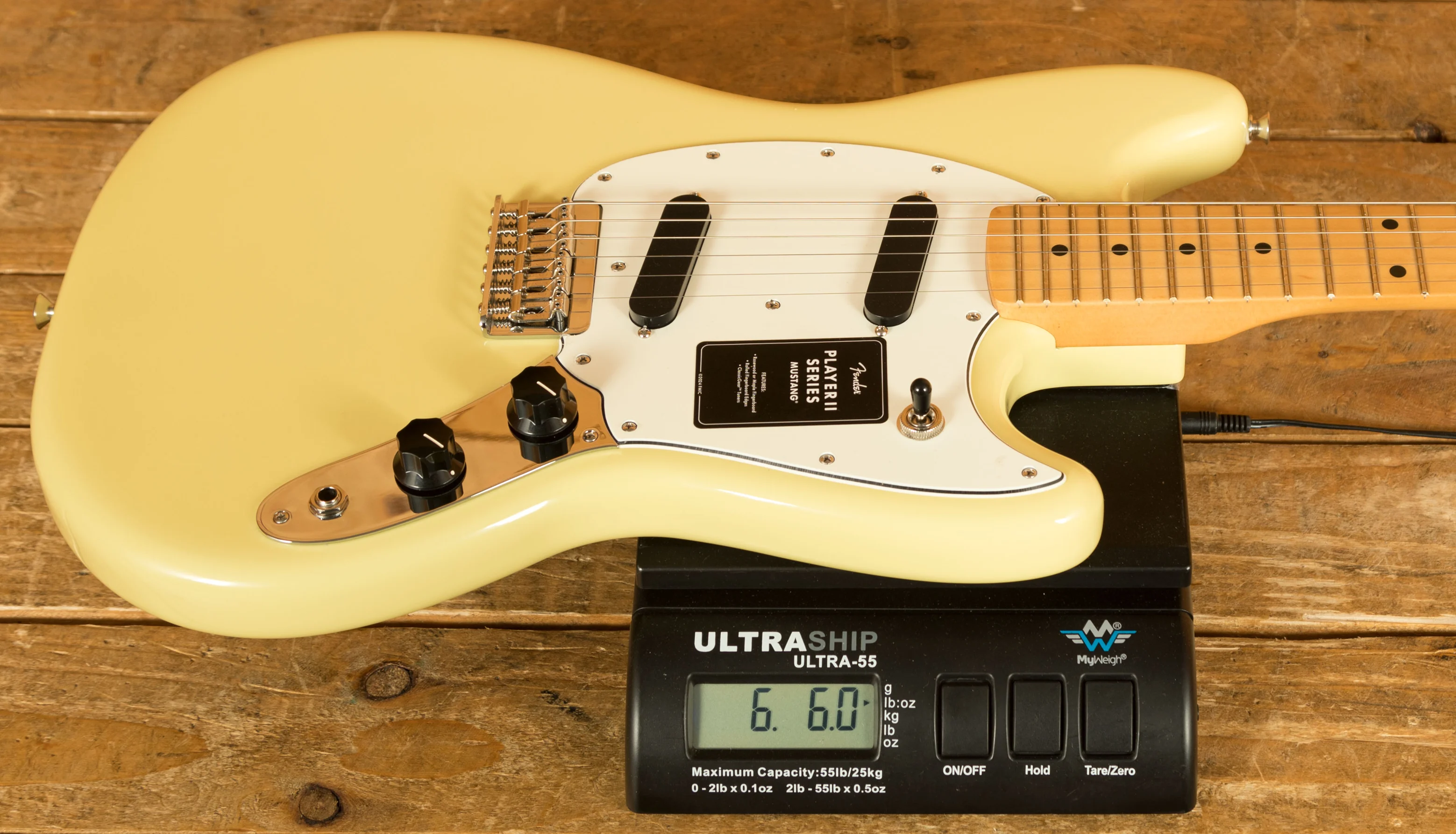 The Player II Mustang combines looks, tone, and feel in a way that only Fender can. Its authentic alder body provides the foundation for classic Fender tone, while the Modern "C" neck profile and 9.5" radius fingerboard offer superior comfort and playability. The Player Series pickups provide a modern take on the classic Fender sound, adding more power and bite to your playing.