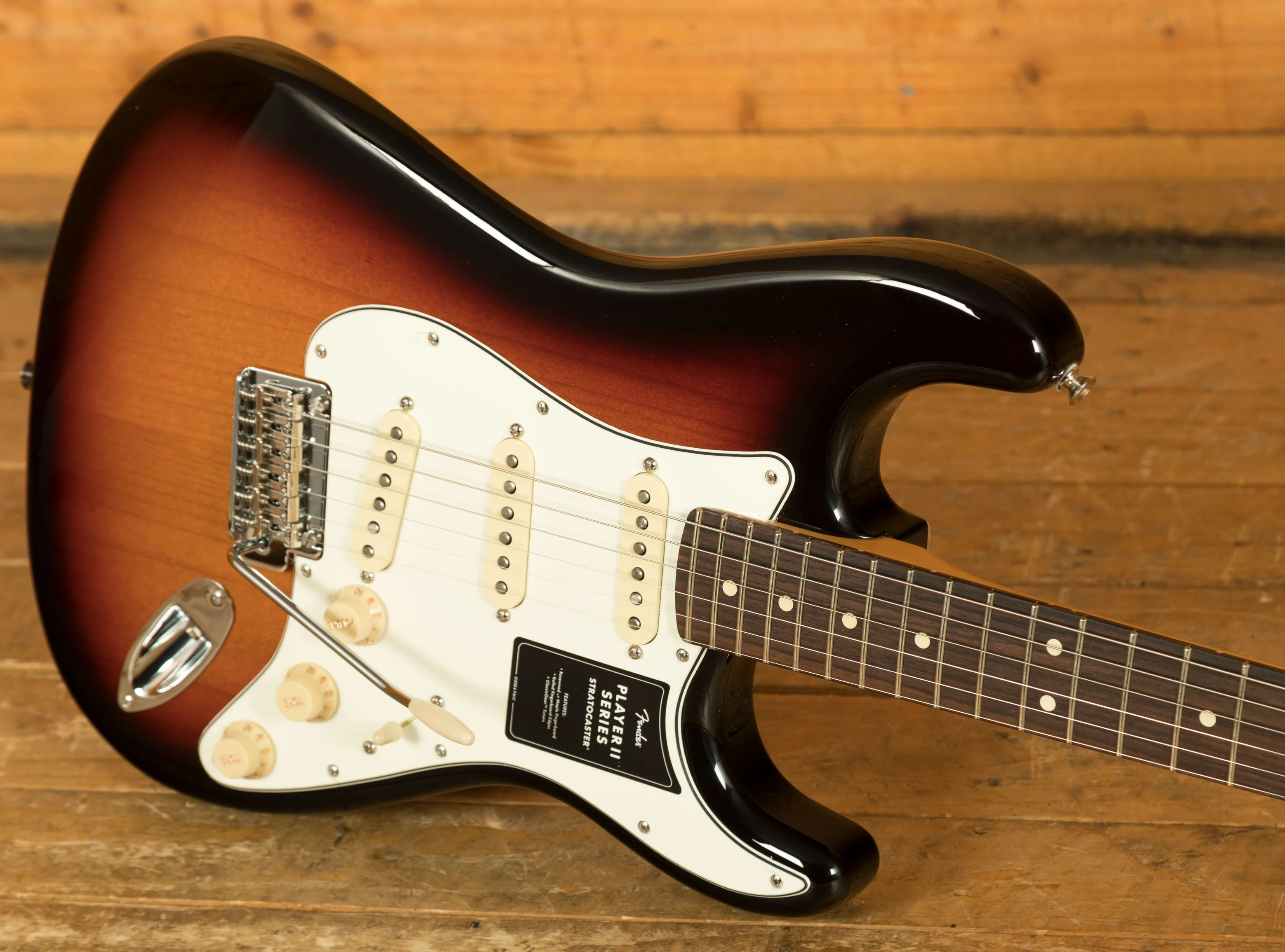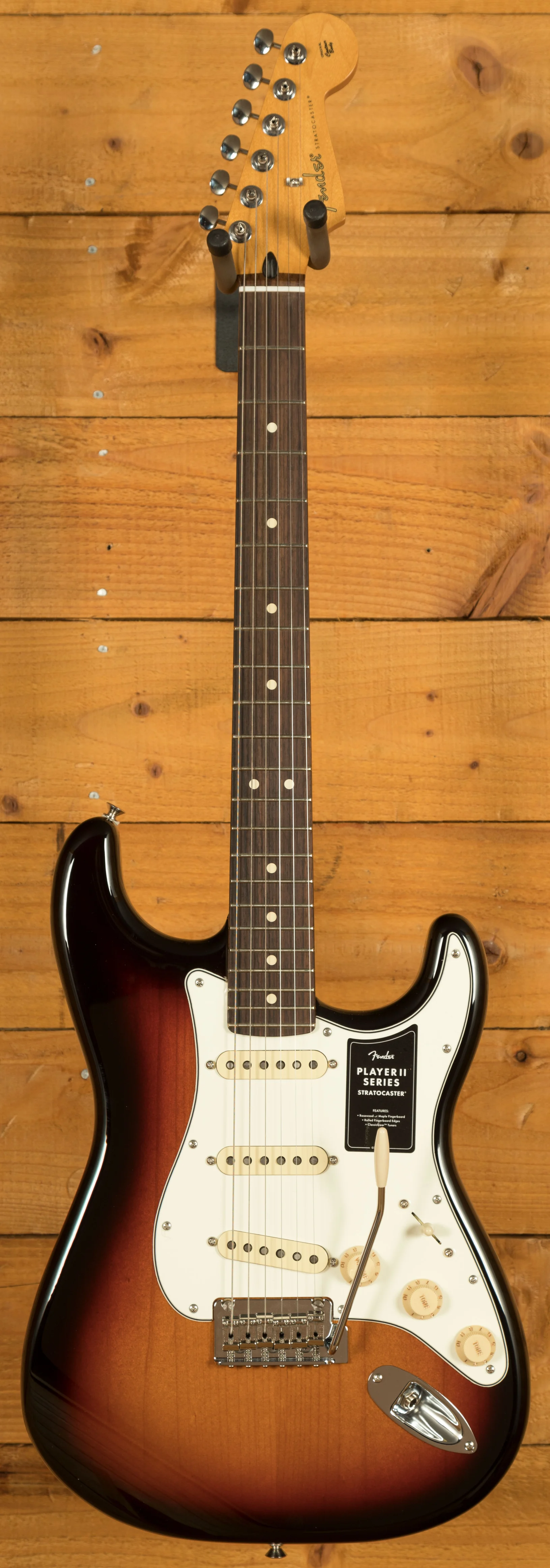 At its core, the Player II Stratocaster features a Modern "C" neck profile with a silky satin urethane finish, ensuring a smooth and comfortable playing experience. The 9.5" radius fingerboard with rolled edges promotes effortless string bending and fluid leads, offering a slightly worn-in feel right out of the box.