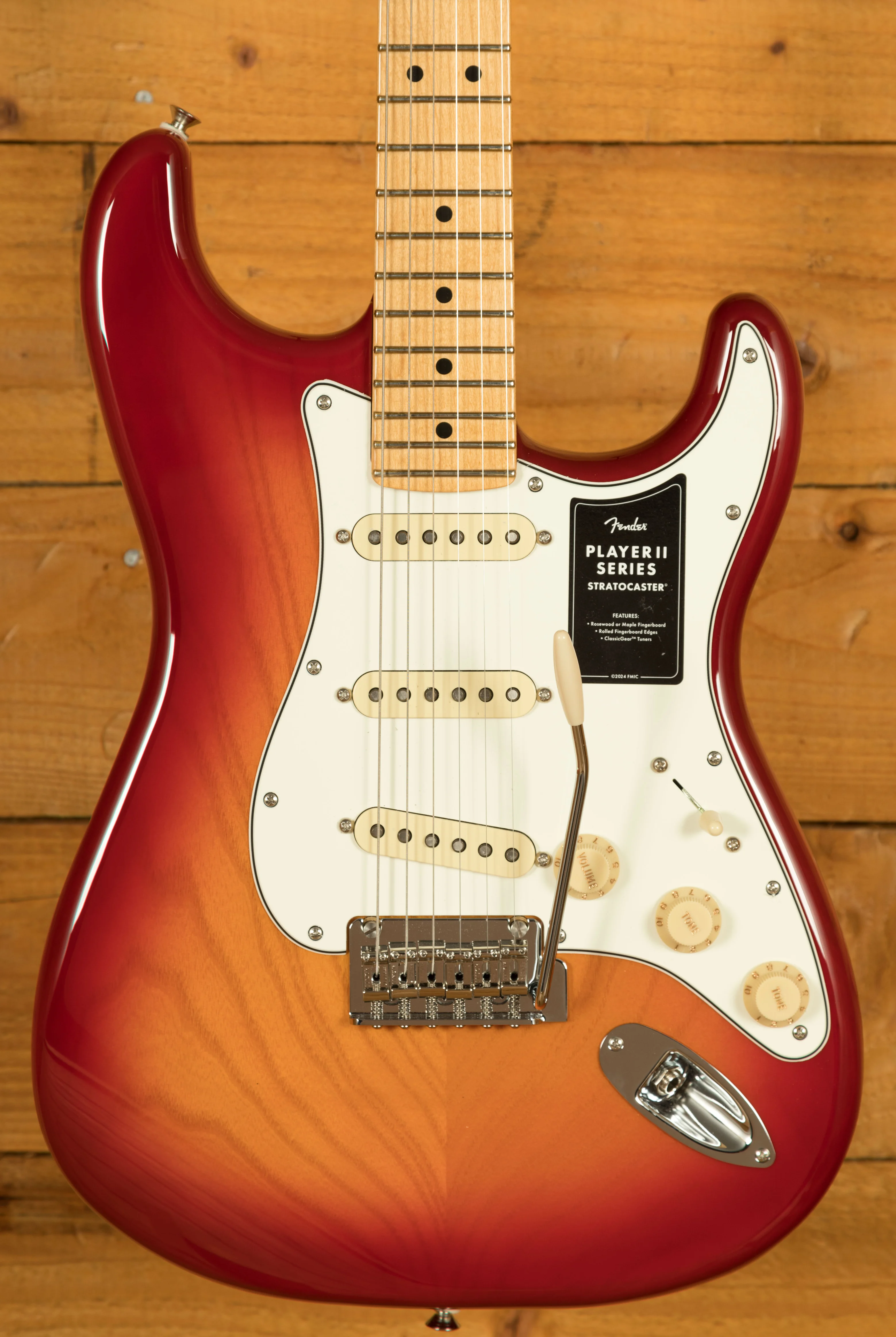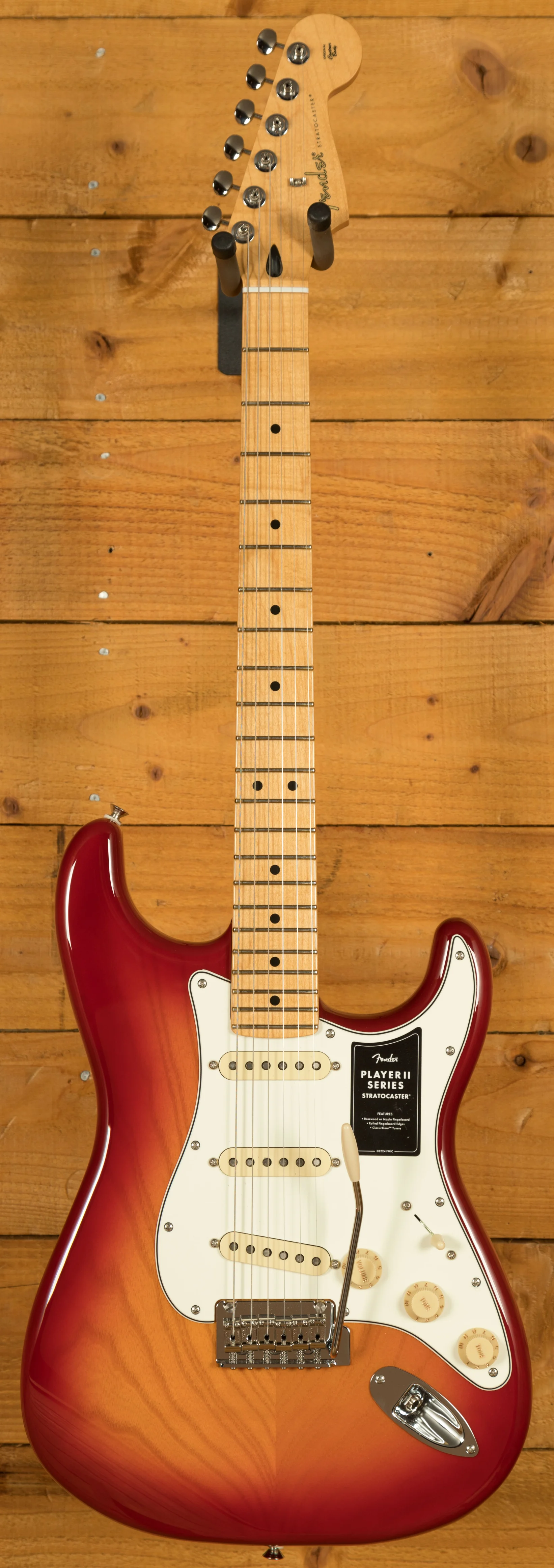 At its core, the Player II Stratocaster features a Modern "C" neck profile with a silky satin urethane finish, ensuring a smooth and comfortable playing experience. The 9.5" radius fingerboard with rolled edges promotes effortless string bending and fluid leads, offering a slightly worn-in feel right out of the box.