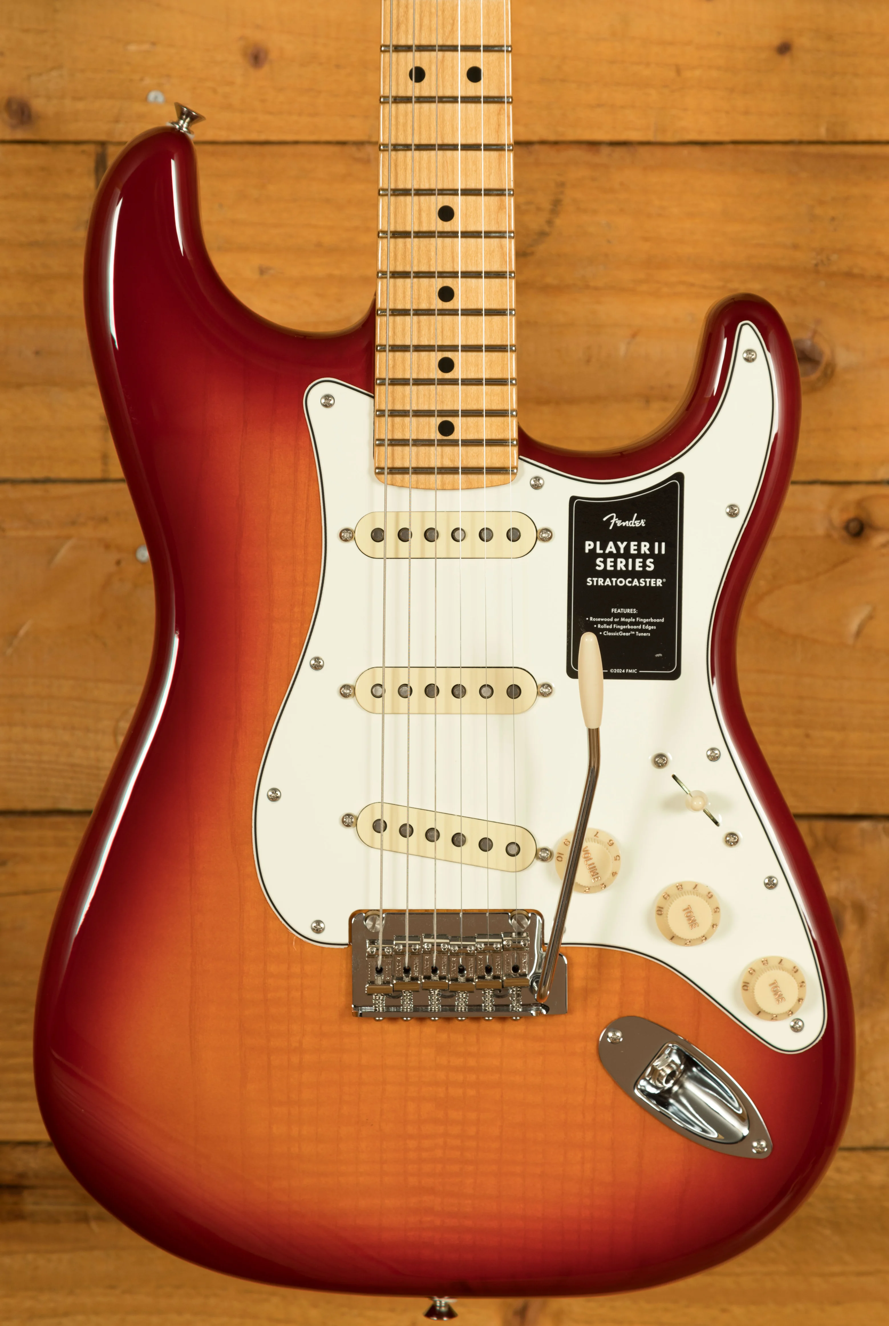 For those who value expressive performance, the Player II Stratocaster includes a 2-point synchronised tremolo system with bent steel saddles. This feature ensures precise tuning stability and enables bold vibrato and smooth dive bombs, empowering you to push the boundaries of your musical expression.