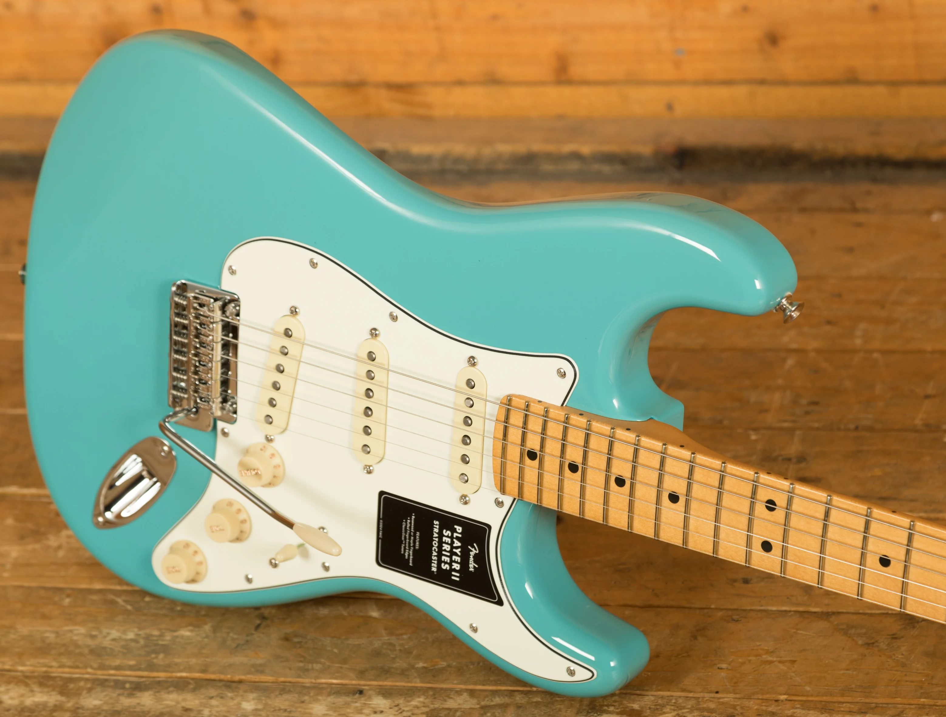 At its core, the Player II Stratocaster features a Modern "C" neck profile with a silky satin urethane finish, ensuring a smooth and comfortable playing experience. The 9.5" radius fingerboard with rolled edges promotes effortless string bending and fluid leads, offering a slightly worn-in feel right out of the box.