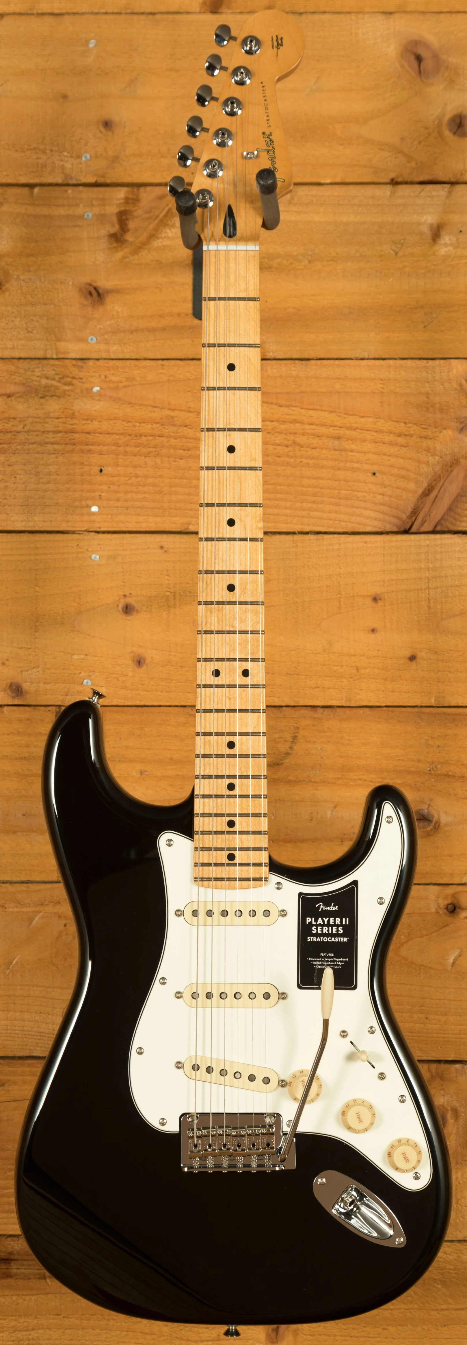 At its core, the Player II Stratocaster features a Modern "C" neck profile with a silky satin urethane finish, ensuring a smooth and comfortable playing experience. The 9.5" radius fingerboard with rolled edges promotes effortless string bending and fluid leads, offering a slightly worn-in feel right out of the box.
