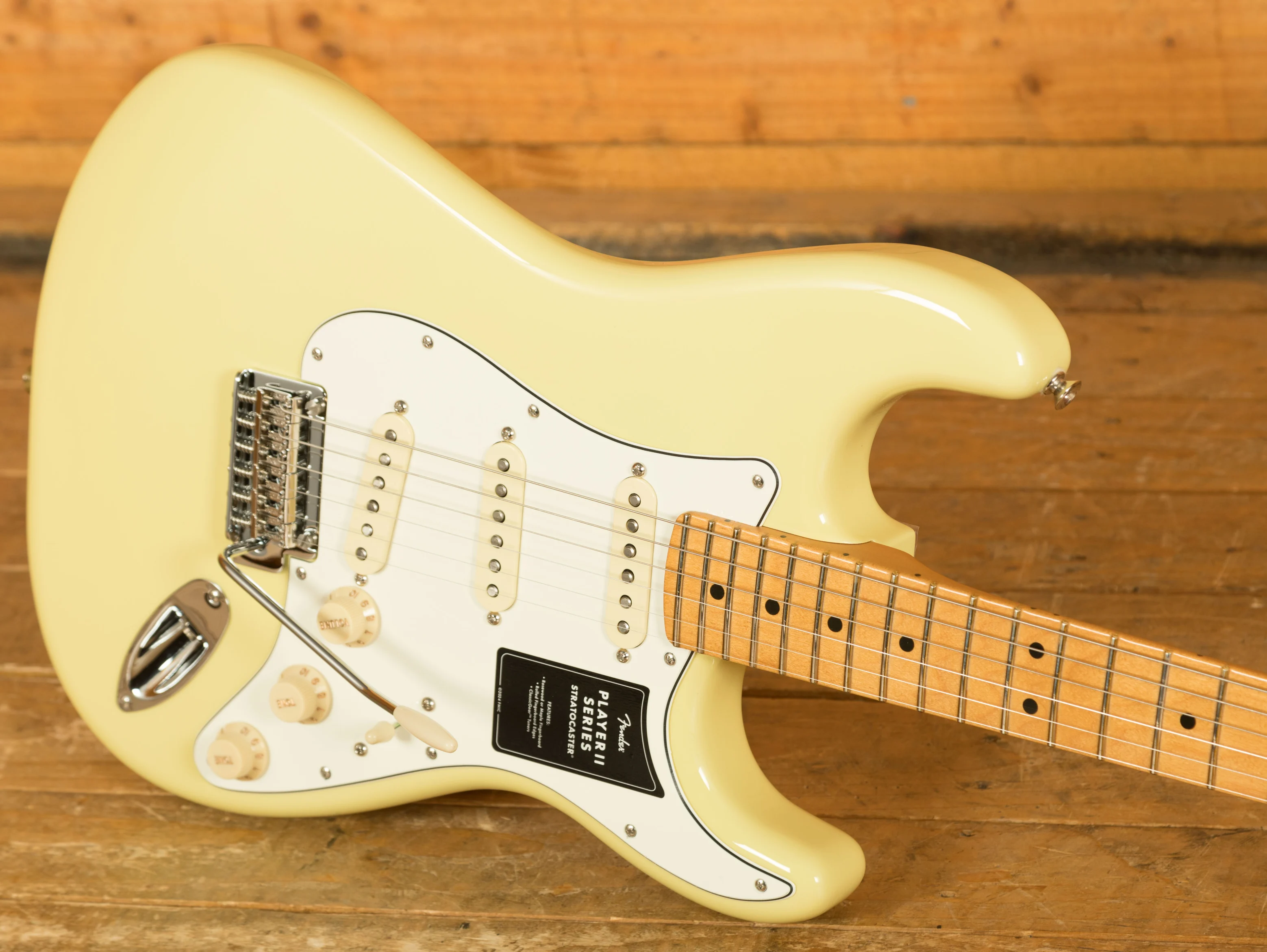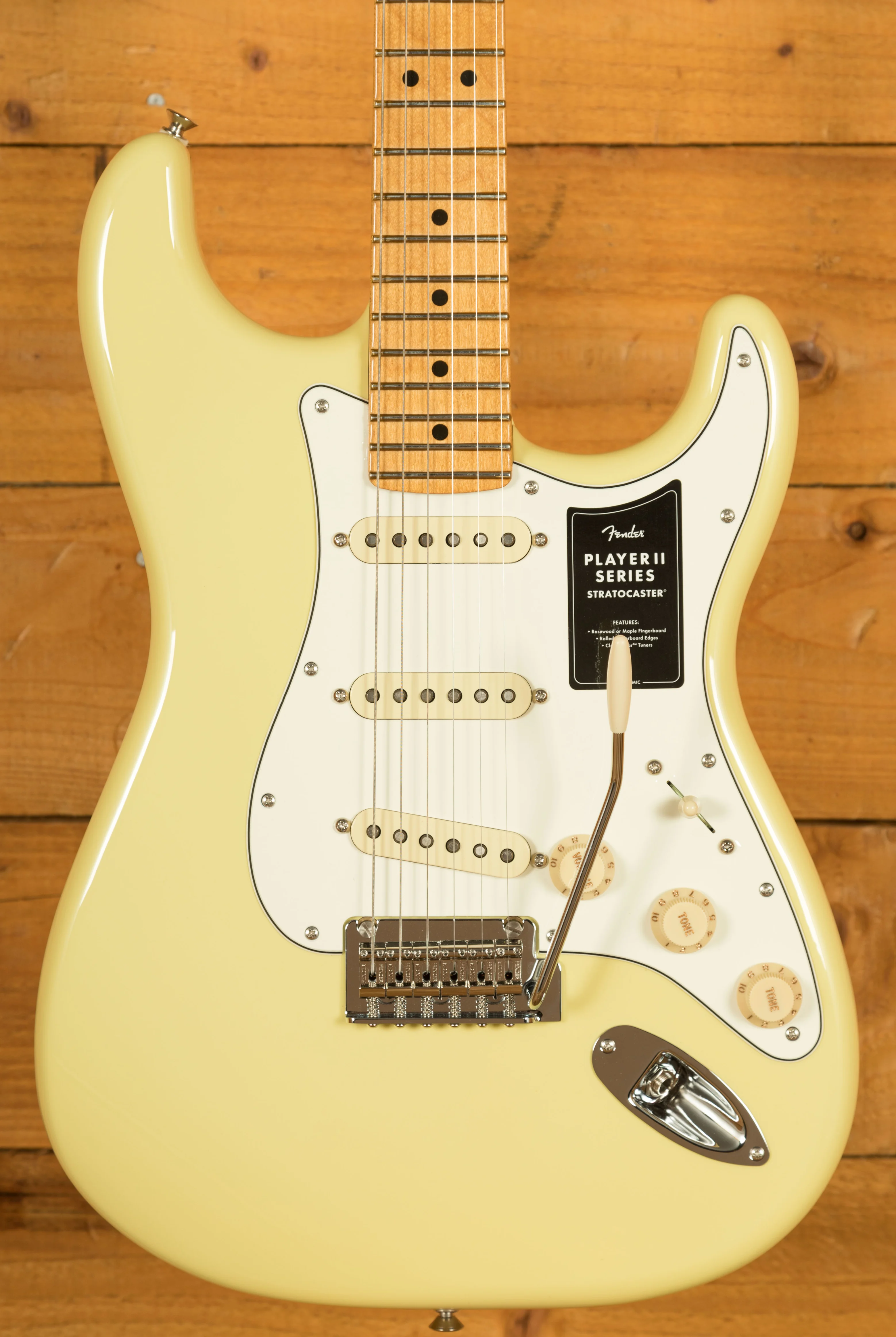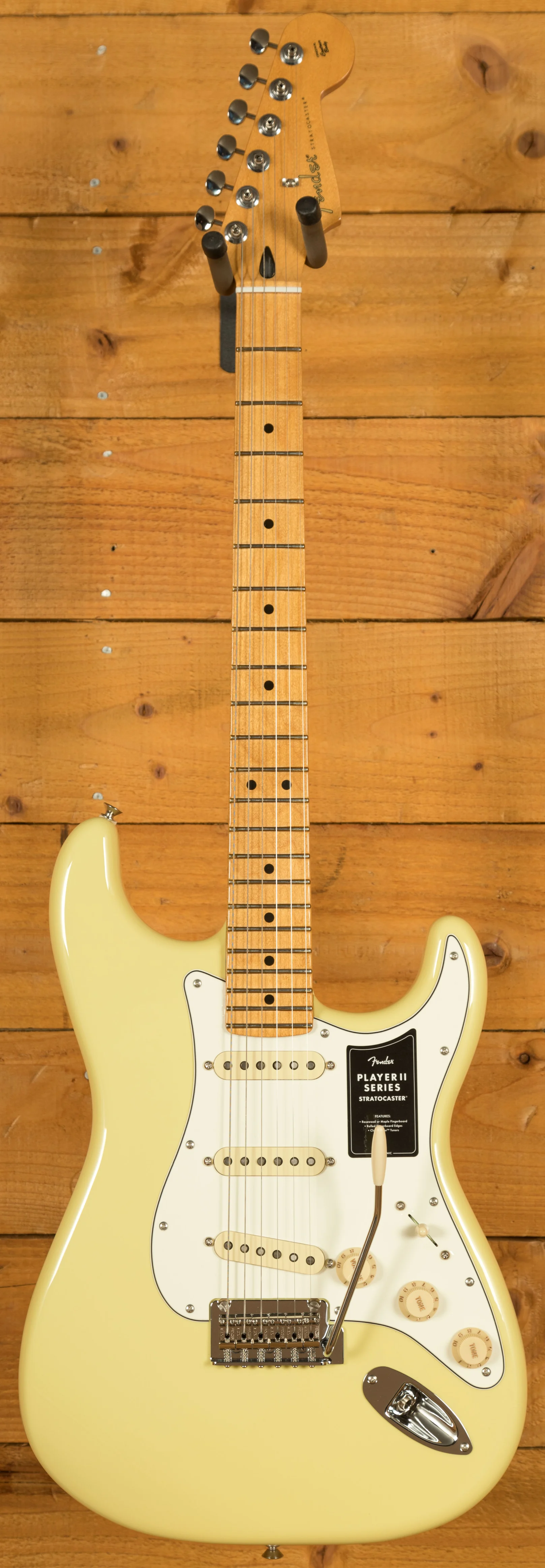 At its core, the Player II Stratocaster features a Modern "C" neck profile with a silky satin urethane finish, ensuring a smooth and comfortable playing experience. The 9.5" radius fingerboard with rolled edges promotes effortless string bending and fluid leads, offering a slightly worn-in feel right out of the box.