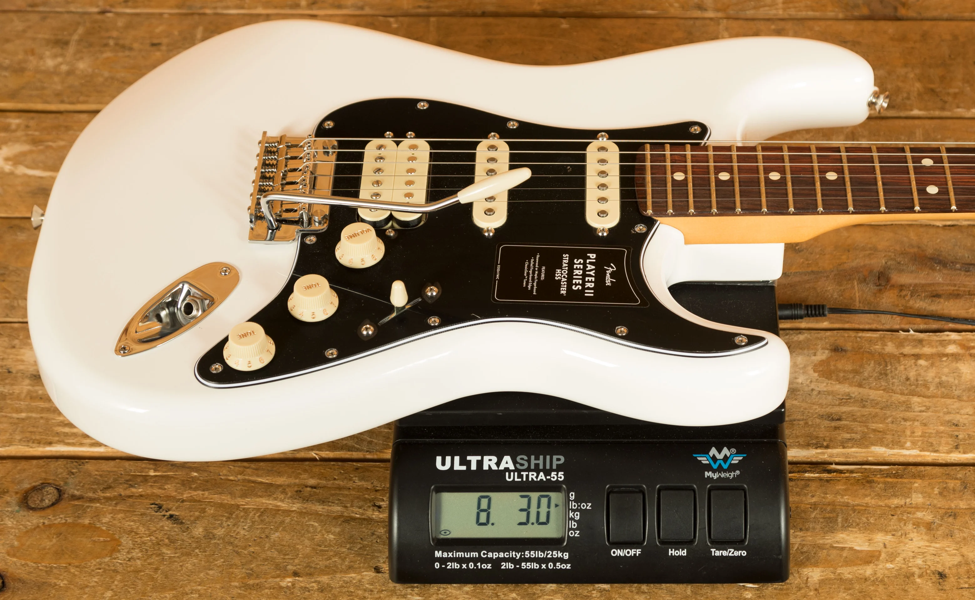 Discover the Player II Stratocaster HSS, a versatile electric guitar designed to embody the timeless Fender sound while catering to the demands of modern musicians. Whether you're performing on stage or honing your craft in the studio, this guitar is engineered to deliver exceptional playability and dynamic tone. With its contoured Alder body, it has a super punchy tone.