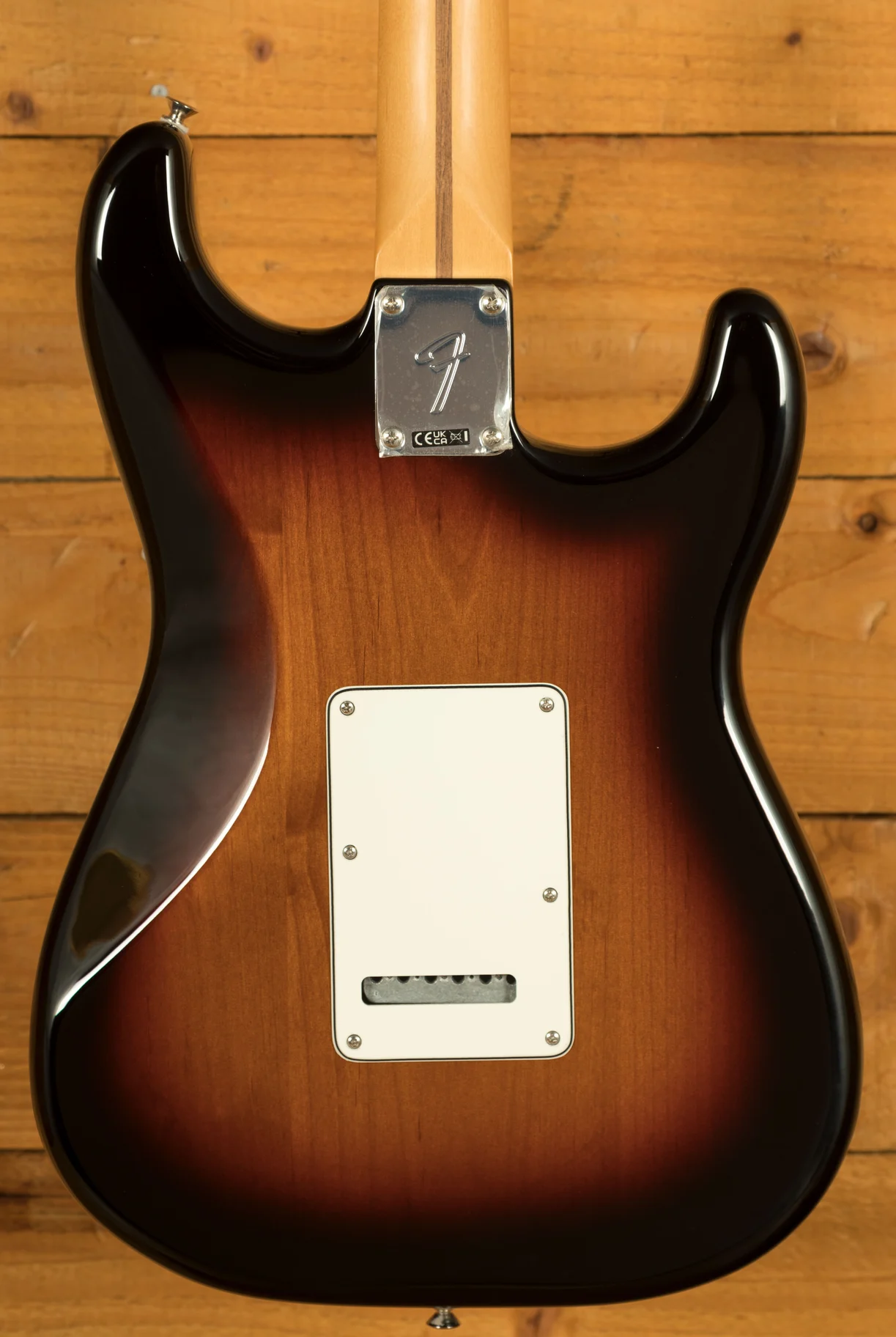 The Fender Player II Stratocaster Left-Handed in 3-Colour Sunburst blends iconic Fender style with thoughtful upgrades for today's players. Its alder body delivers balanced tone with crisp attack, while the gloss polyester finish highlights the classic sunburst aesthetic. The left-handed layout ensures natural feel and access for southpaw players without compromise.