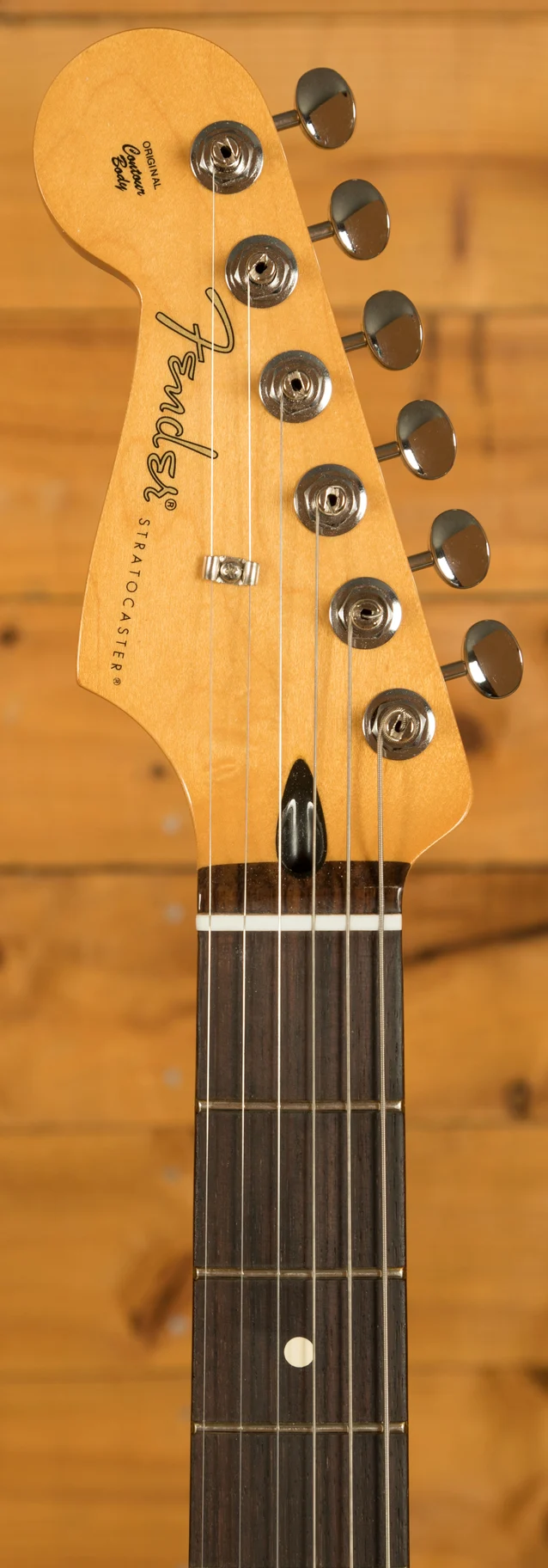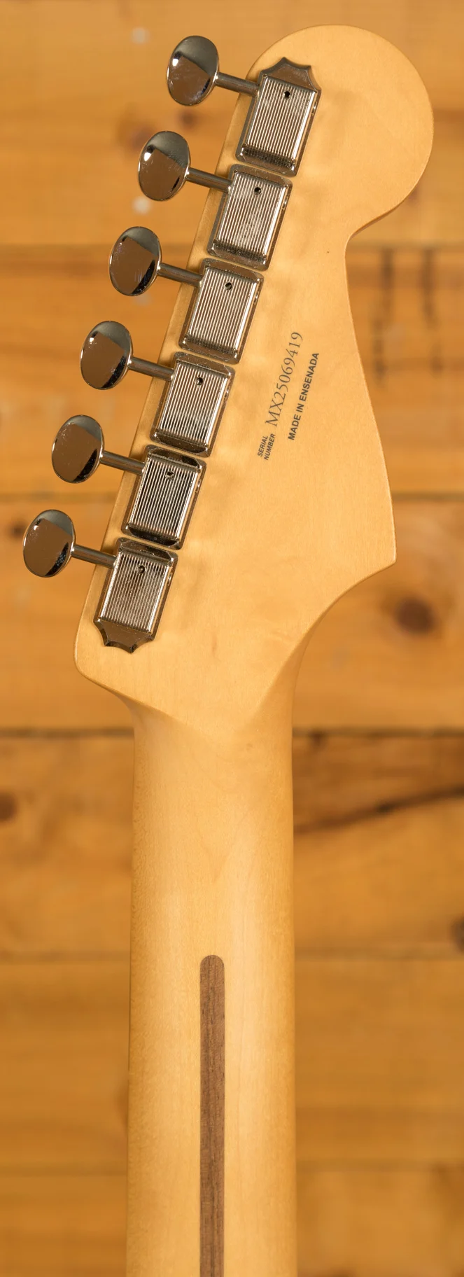 Loaded with Player Series Alnico V Strat single-coils, this Strat delivers sparkling highs, punchy mids and tight lows, perfect for everything from blues and funk to rock and country. The 5-way blade switch gives access to classic Strat tones, while the 2-point synchronised tremolo with bent steel saddles ensures expressive vibrato and tuning stability. Fender ClassicGear tuners combine vintage looks with modern 18:1 gear ratios for precise adjustments.