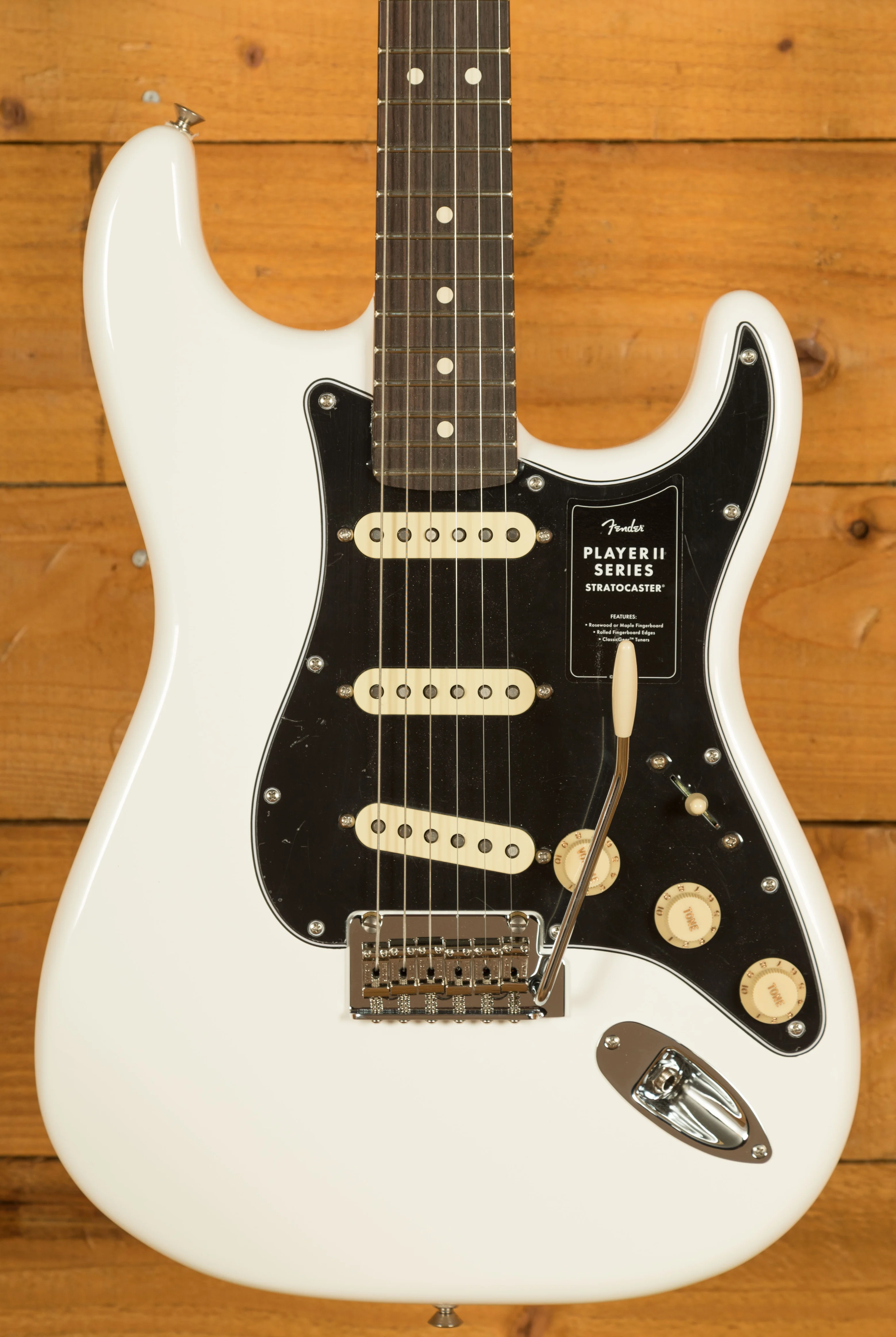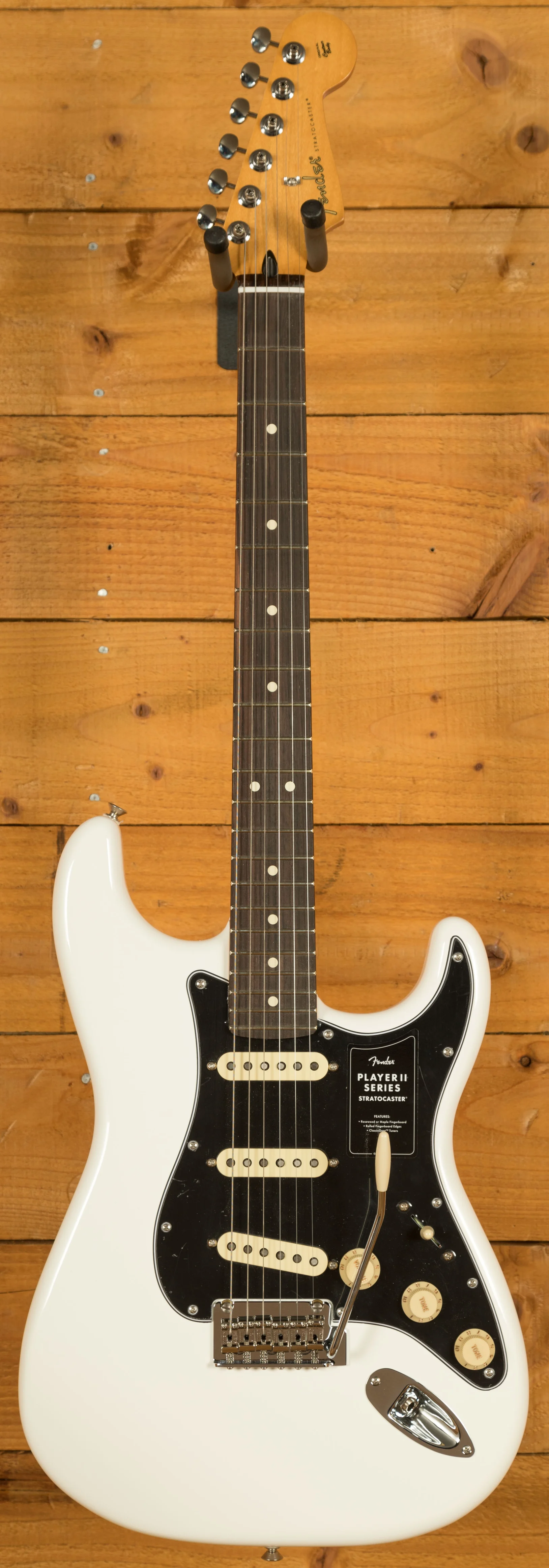 At its core, the Player II Stratocaster features a Modern "C" neck profile with a silky satin urethane finish, ensuring a smooth and comfortable playing experience. The 9.5" radius fingerboard with rolled edges promotes effortless string bending and fluid leads, offering a slightly worn-in feel right out of the box.