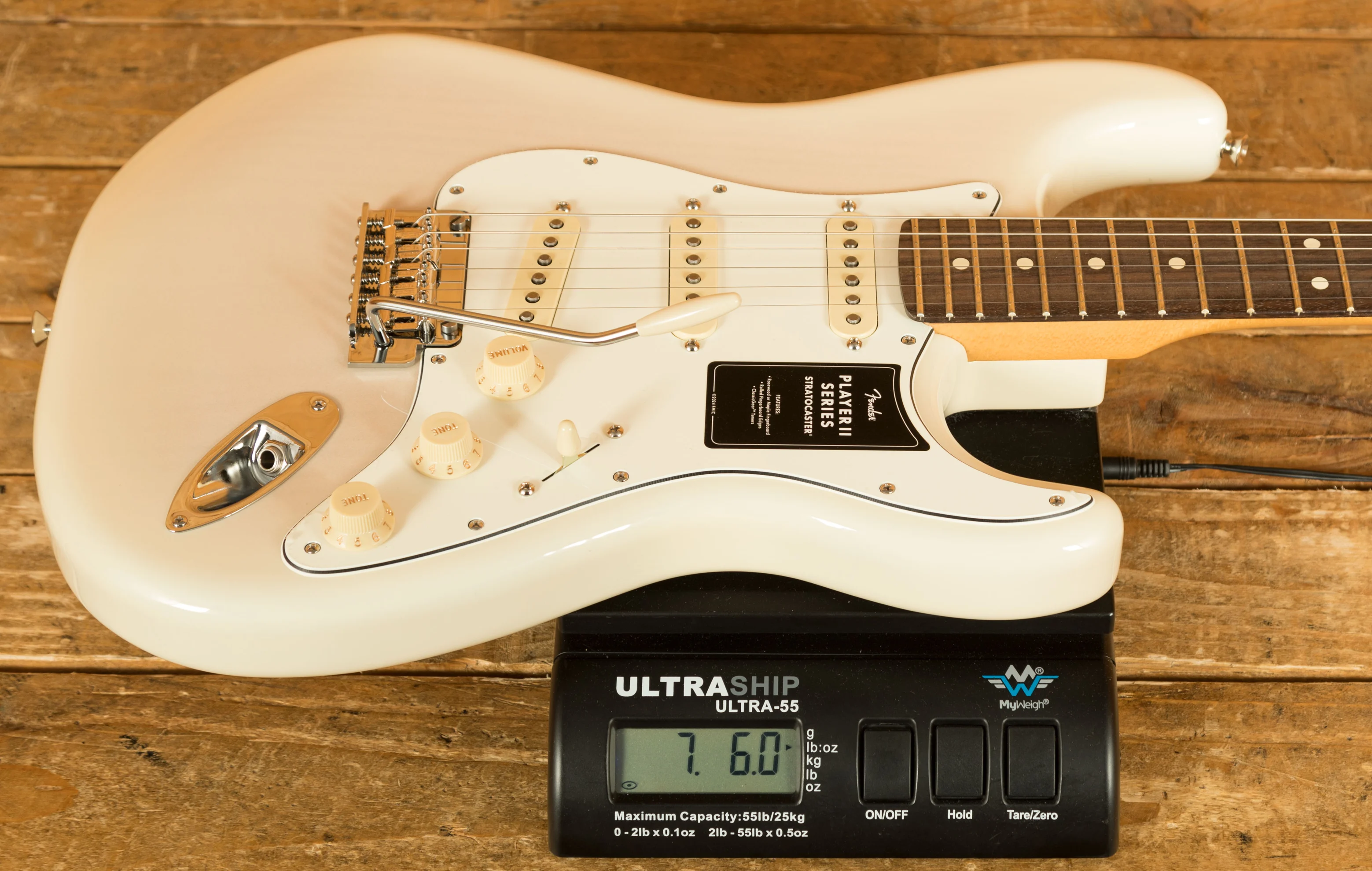At its core, the Player II Stratocaster features a Modern "C" neck profile with a silky satin urethane finish, ensuring a smooth and comfortable playing experience. The 9.5" radius fingerboard with rolled edges promotes effortless string bending and fluid leads, offering a slightly worn-in feel right out of the box.