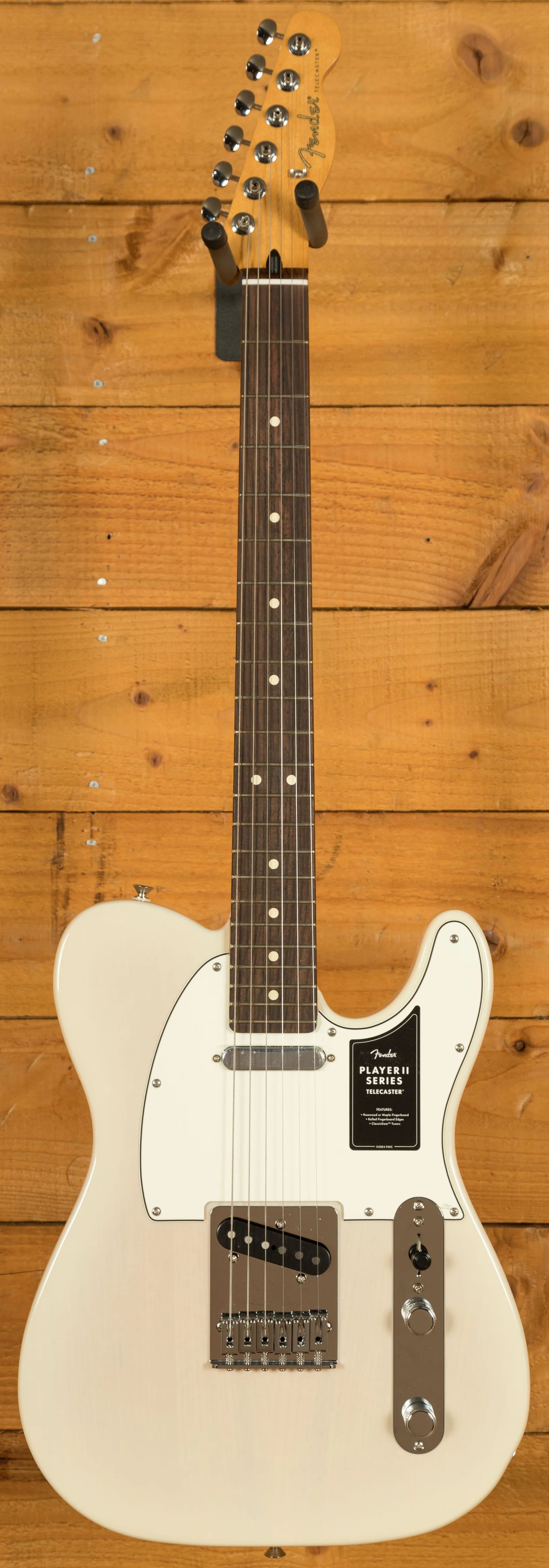 The Player II Telecaster's 6-saddle string-through-body bridge with block steel saddles ensures precise intonation and stability. This setup not only enhances the guitar's classic Tele tone but also provides the tuning reliability needed for any performance. Additionally, the ClassicGear tuning machines combine vintage aesthetics with a modern 18:1 gear ratio, offering smooth and accurate tuning adjustments.
