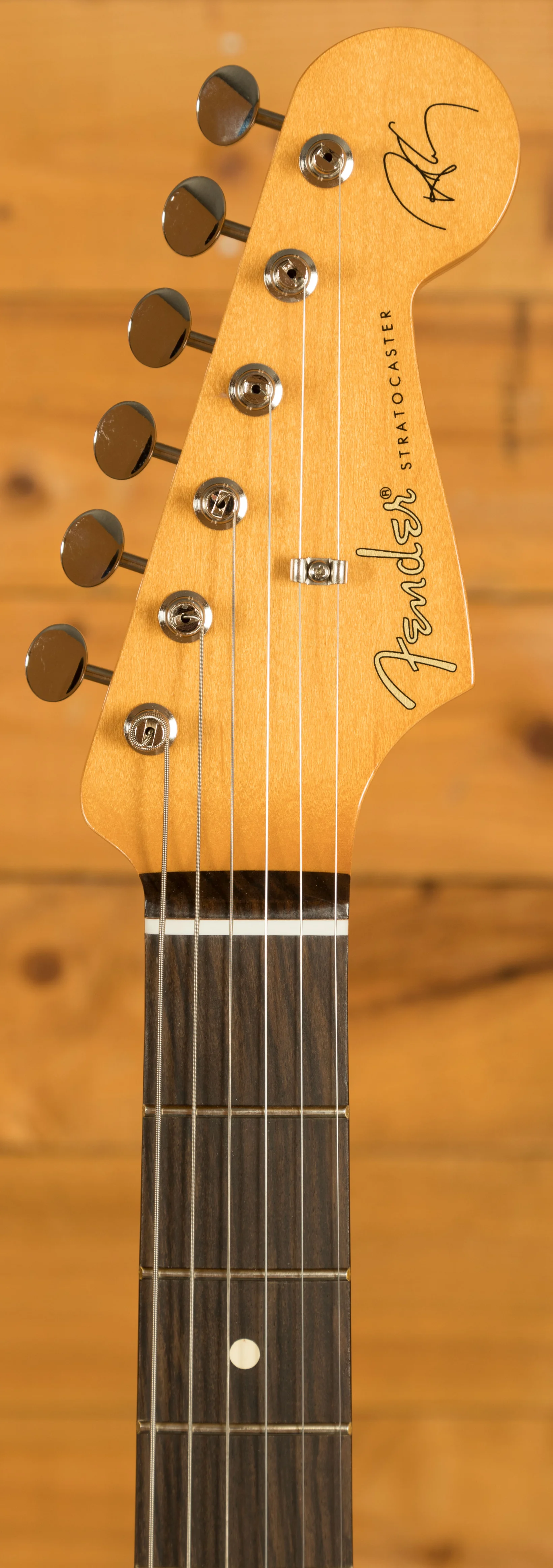 A unique feature of the Robert Cray Stratocaster is its American Vintage hard-tail Stratocaster bridge. Unlike traditional tremolo bridges, the hard-tail design offers enhanced tuning stability, improved intonation, and increased sustain, making it an ideal choice for players who prefer a more focused tonal response. It also allow Tele-style country bends and drop-D tunings without the other strings moving out of tune.